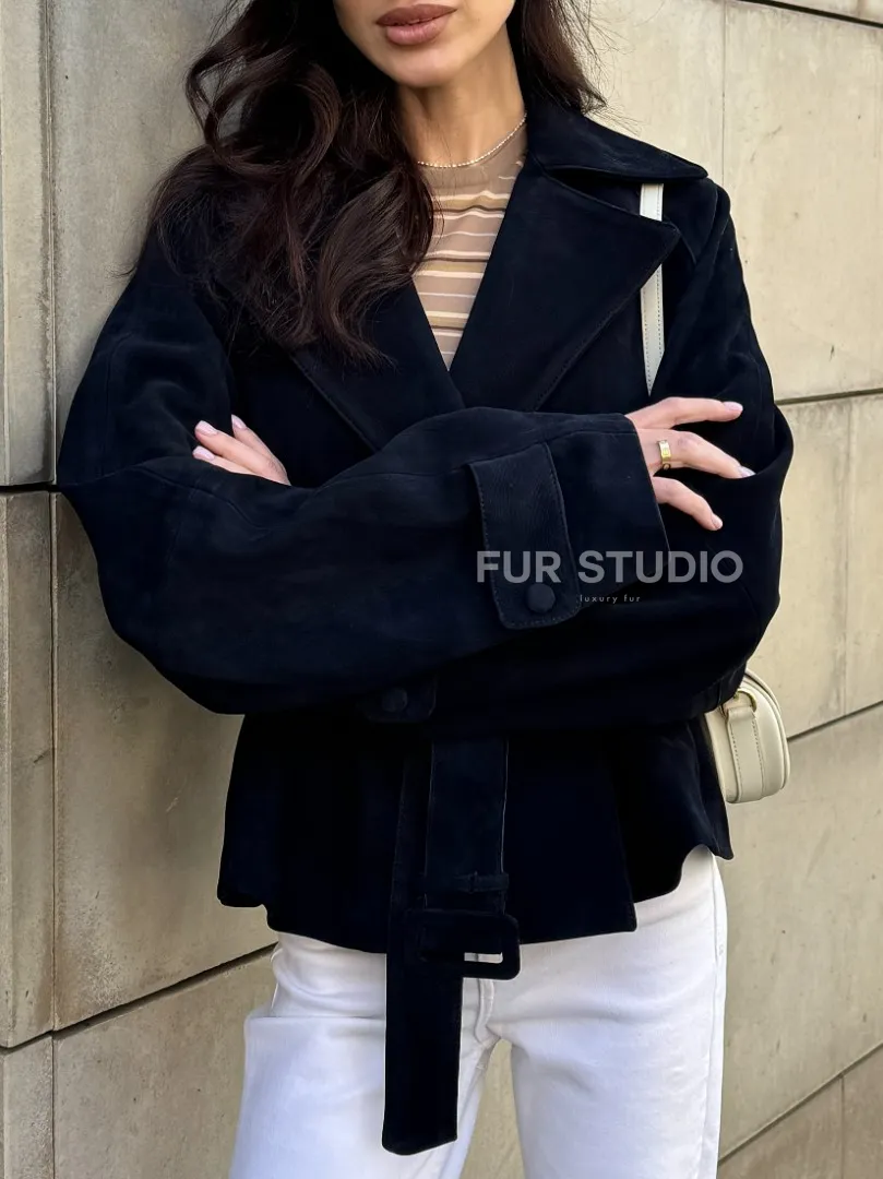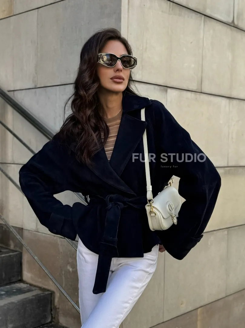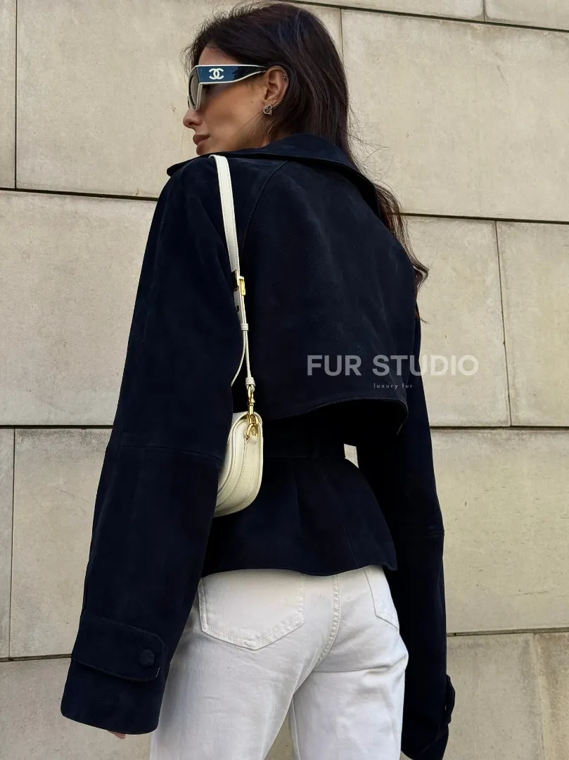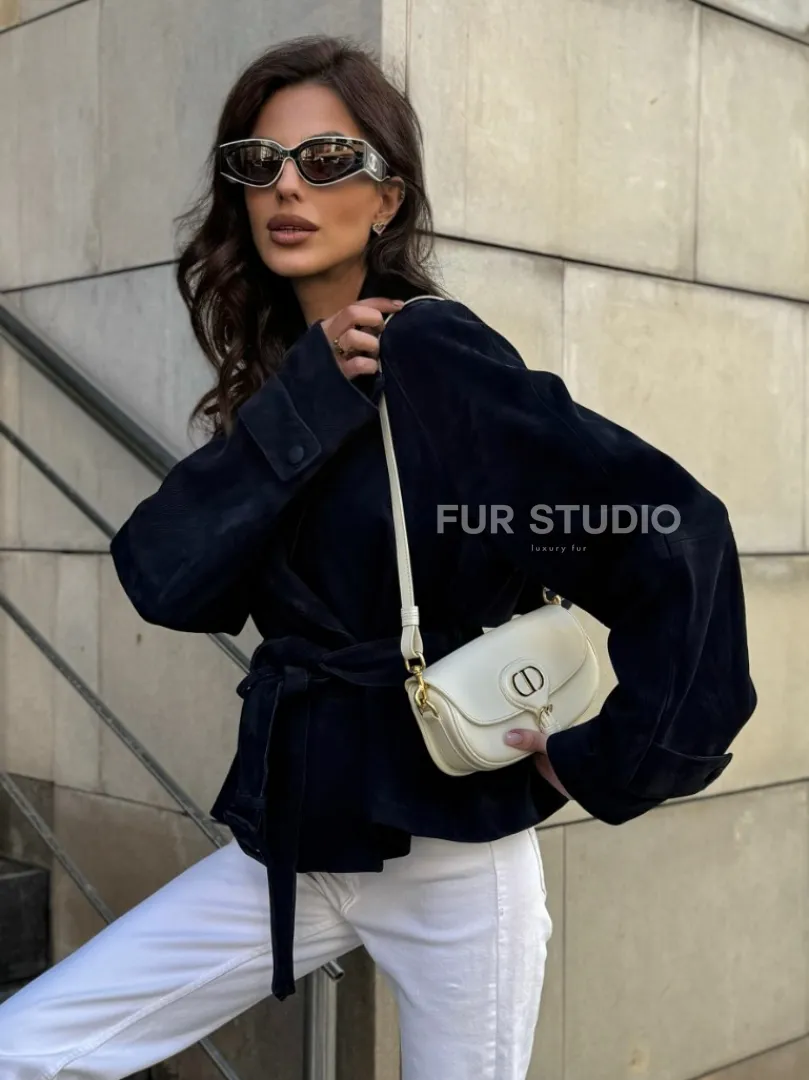 Модная куртка из замшевой кожи доступна для покупки в нашем шоуруме Furs Studio в Москве, где также предоставляется удобная доставка во все города России.