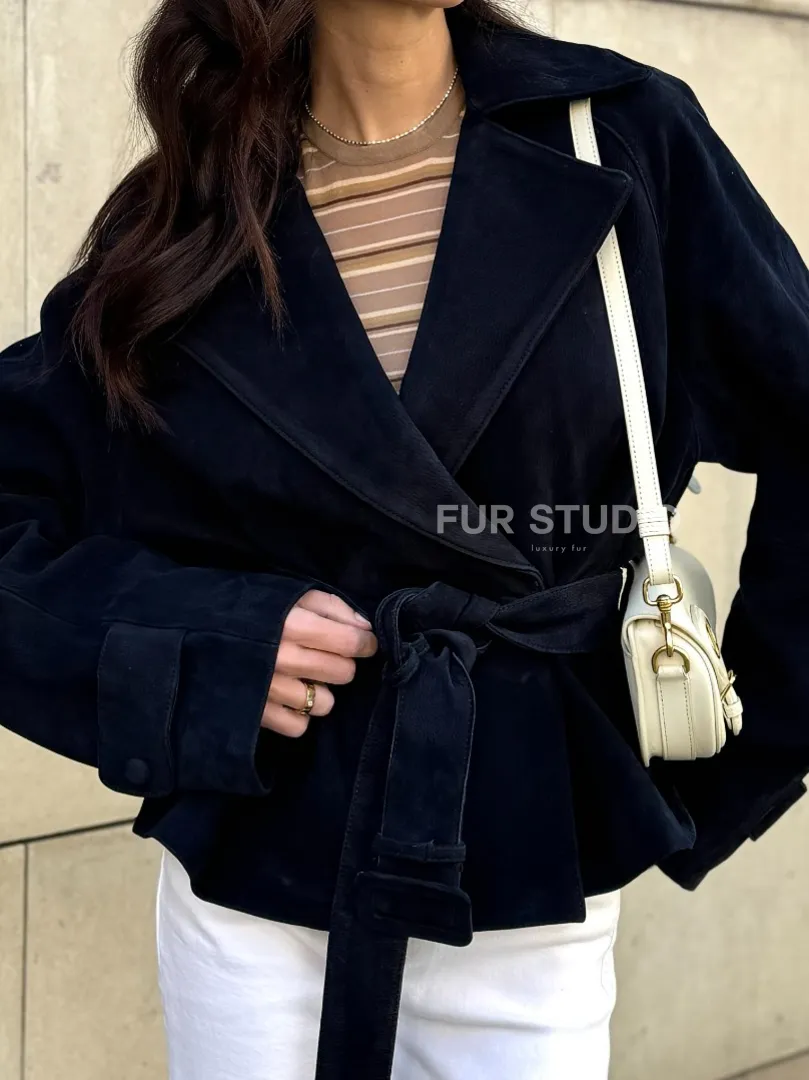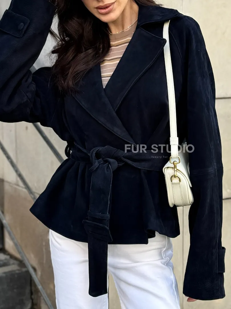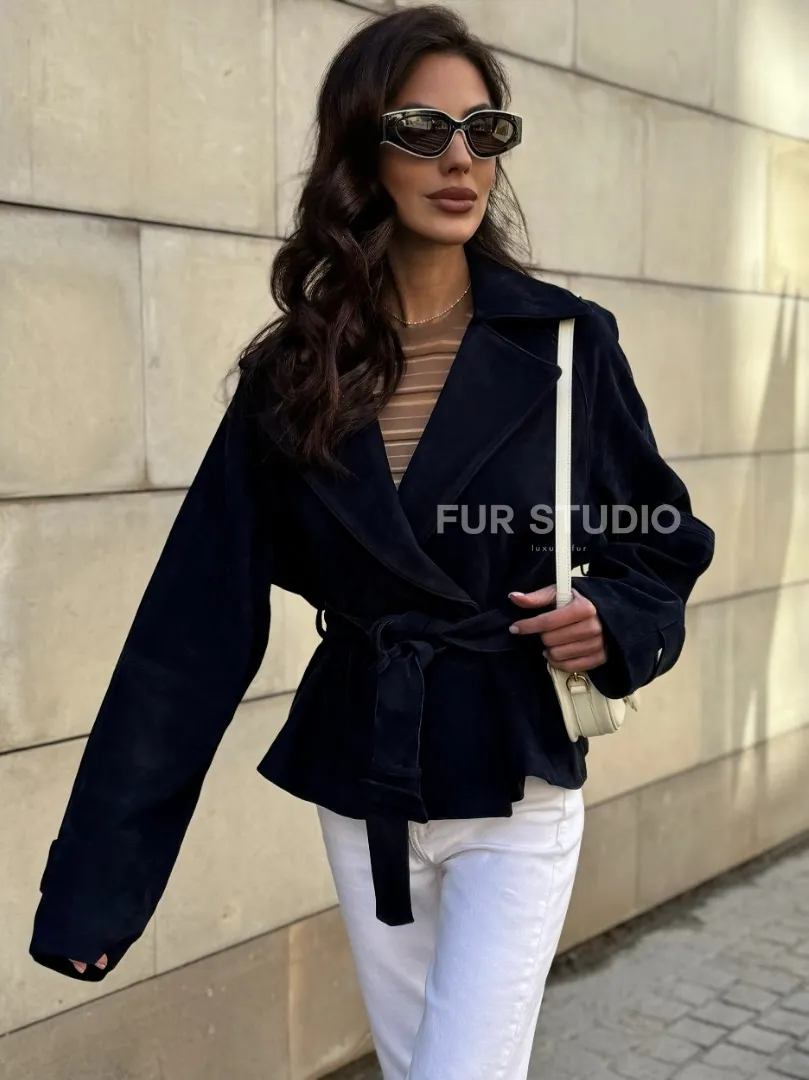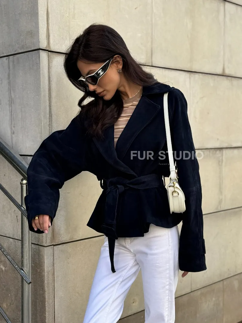 Модная куртка из замшевой кожи доступна для покупки в нашем шоуруме Furs Studio в Москве, где также предоставляется удобная доставка во все города России.