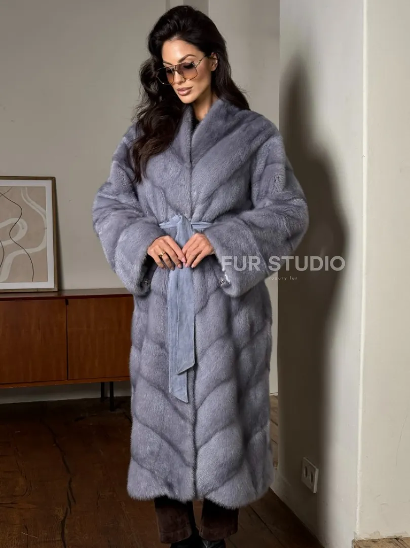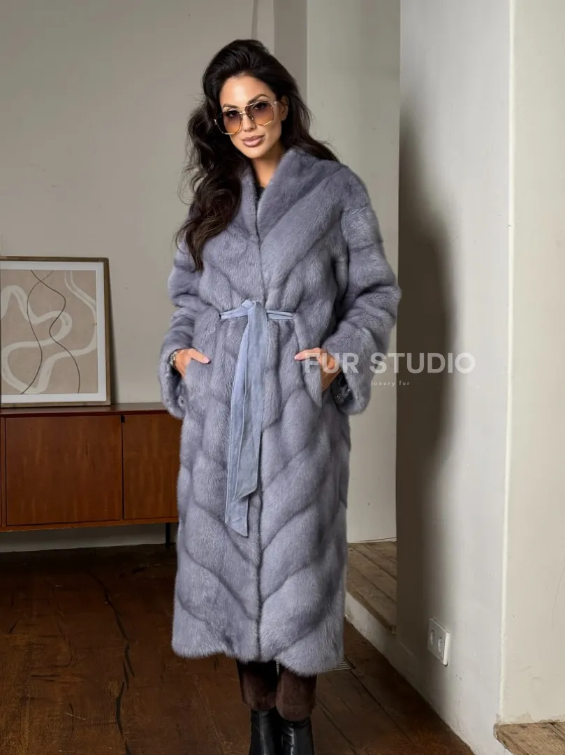 Модная женская шуба из меха норки с V-образным воротником доступна для покупки в нашем шоуруме Furs Studio в Москве. У нас так же есть доставка во все города России. Добавьте немного роскоши в свой гардероб с этой шубой, которая будет служить вам многие годы.