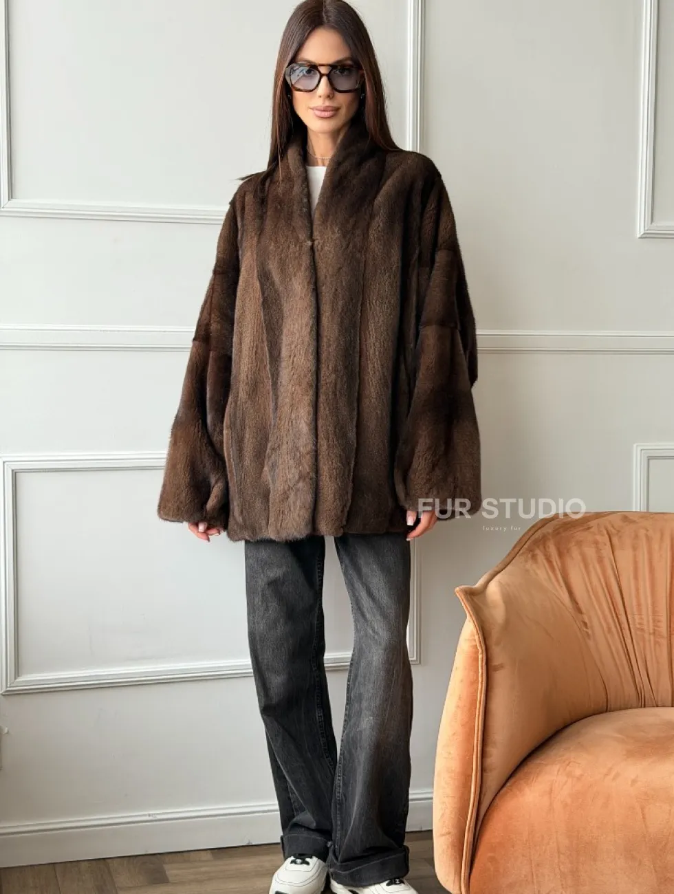 Мех данной шубы аукционная норка , цвет коричневый. Предлагается в размерах от 40 до 52 oversize. Длина модели 70-75 см, что выгодно подчеркивает фигуру девушек. Эта модель идеально подойдет для девушек и женщин, предпочитающих роскошные натуральные меха.