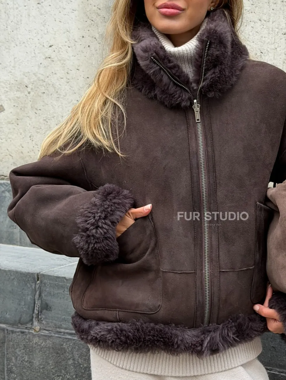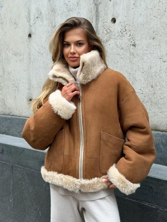 Натуральная двухсторонняя дубленка - бомбер доступна для покупки в нашем шоуруме Furs Studio в Москве, а также предлагается удобная доставка во все города России. Обогатите свой гардероб этой дубленкой, которая прослужит вам многие годы, добавив немного роскоши в ваш повседневный образ.
