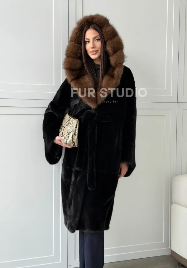 Норковая шуба фасон баллон с капюшоном куница доступна для покупки в нашем шоуруме Furs Studio в Москве. У нас так же есть доставка во все города России. Добавьте немного роскоши в свой гардероб с этой шубой, которая будет служить вам многие годы.