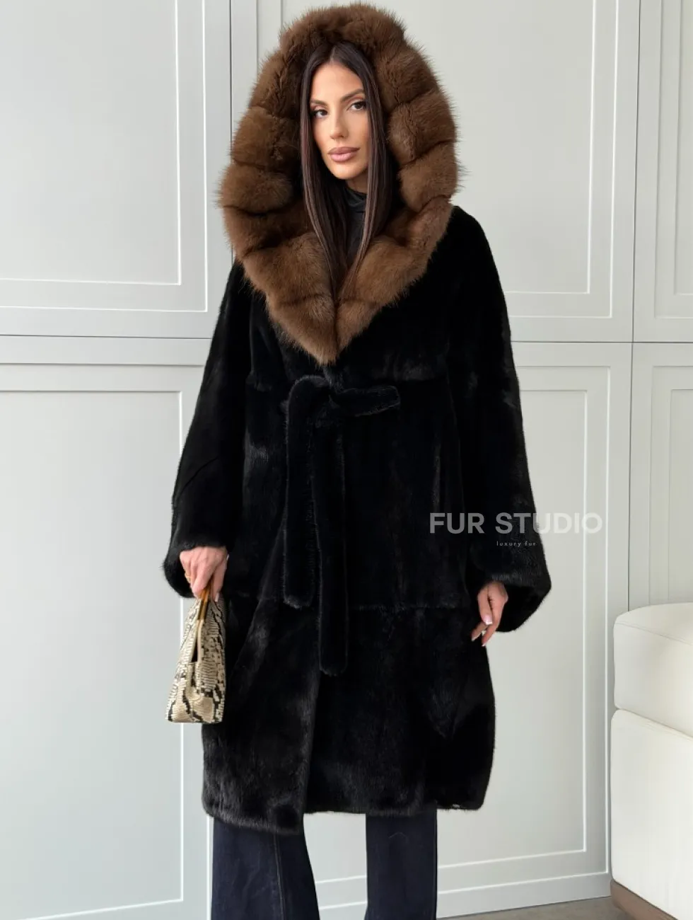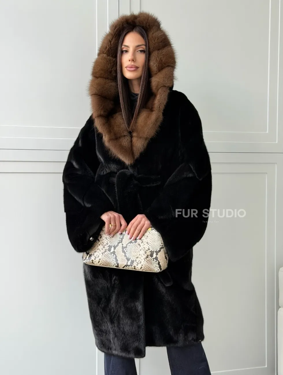 Норка BLACKGLAMA кимоно с капюшоном куница доступна для покупки в нашем шоуруме Furs Studio в Москве. У нас так же есть доставка во все города России. Добавьте немного роскоши в свой гардероб с этой шубой, которая будет служить вам многие годы.