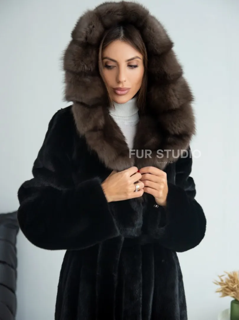 Норка BLACKGLAMA, пластины с капюшоном из меха куницы доступна для покупки в нашем шоуруме Furs Studio в Москве. У нас так же есть доставка во все города России. Добавьте немного роскоши в свой гардероб с этой шубой, которая будет служить вам многие годы.