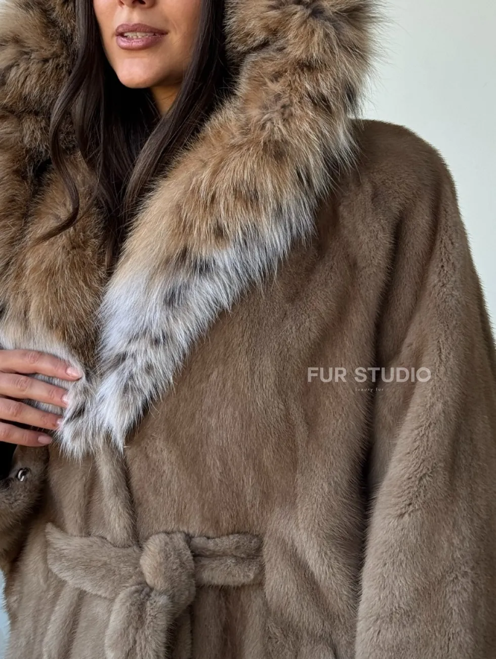 Норка - шуба летучая мышь с капюшоном рысь доступна для покупки в нашем шоуруме Furs Studio в Москве. У нас так же есть доставка во все города России. Добавьте немного роскоши в свой гардероб с этой шубой, которая будет служить вам многие годы.