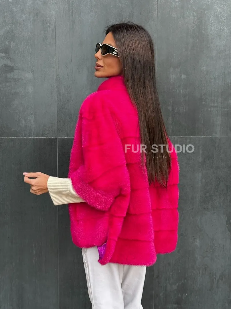 Мех данной шубы аукционная норка , цвет розовый. Предлагается в размерах от 40 до 48 (oversize). Длина модели 60-65 см, что выгодно подчеркивает фигуру девушек. Эта модель идеально подойдет для девушек и женщин, предпочитающих роскошные натуральные меха.