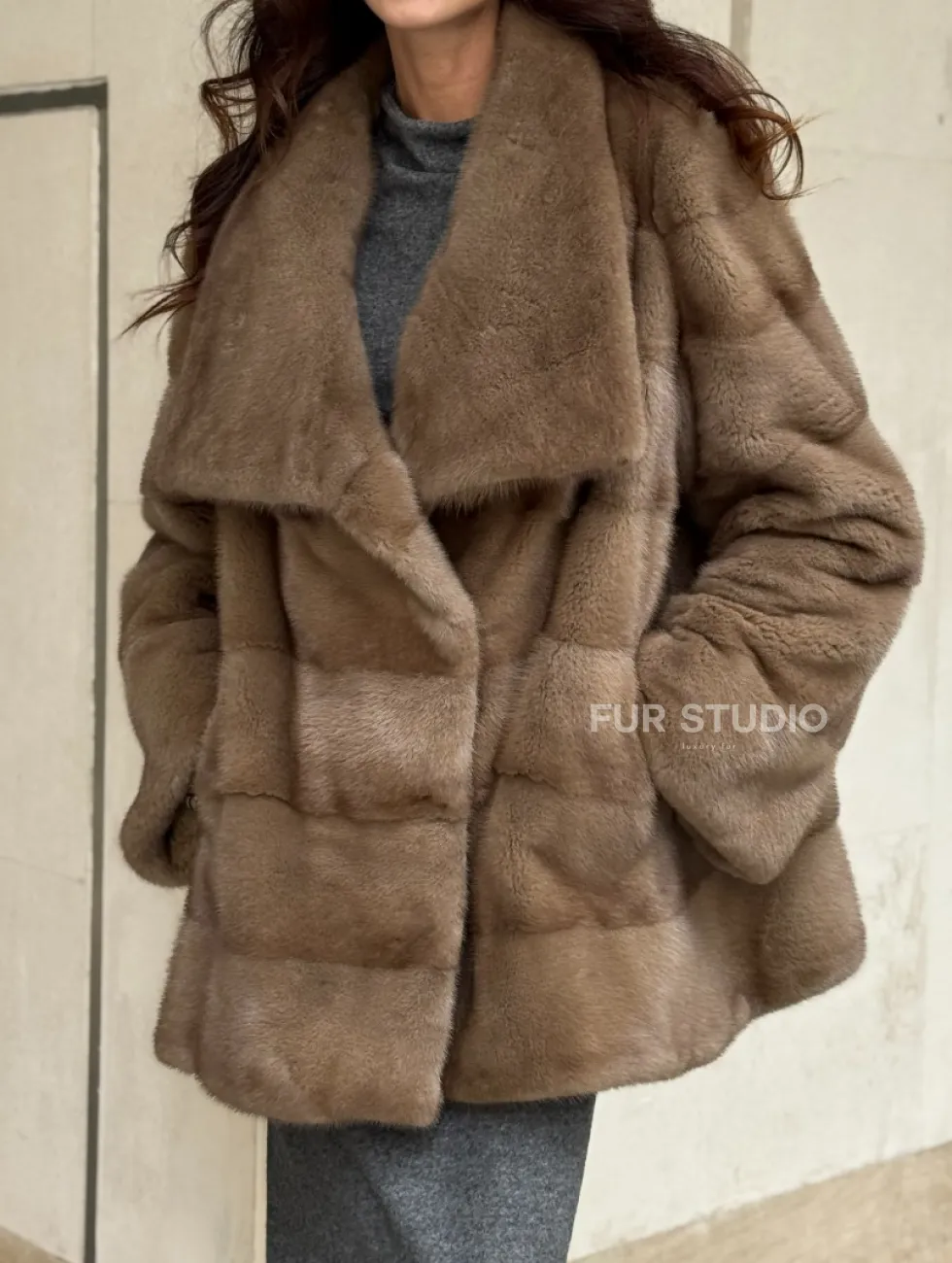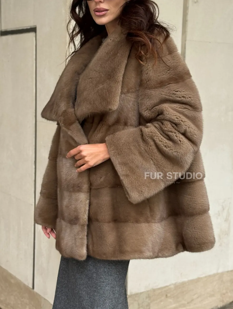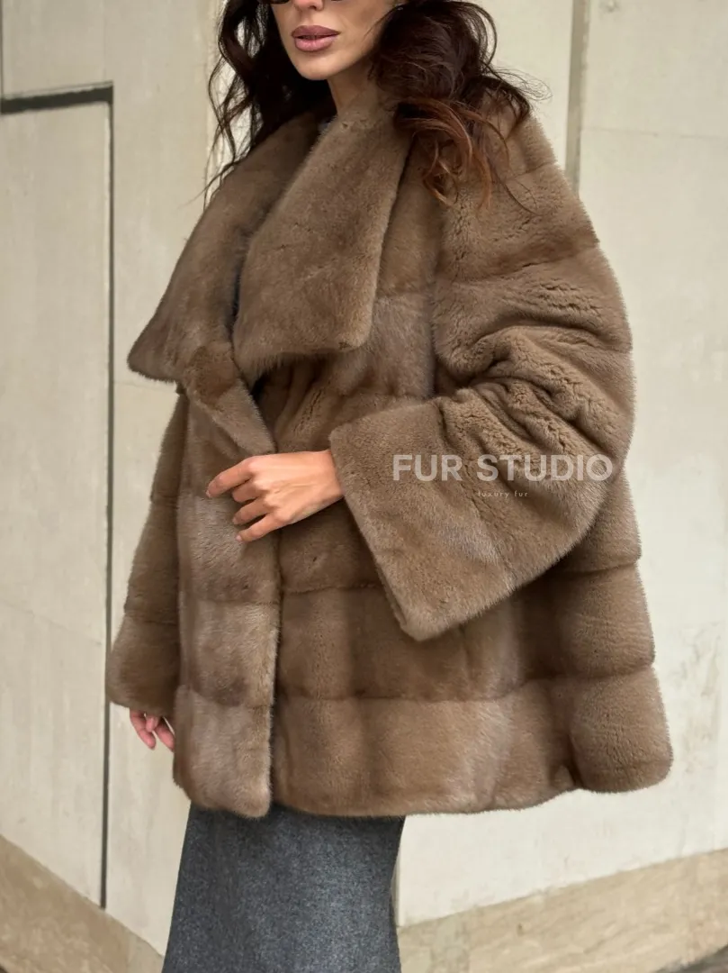 Мех данной шубы аукционная норка , цвет бежевый. Предлагается в размерах от 42 до 46. Длина модели 65-70 см, что выгодно подчеркивает фигуру девушек. Эта модель идеально подойдет для девушек и женщин, предпочитающих роскошные натуральные меха.