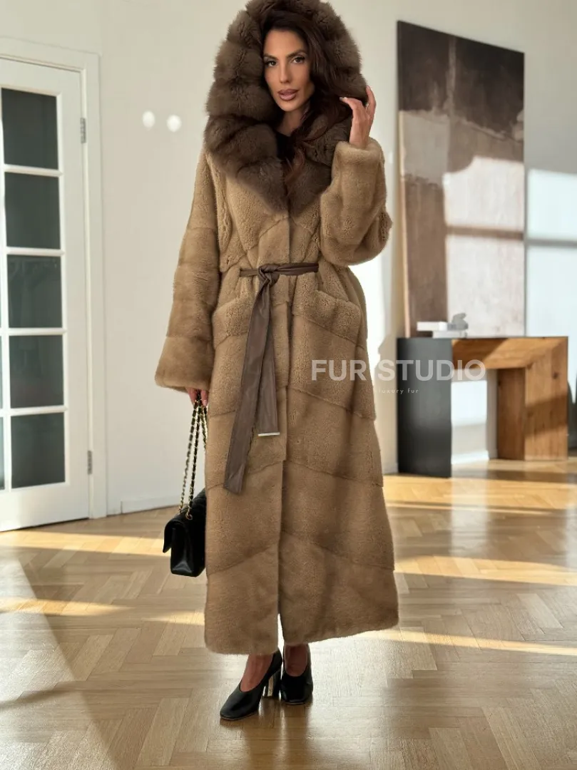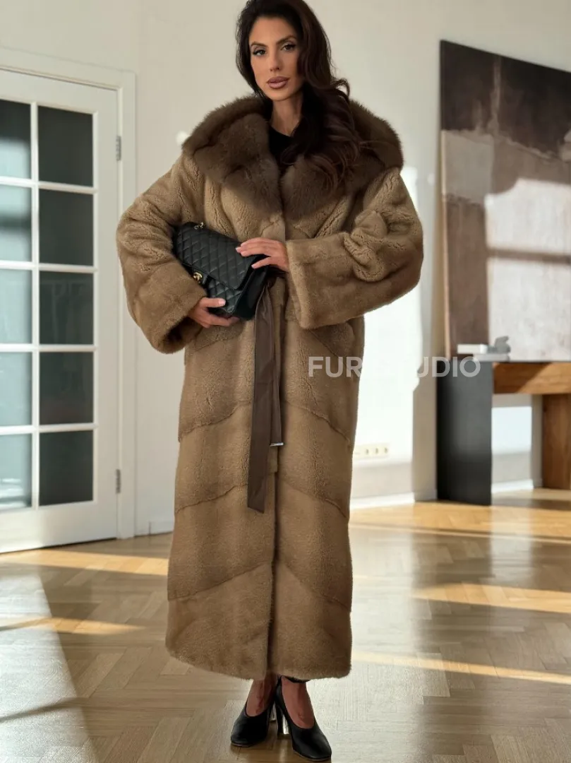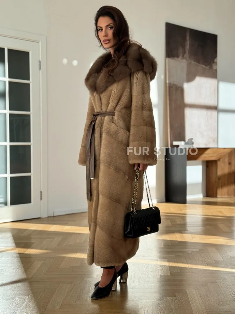 Норковая шуба бежевого цвета - капюшон куница доступна для покупки в нашем шоуруме Furs Studio в Москве. У нас так же есть доставка во все города России. Добавьте немного роскоши в свой гардероб с этой шубой, которая будет служить вам многие годы.