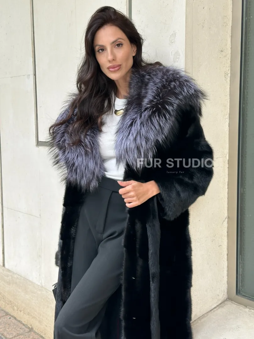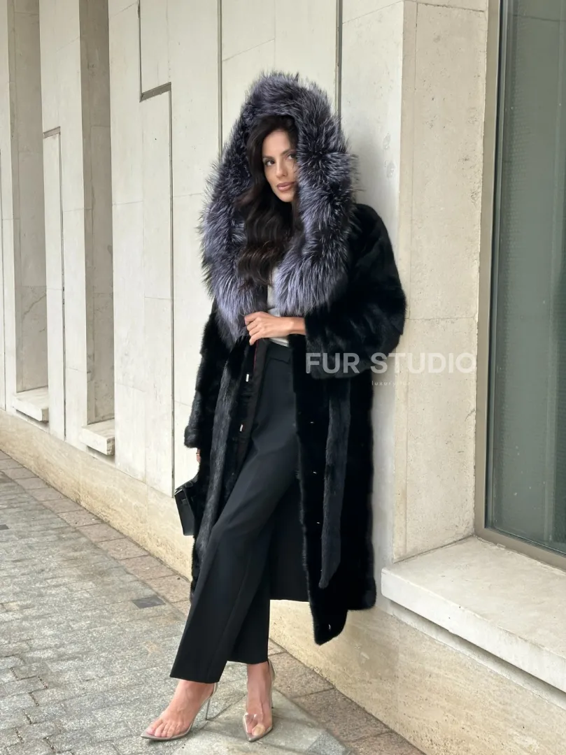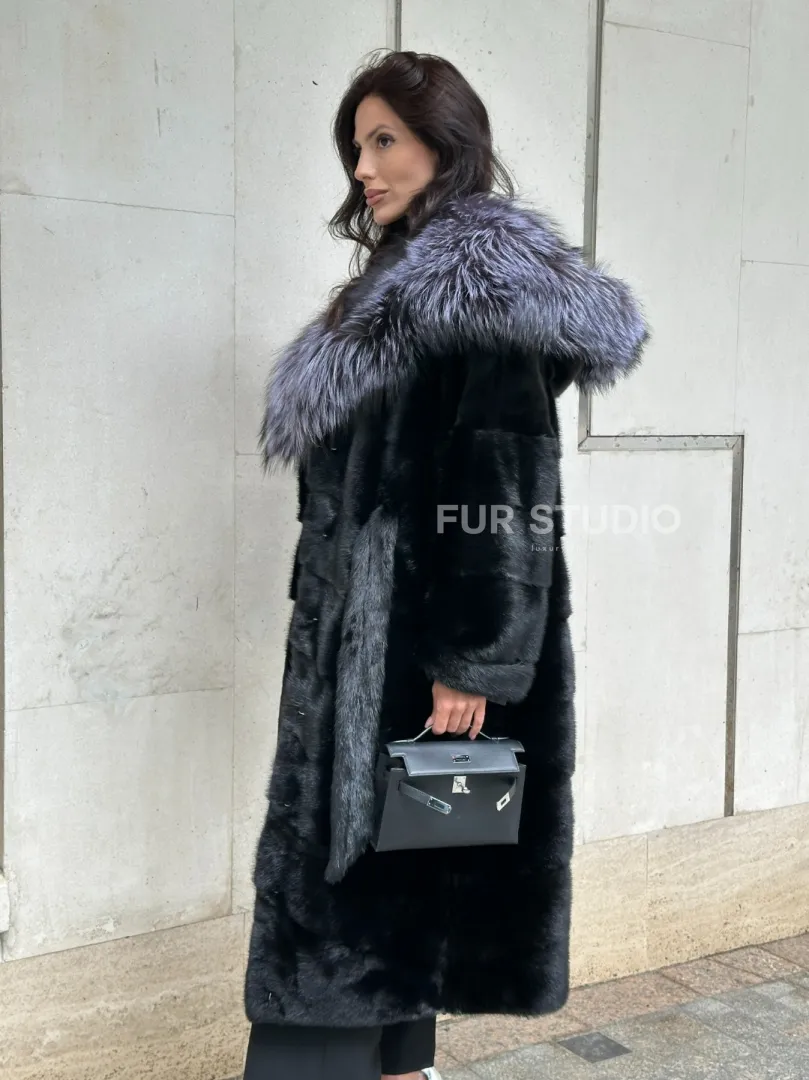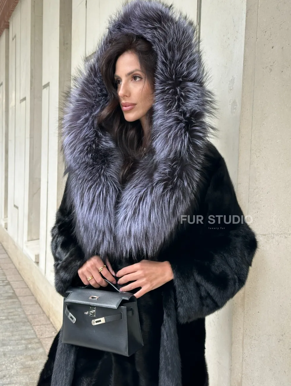 Норковая шуба черного цвета с капюшоном из чернобурки доступна для покупки в нашем шоуруме Furs Studio в Москве. У нас так же есть доставка во все города России. Добавьте немного роскоши в свой гардероб с этой шубой, которая будет служить вам многие годы.