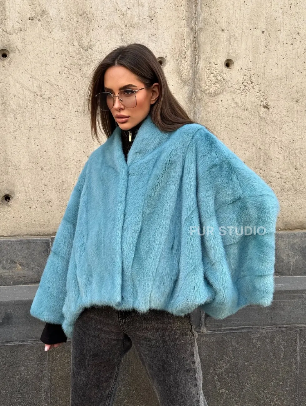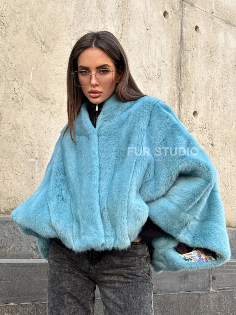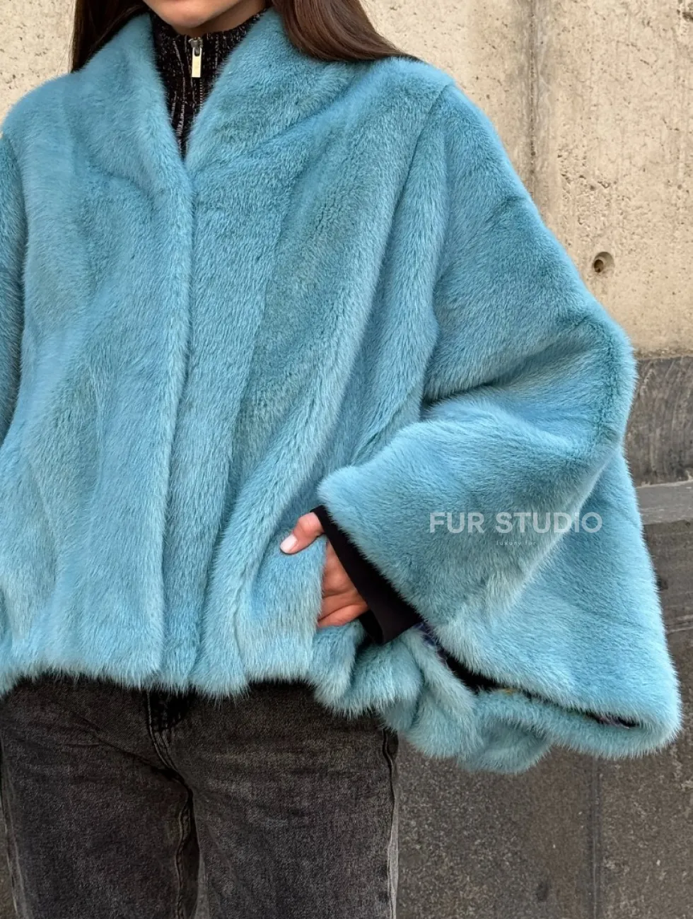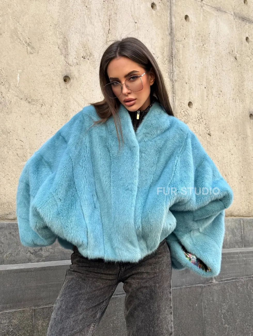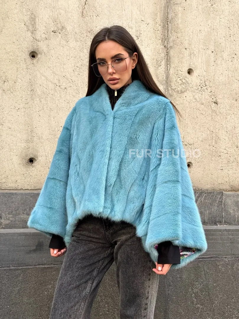 Норковая шуба летучка с V-образным воротником, цвет - тиффани доступна для покупки в нашем шоуруме Furs Studio в Москве. У нас так же есть доставка во все города России. Добавьте немного роскоши в свой гардероб с этой шубой, которая будет служить вам многие годы.