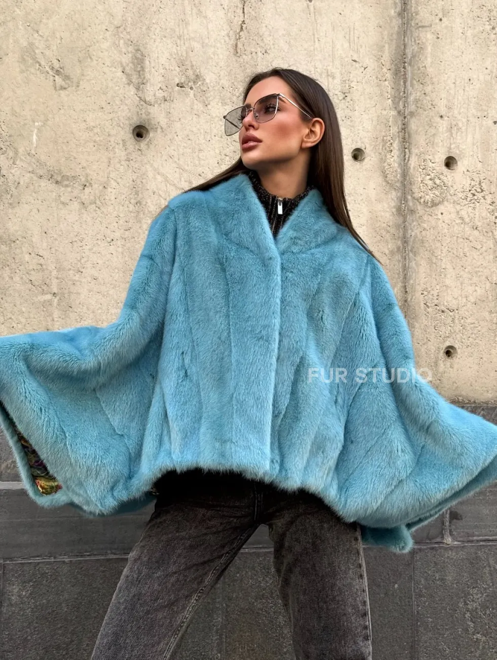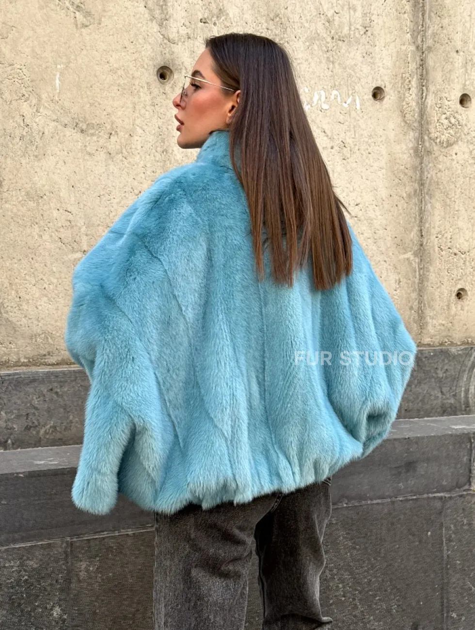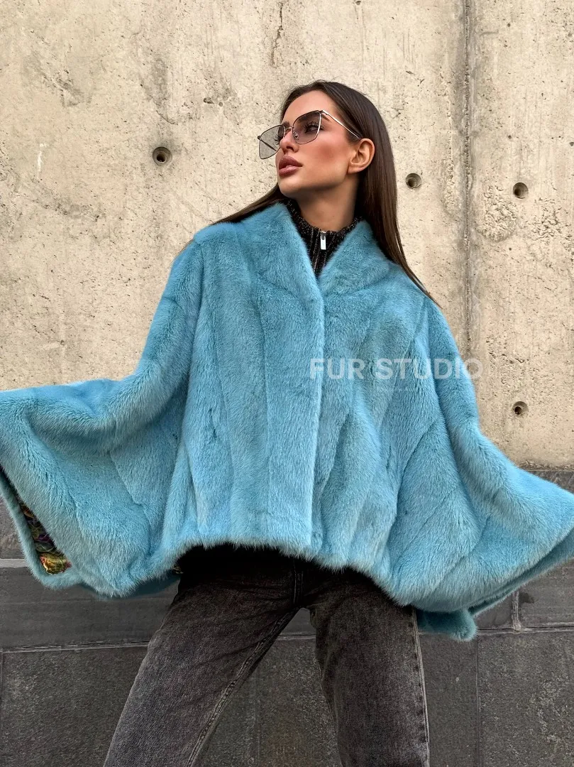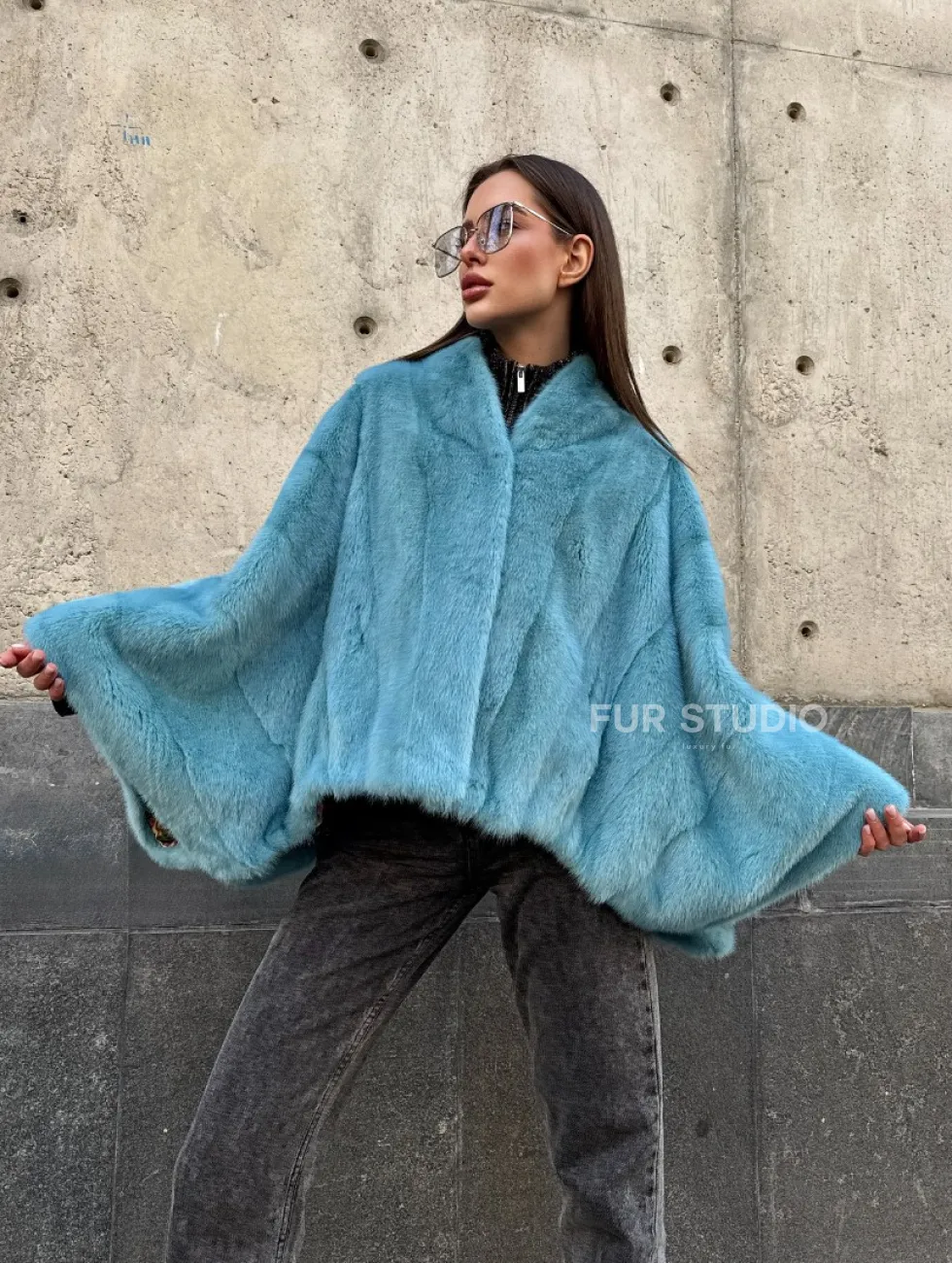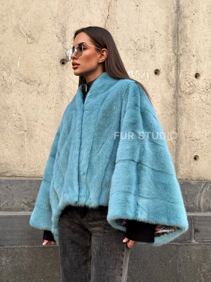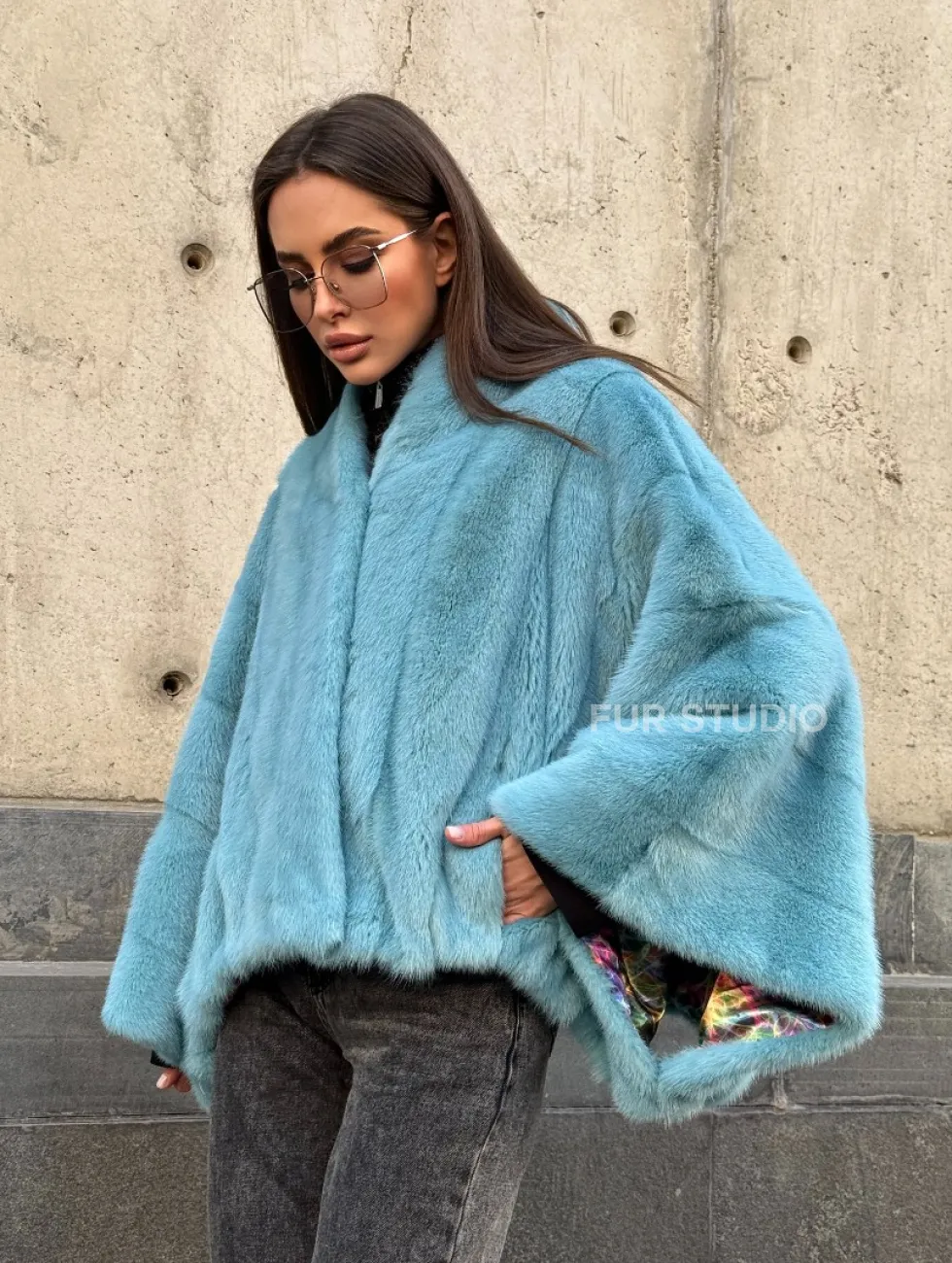Норковая шуба летучка с V-образным воротником, цвет - тиффани доступна для покупки в нашем шоуруме Furs Studio в Москве. У нас так же есть доставка во все города России. Добавьте немного роскоши в свой гардероб с этой шубой, которая будет служить вам многие годы.