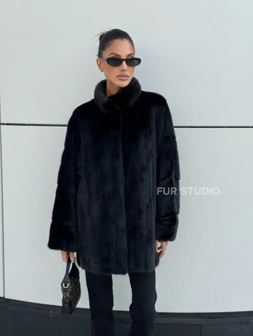 Норковая шуба полупальто из меха норки стойка воротник доступна для покупки в нашем шоуруме Furs Studio в Москве. У нас так же есть доставка во все города России. Добавьте немного роскоши в свой гардероб с этой шубой, которая будет служить вам многие годы.