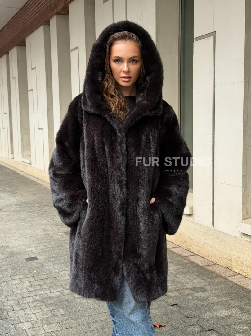Норковая шуба с капюшоном доступна для покупки в нашем шоуруме Furs Studio в Москве. У нас так же есть доставка во все города России. Добавьте немного роскоши в свой гардероб с этой шубой, которая будет служить вам многие годы.