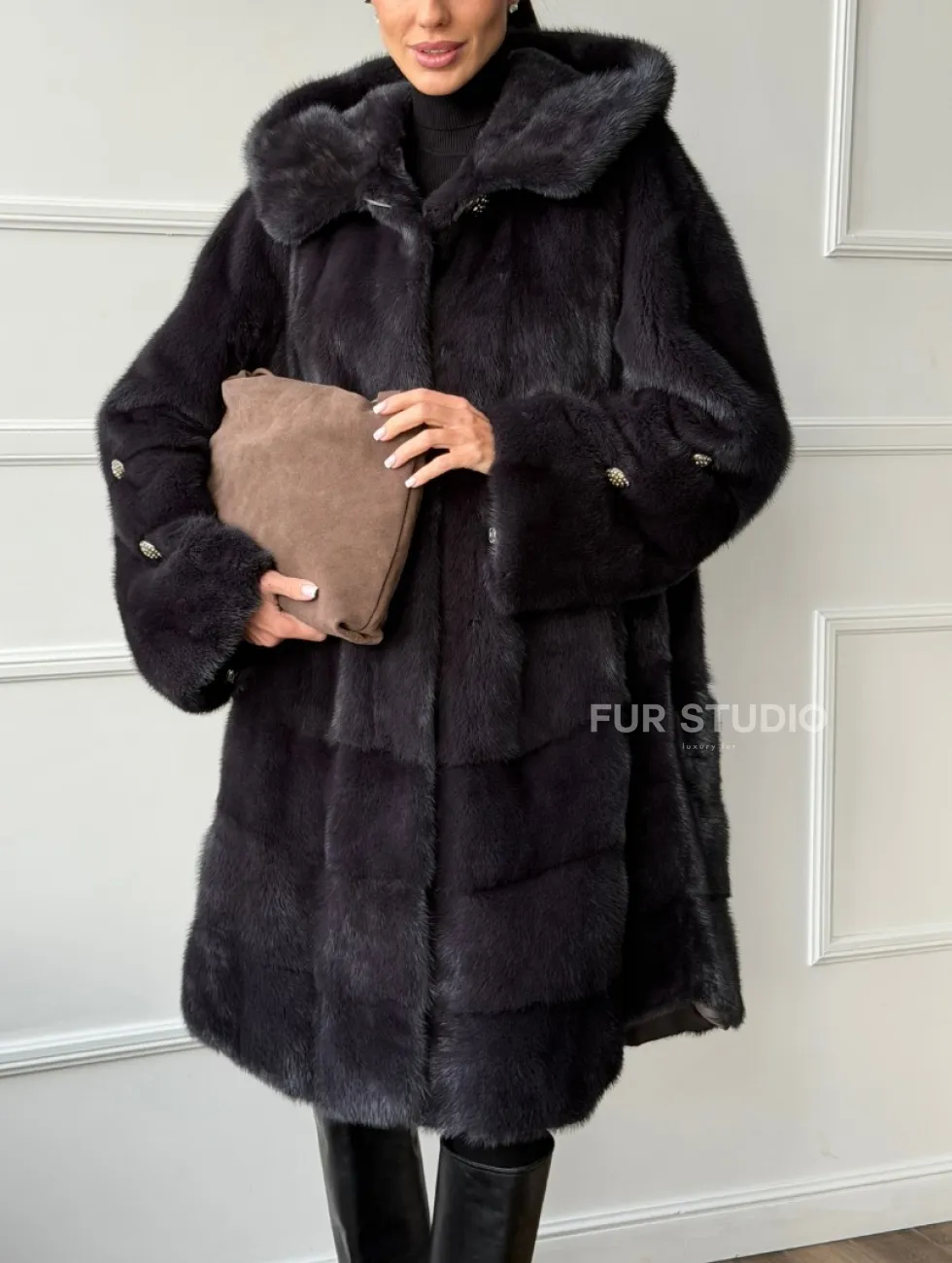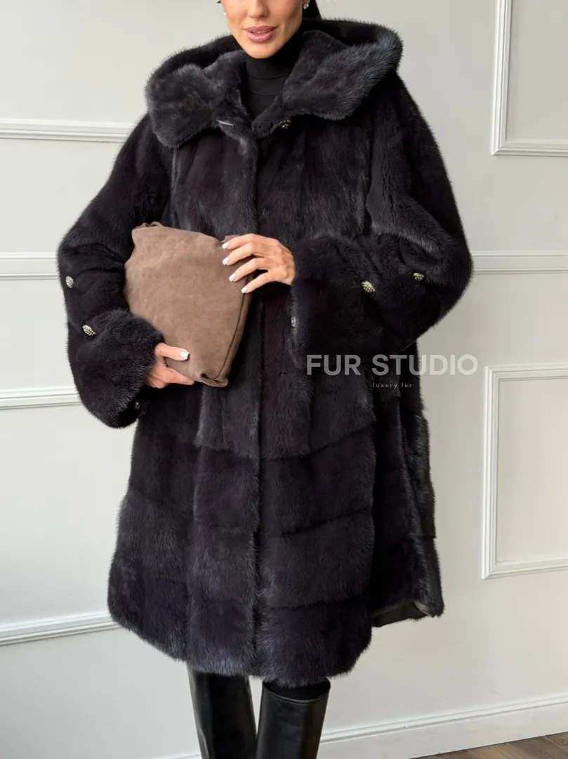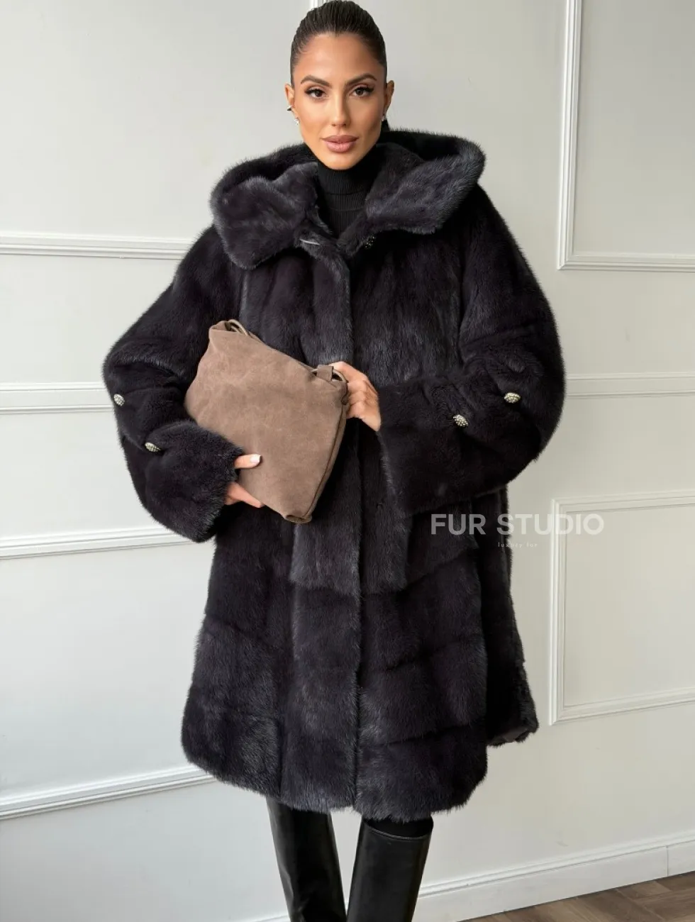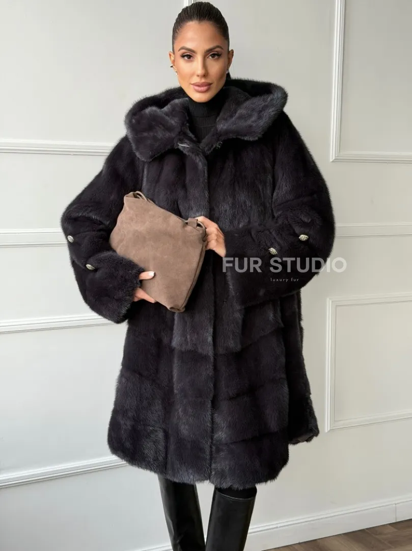 Норковая шуба с капюшоном - графит доступна для покупки в нашем шоуруме Furs Studio в Москве. У нас так же есть доставка во все города России. Добавьте немного роскоши в свой гардероб с этой шубой, которая будет служить вам многие годы.