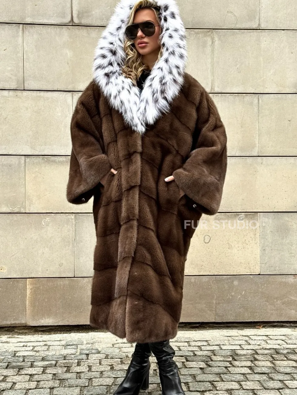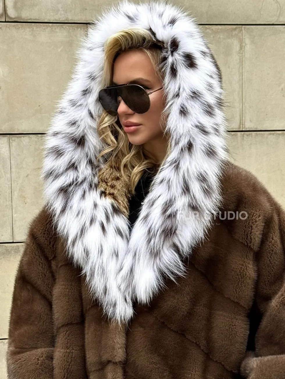 Норковая шуба с капюшоном из лисы под рысь - стиль "Бохо" доступна для покупки в нашем шоуруме Furs Studio в Москве. У нас так же есть доставка во все города России. Добавьте немного роскоши в свой гардероб с этой шубой, которая будет служить вам многие годы.