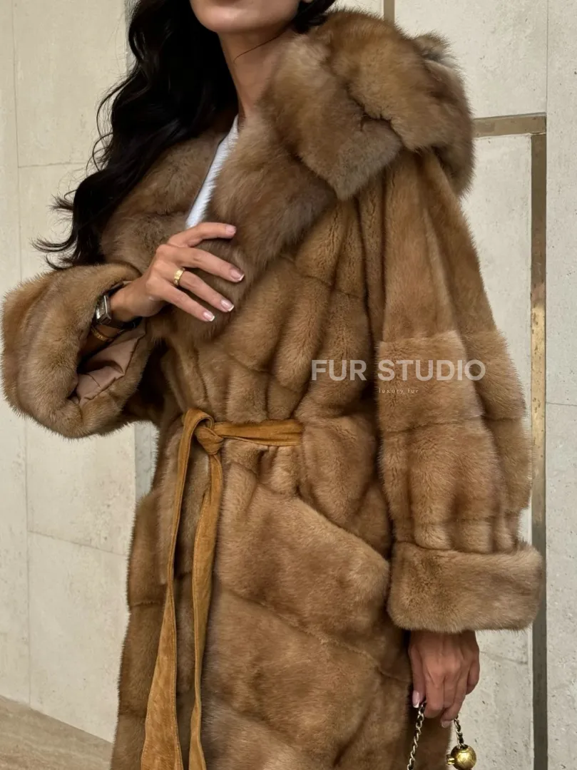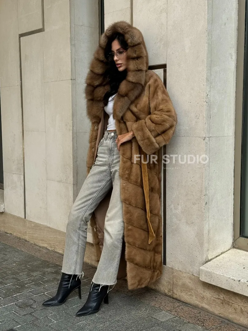 Норковая шуба с капюшоном из меха куницы - цвет карамель доступна для покупки в нашем шоуруме Furs Studio в Москве. У нас так же есть доставка во все города России. Добавьте немного роскоши в свой гардероб с этой шубой, которая будет служить вам многие годы.