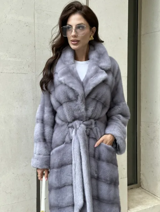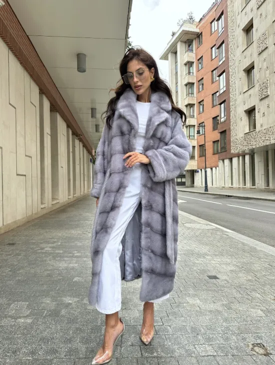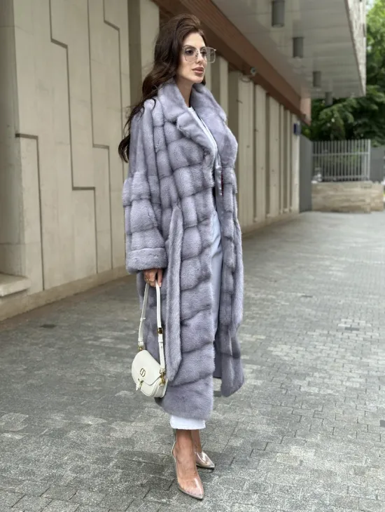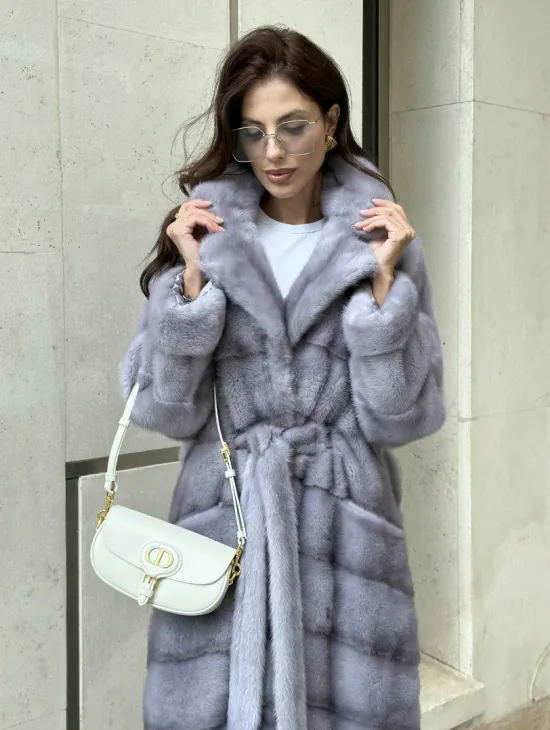 Мех данной шубы аукционная норка, цвет голубой. Предлагается в размерах от 42 до 48. Длина модели 70-75 см, что выгодно подчеркивает фигуру девушек. Эта модель идеально подойдет для девушек и женщин, предпочитающих роскошные натуральные меха.