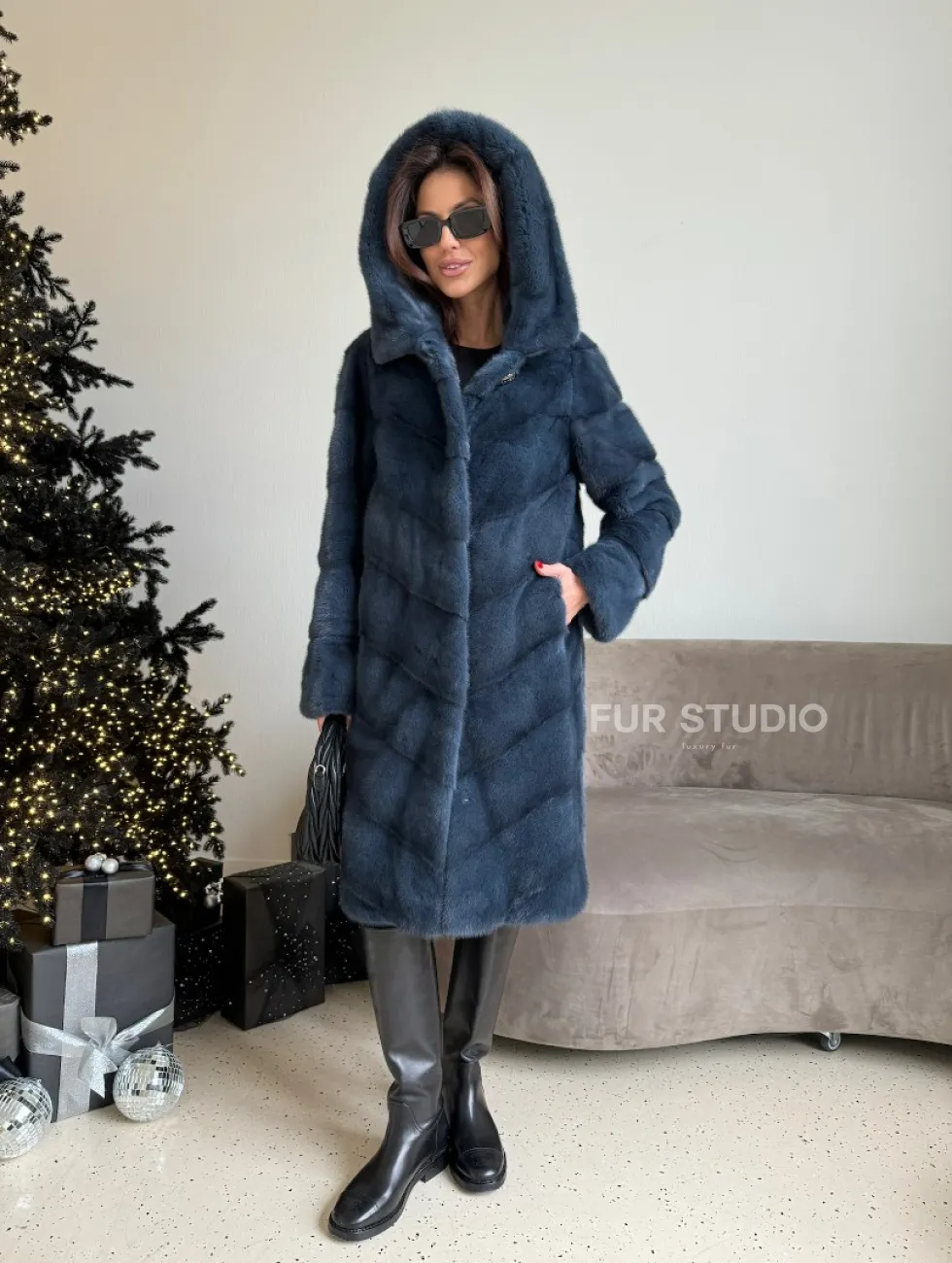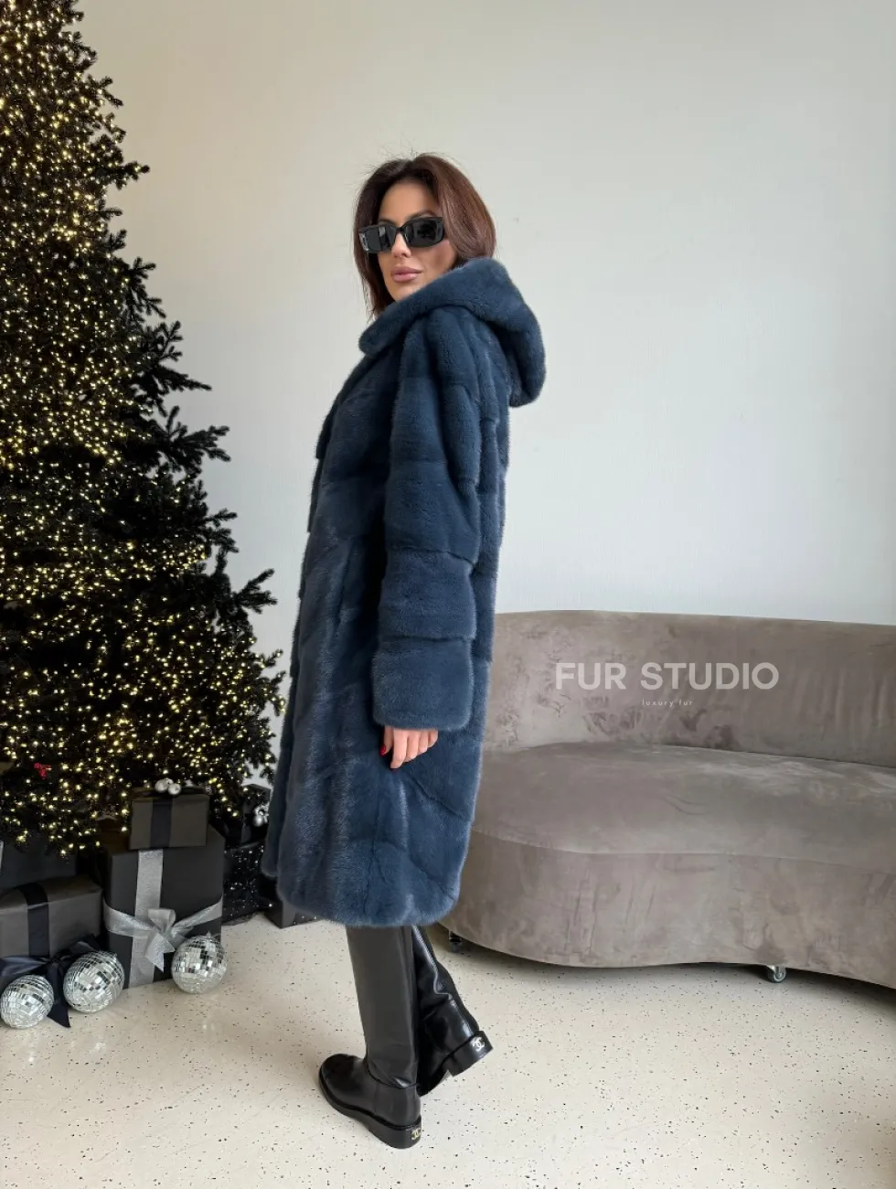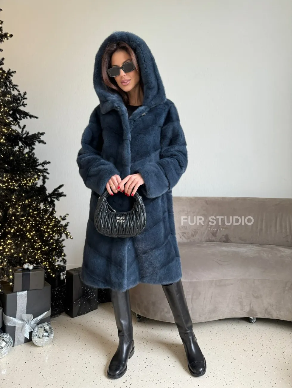 Норковая шуба с капюшоном, паркет - синего цвета доступна для покупки в нашем шоуруме Furs Studio в Москве. У нас так же есть доставка во все города России. Добавьте немного роскоши в свой гардероб с этой шубой, которая будет служить вам многие годы.