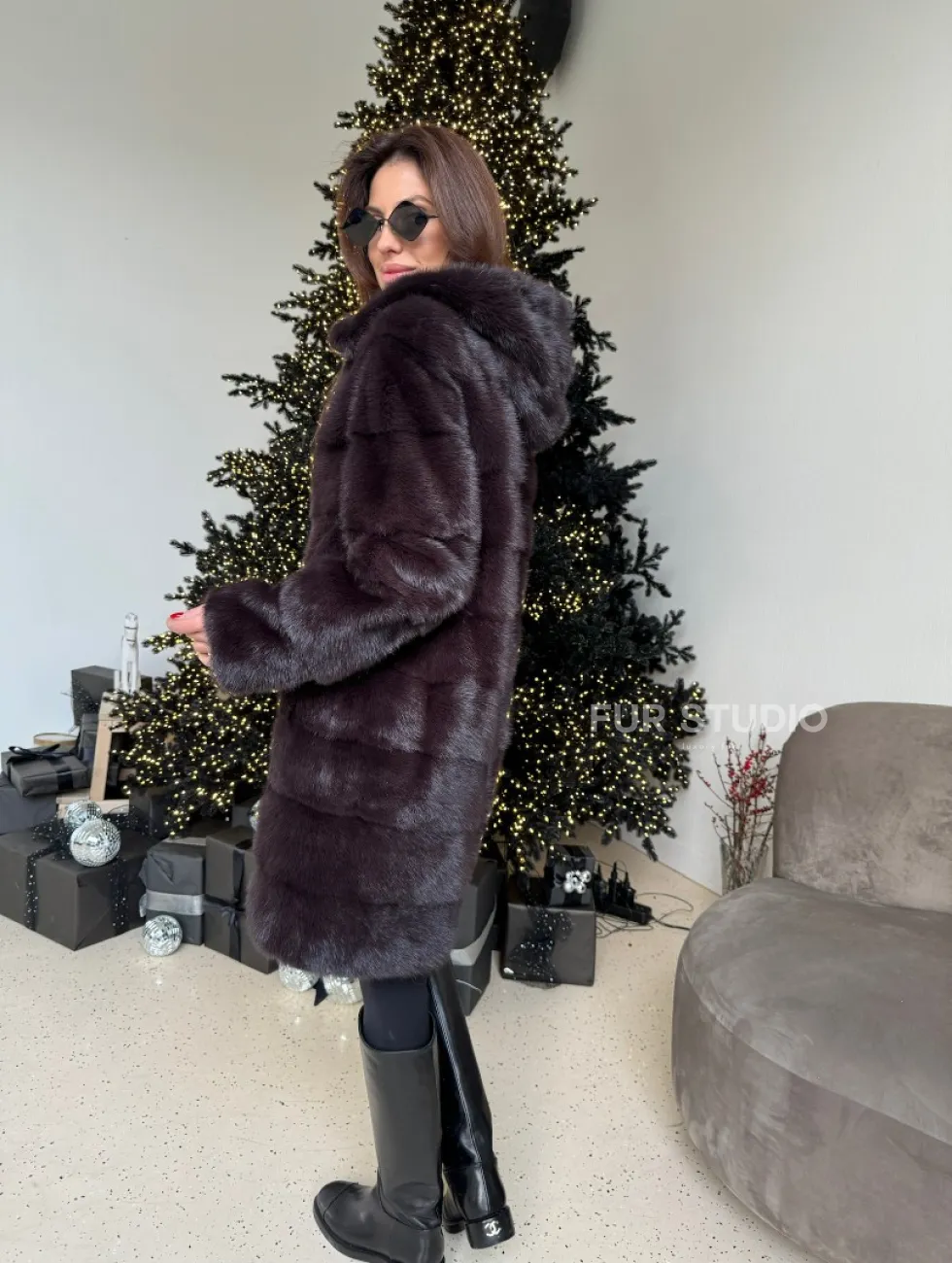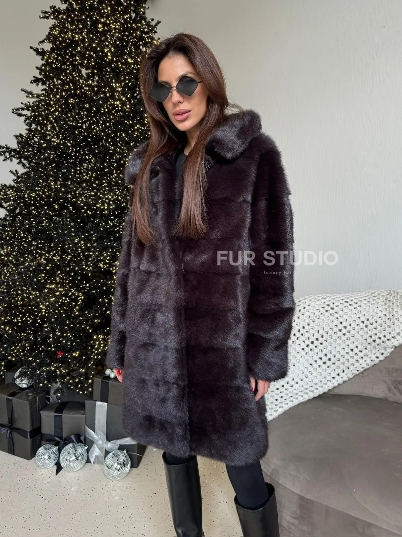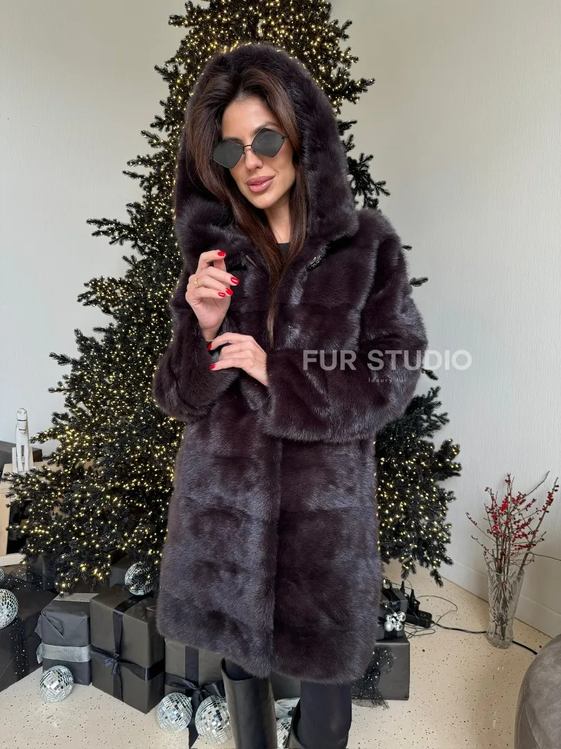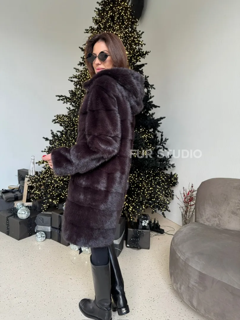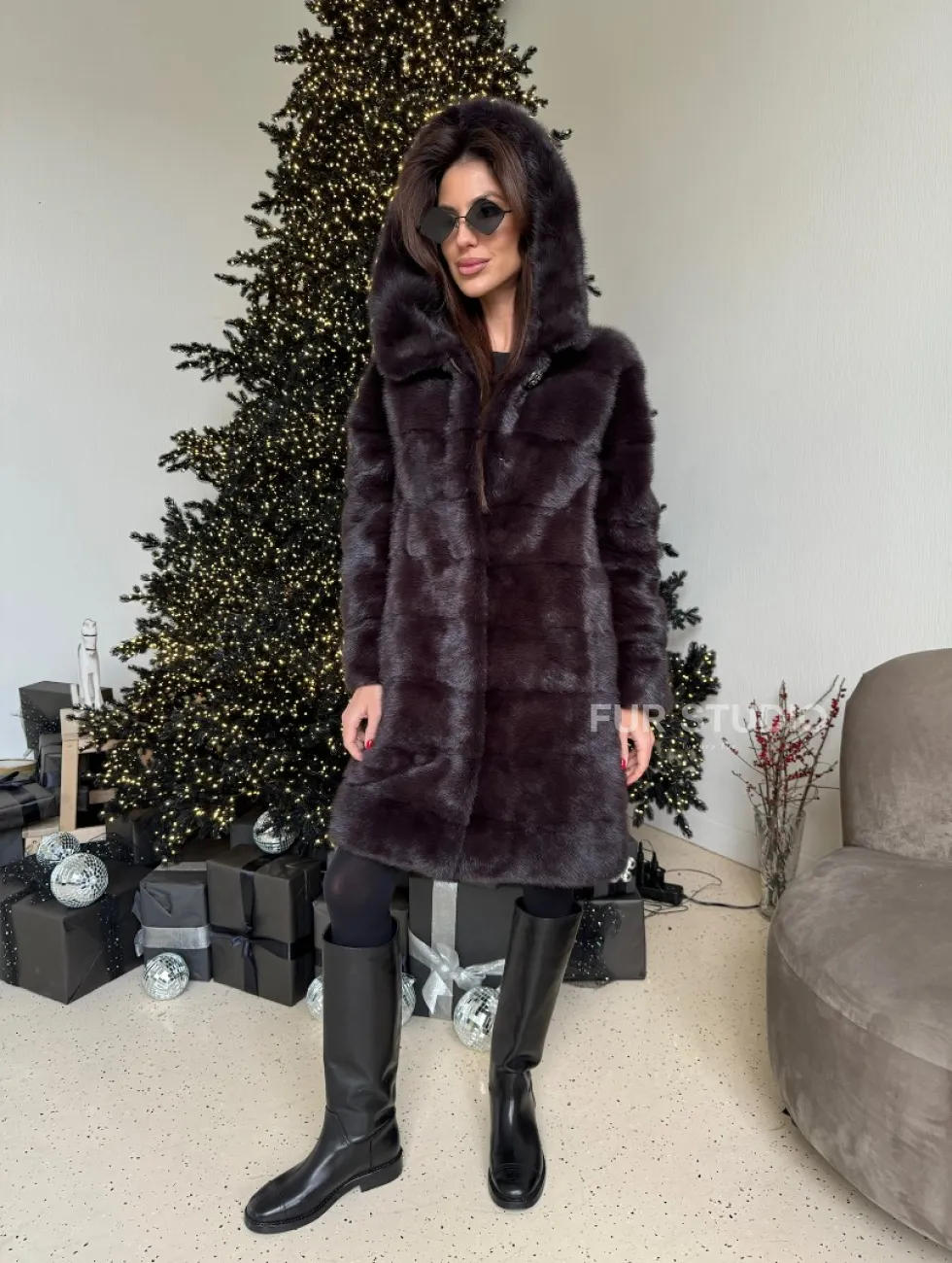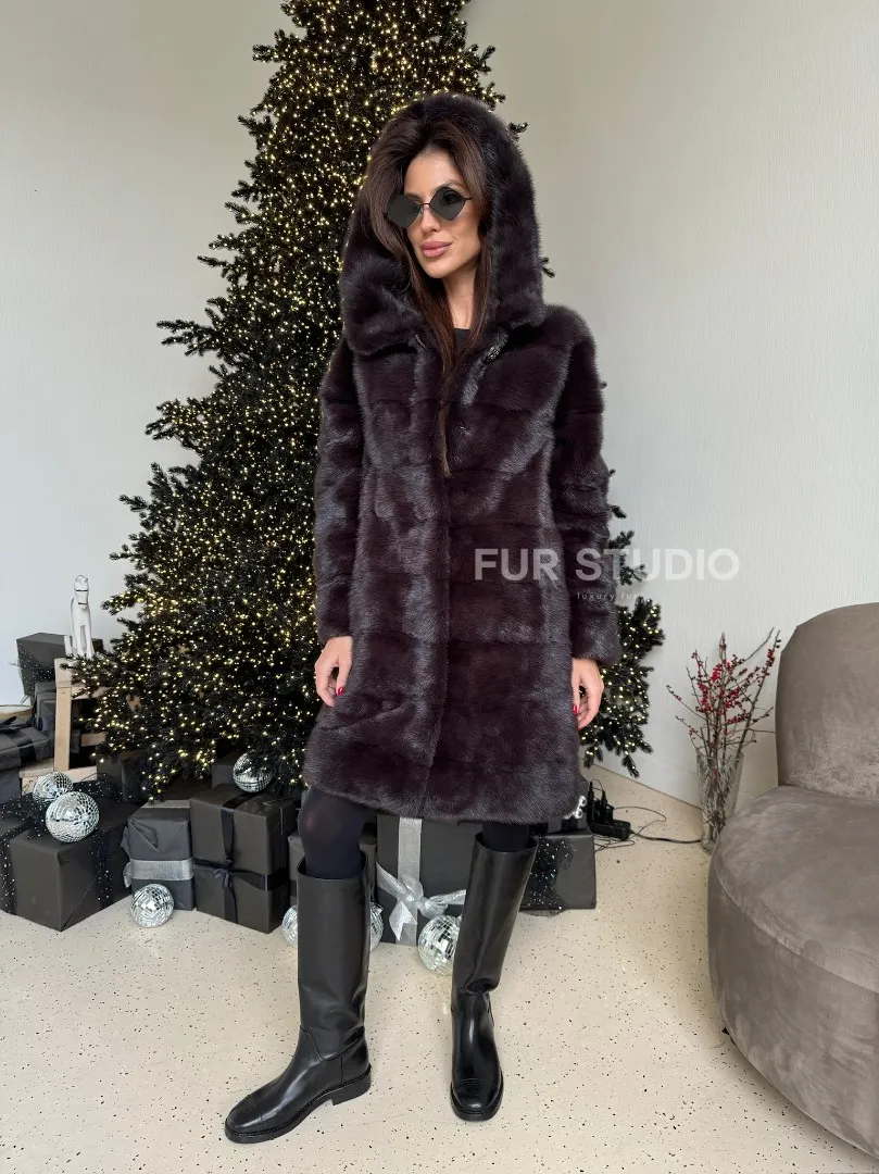 Норковая шуба с капюшоном, поперечка - цвет инжир доступна для покупки в нашем шоуруме Furs Studio в Москве. У нас так же есть доставка во все города России. Добавьте немного роскоши в свой гардероб с этой шубой, которая будет служить вам многие годы.