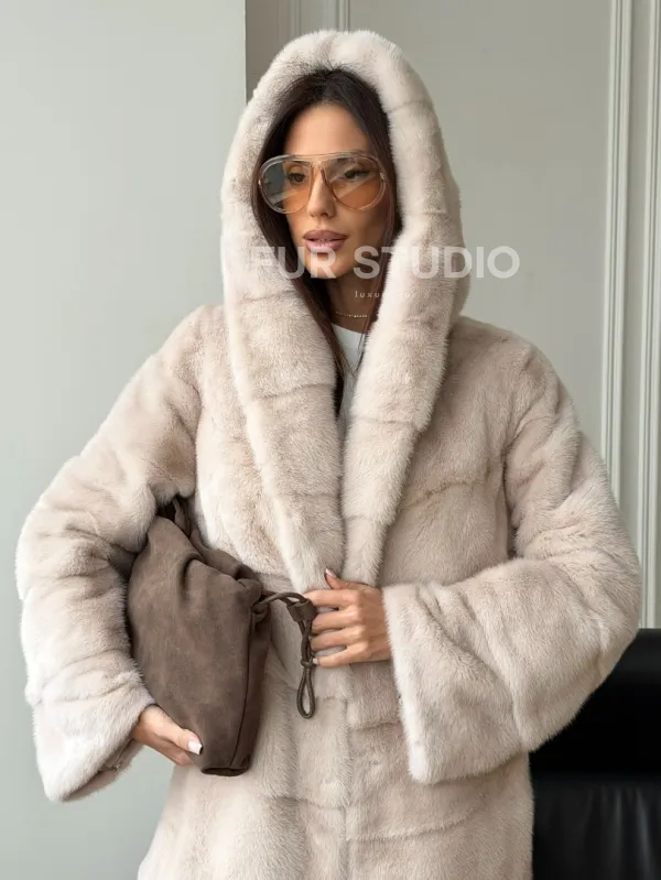 Норковая шуба с капюшоном - " рубашечный крой " доступна для покупки в нашем шоуруме Furs Studio в Москве. У нас так же есть доставка во все города России. Добавьте немного роскоши в свой гардероб с этой шубой, которая будет служить вам многие годы.