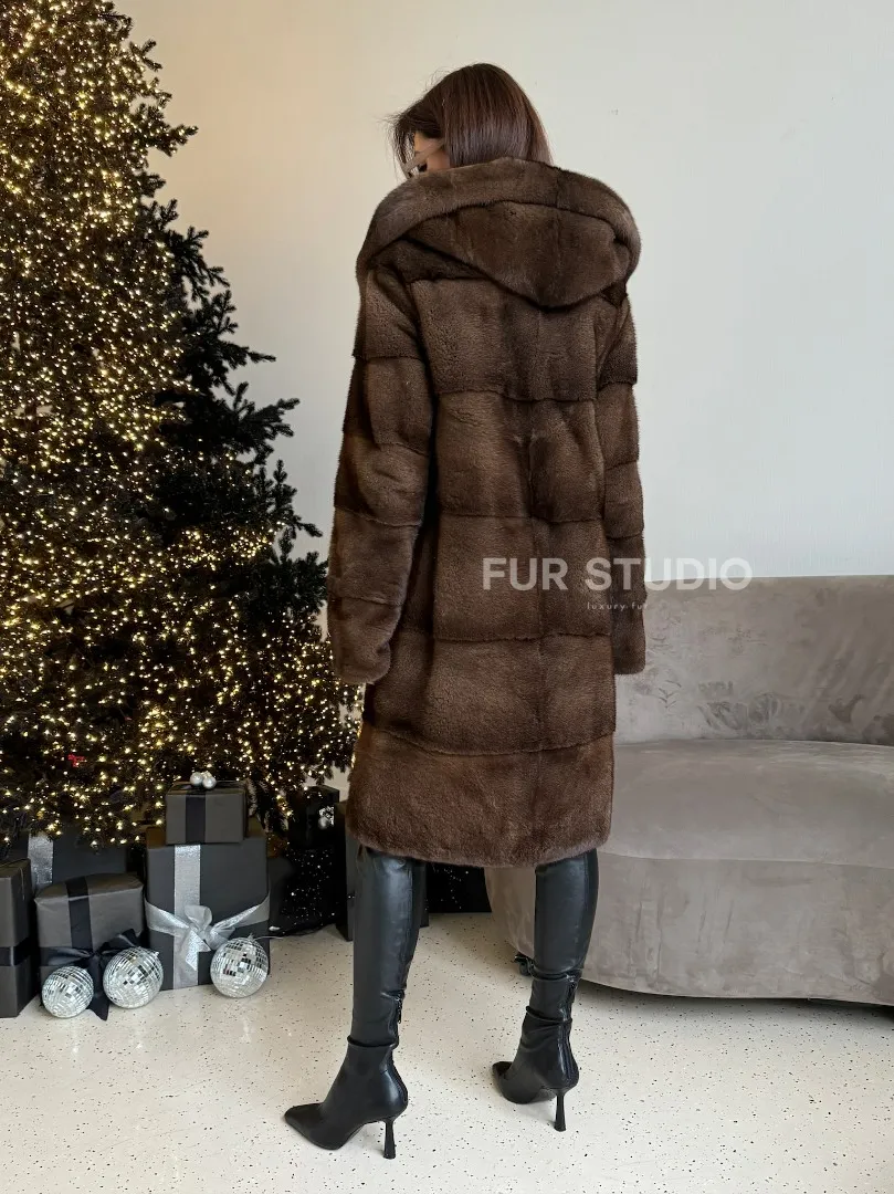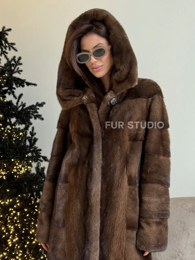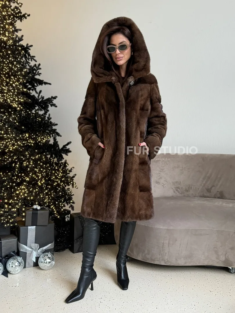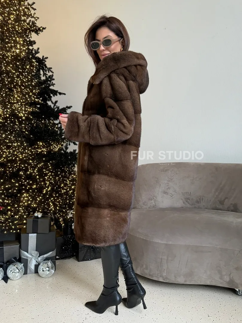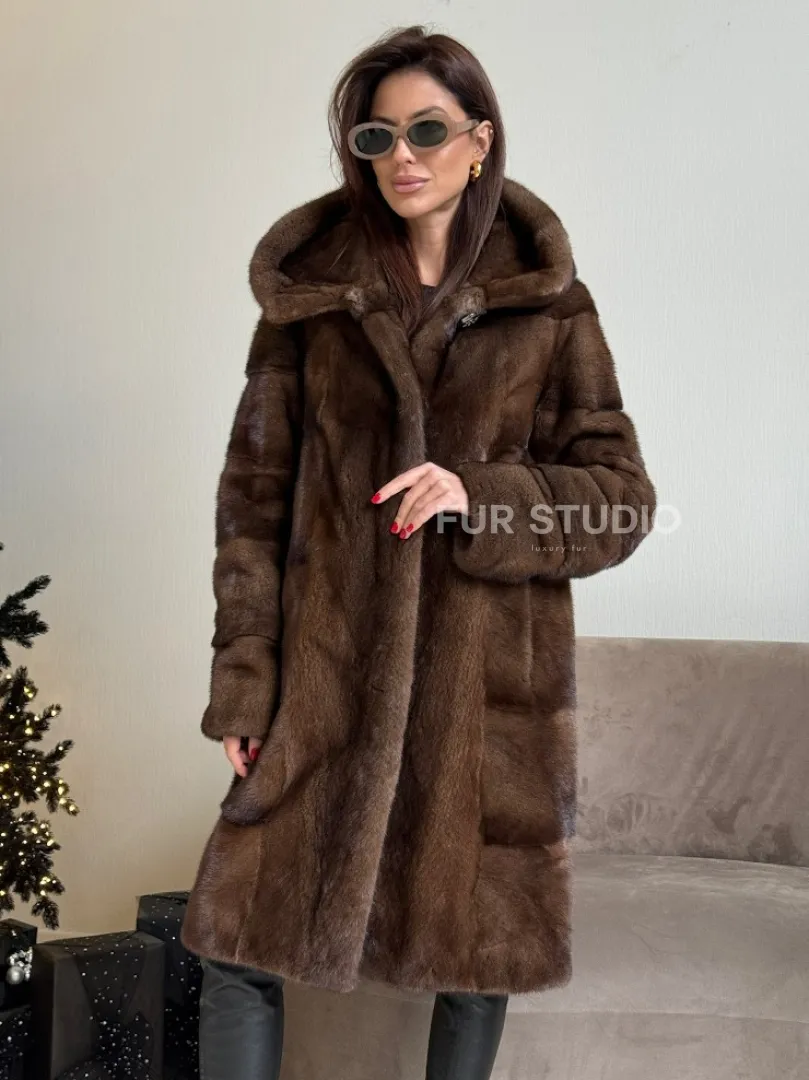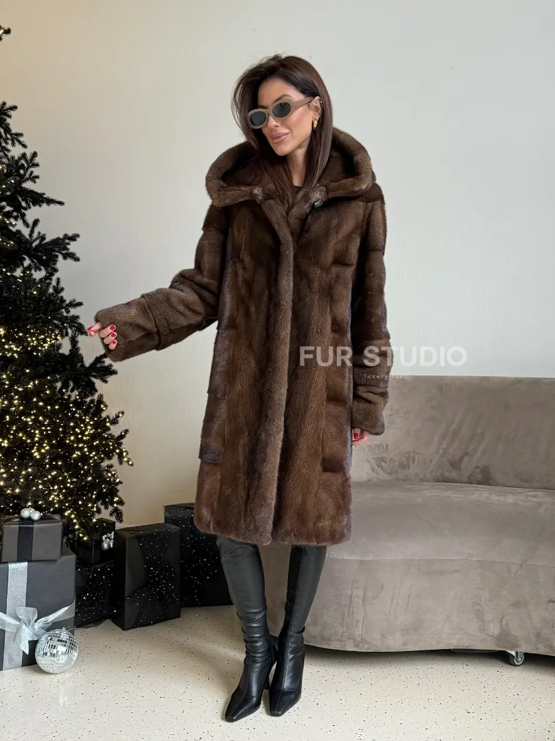 Норковая шуба с капюшоном в цвете орех доступна для покупки в нашем шоуруме Furs Studio в Москве. У нас так же есть доставка во все города России. Добавьте немного роскоши в свой гардероб с этой шубой, которая будет служить вам многие годы.