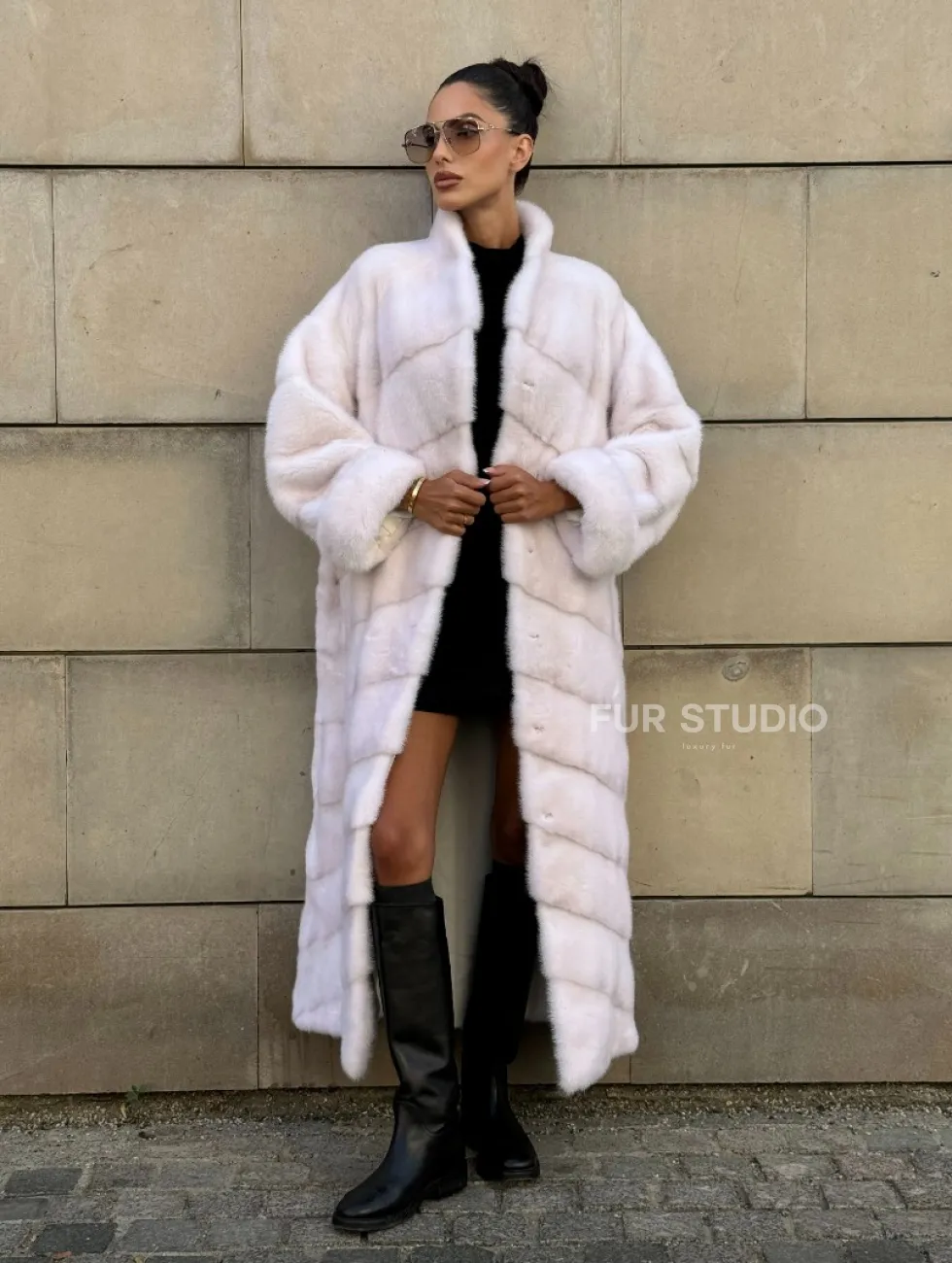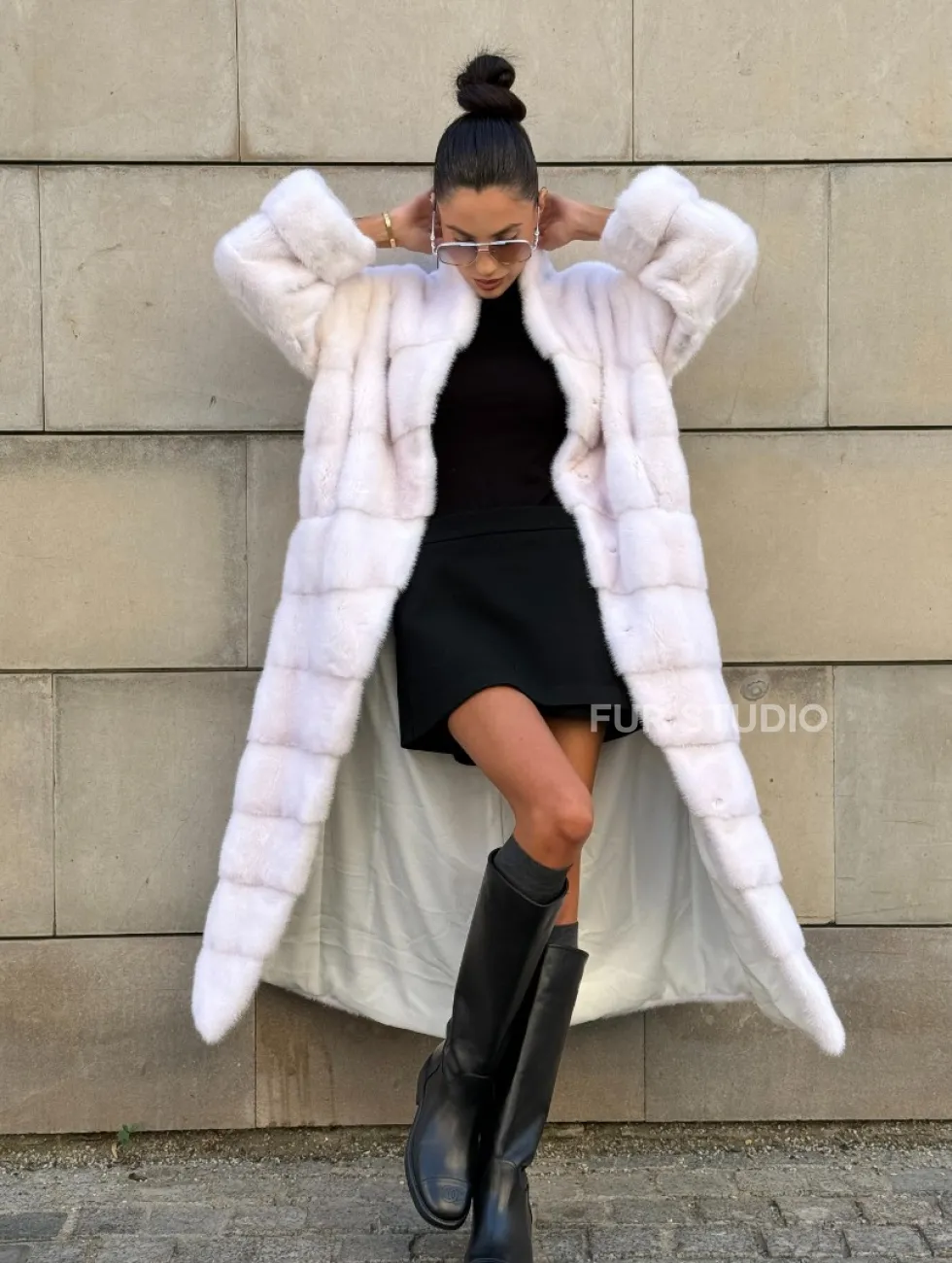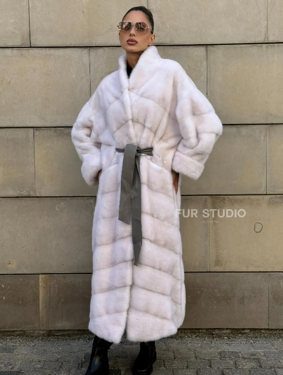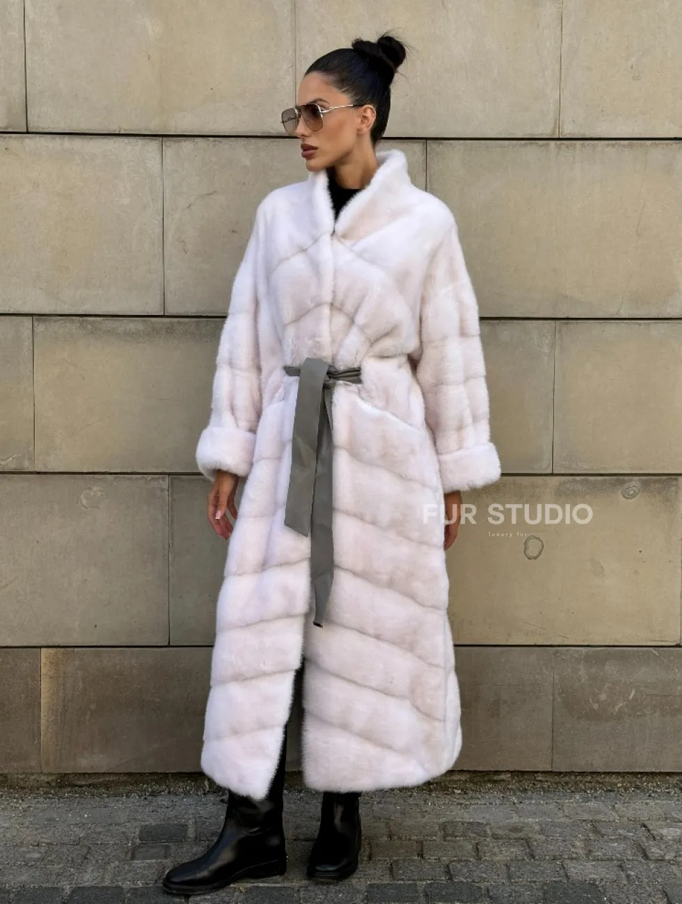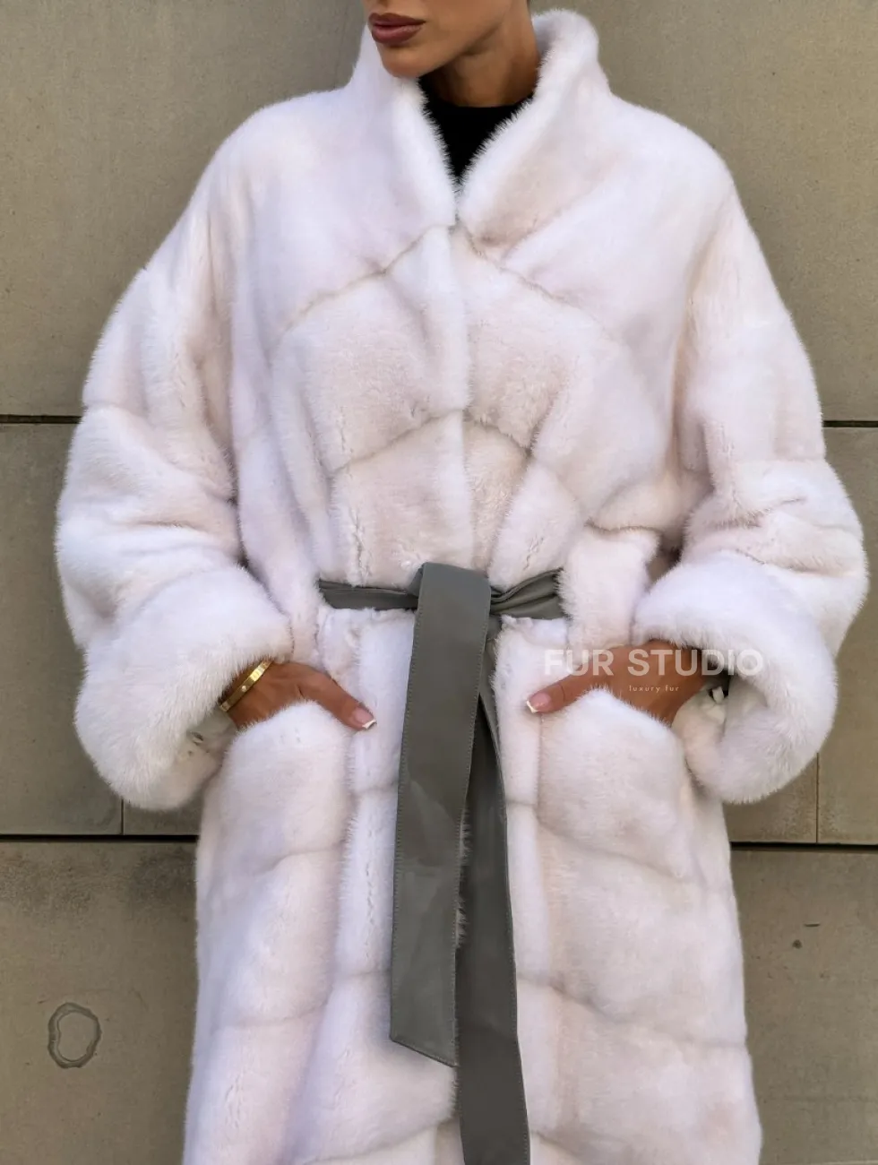 Норковая шуба с поясом, стойка воротник - цвет колотый лед доступна для покупки в нашем шоуруме Furs Studio в Москве. У нас так же есть доставка во все города России. Добавьте немного роскоши в свой гардероб с этой шубой, которая будет служить вам многие годы.