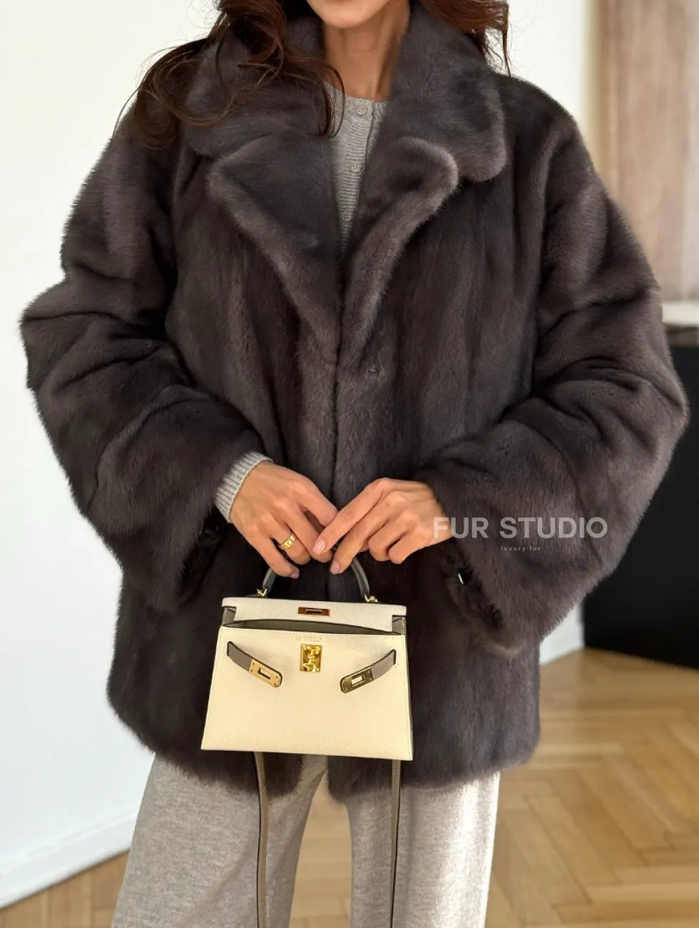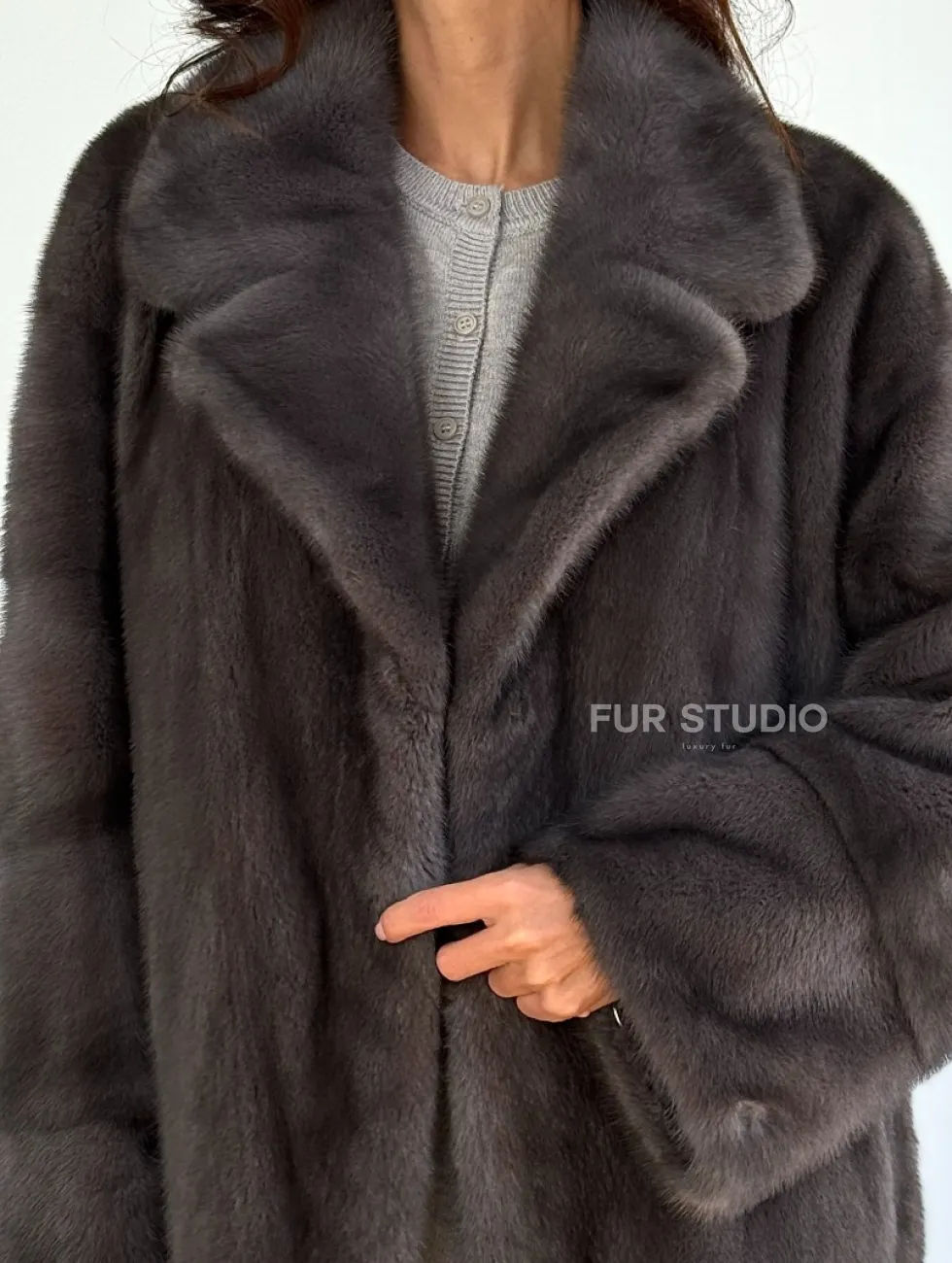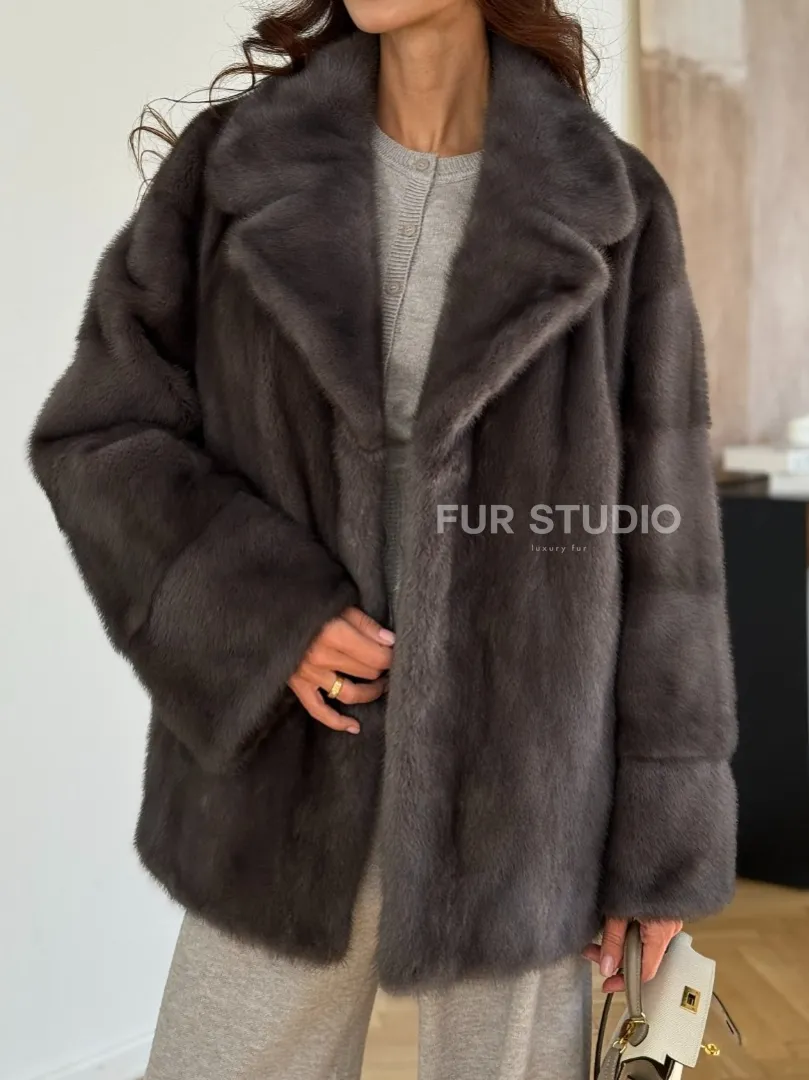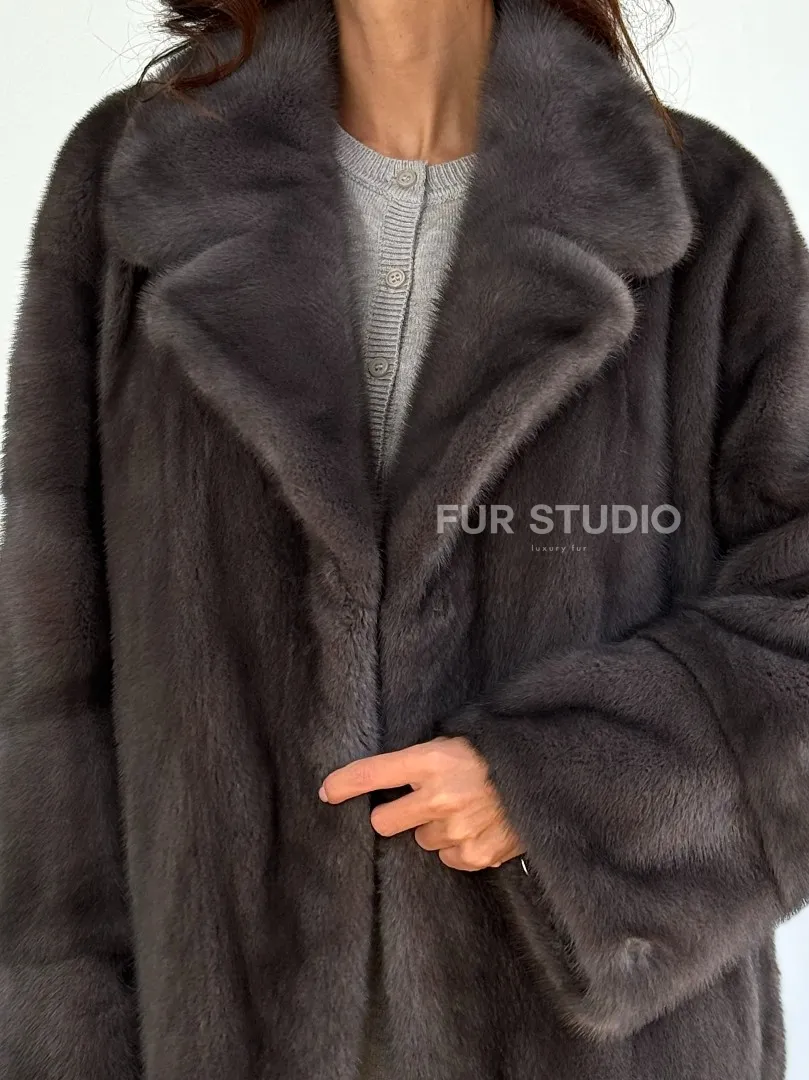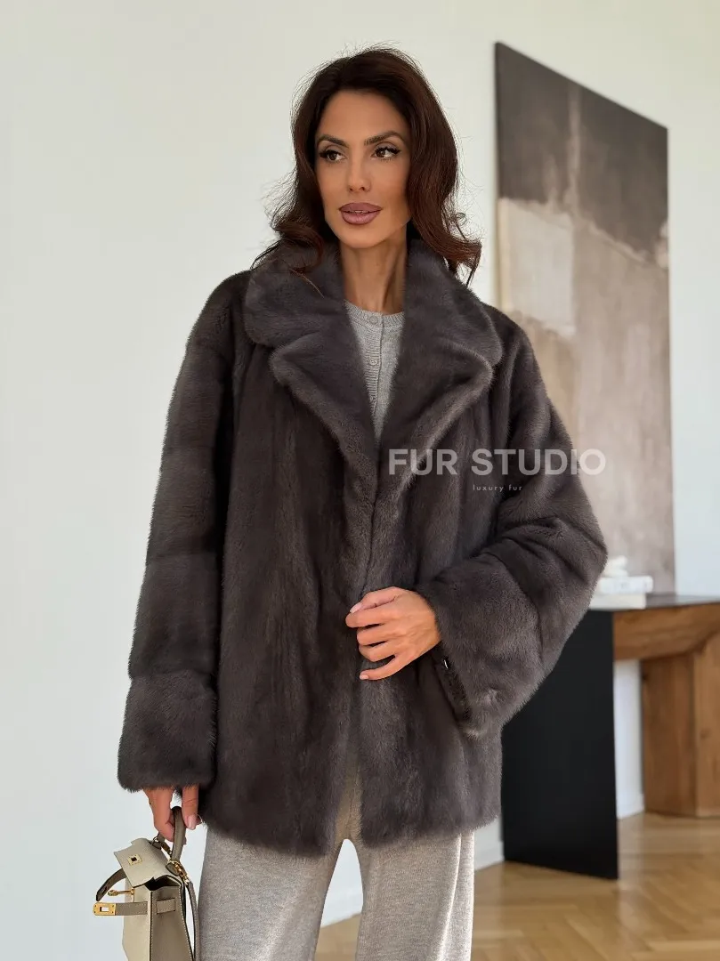 Мех данной шубы аукционная норка , цвет серый. Предлагается в размерах от 42 до 54. Длина модели 70-75 см, что выгодно подчеркивает фигуру девушек. Эта модель идеально подойдет для девушек и женщин, предпочитающих роскошные натуральные меха.