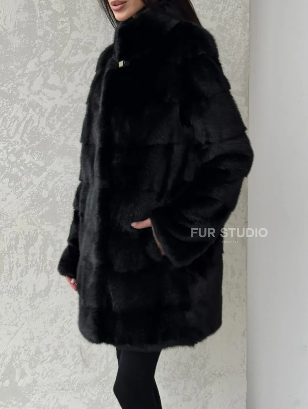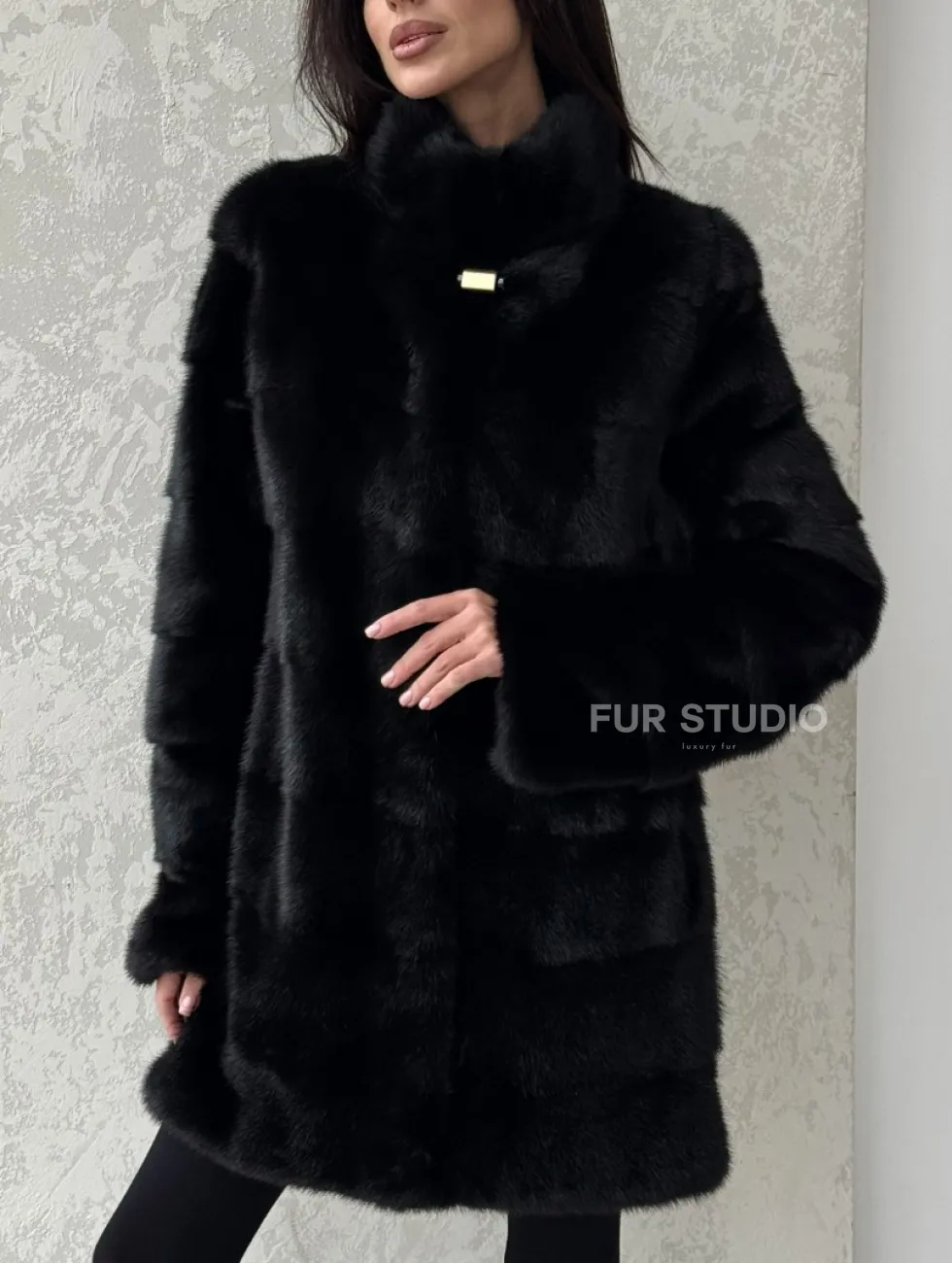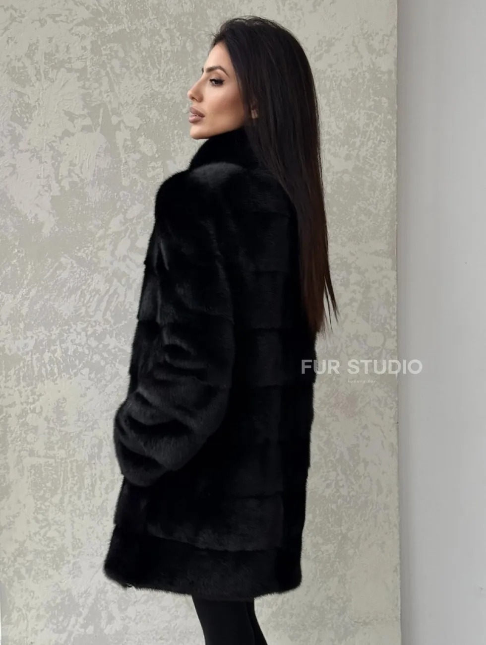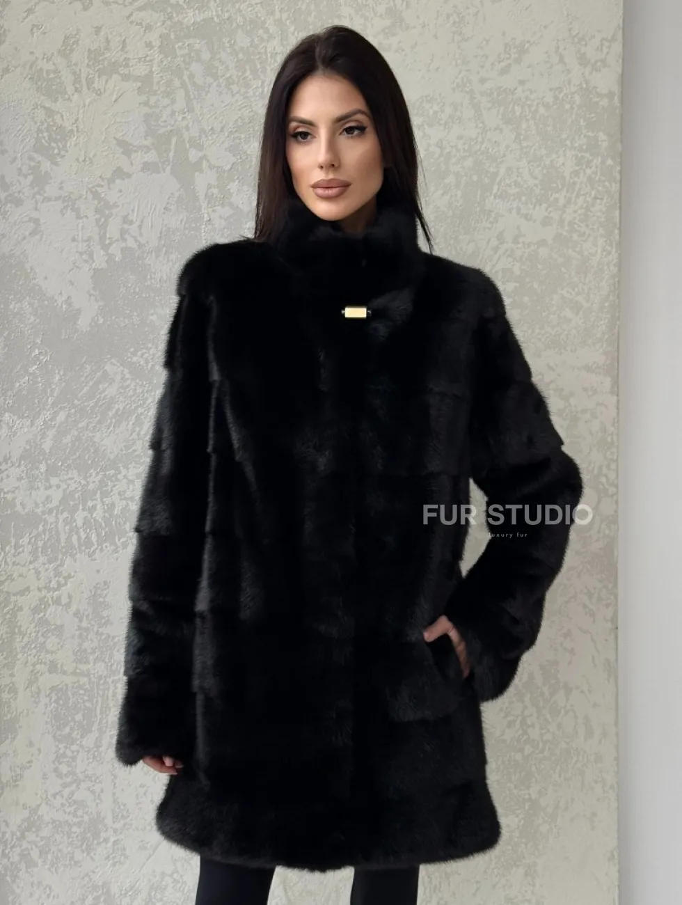 Норковая шуба средней длины стойка воротник - цвет черный доступна для покупки в нашем шоуруме Furs Studio в Москве. У нас так же есть доставка во все города России. Добавьте немного роскоши в свой гардероб с этой шубой, которая будет служить вам многие годы.
