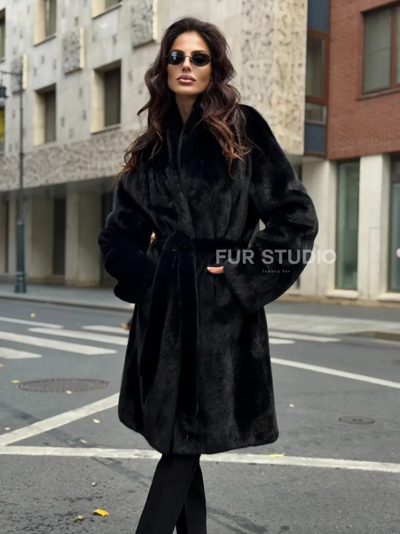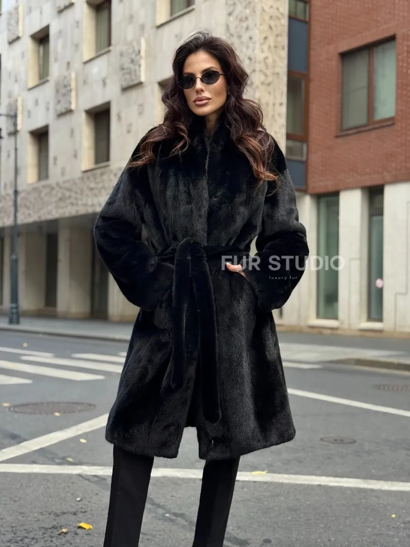 Норковая шуба средняя длина - черная доступна для покупки в нашем шоуруме Furs Studio в Москве. У нас так же есть доставка во все города России. Добавьте немного роскоши в свой гардероб с этой шубой, которая будет служить вам многие годы.