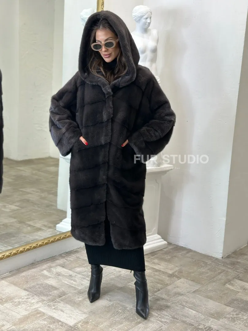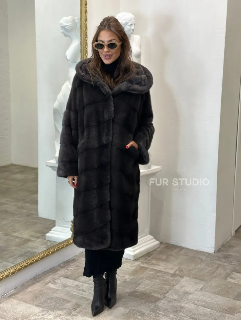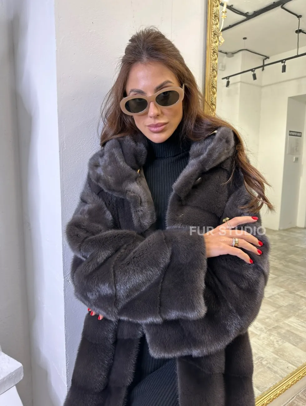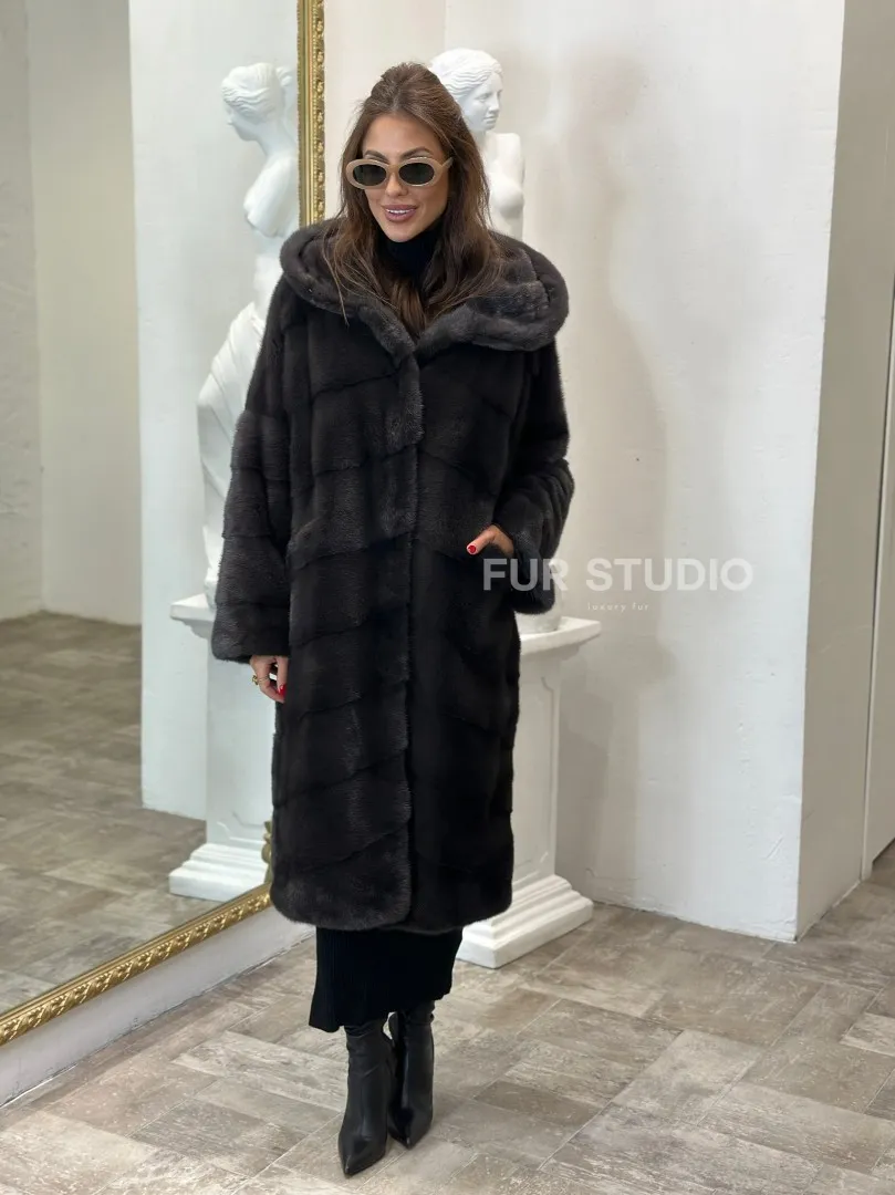 Норковая шуба в цвете графитовый уголь с капюшоном доступна для покупки в нашем шоуруме Furs Studio в Москве. У нас так же есть доставка во все города России. Добавьте немного роскоши в свой гардероб с этой шубой, которая будет служить вам многие годы.