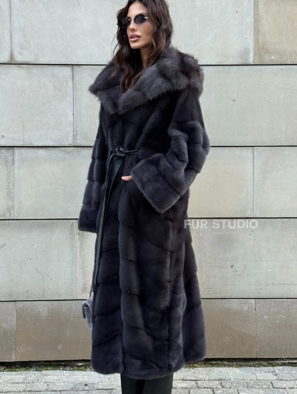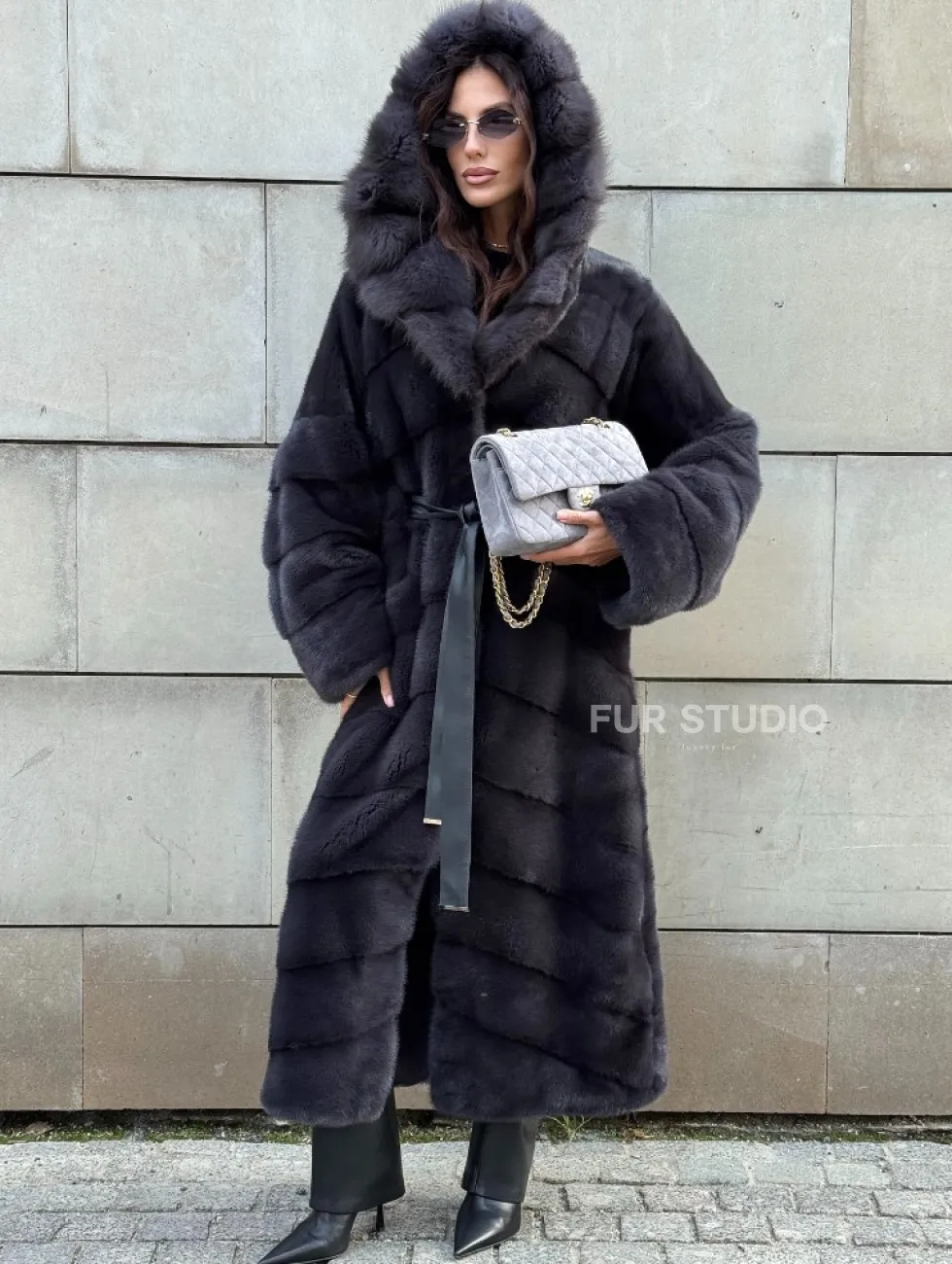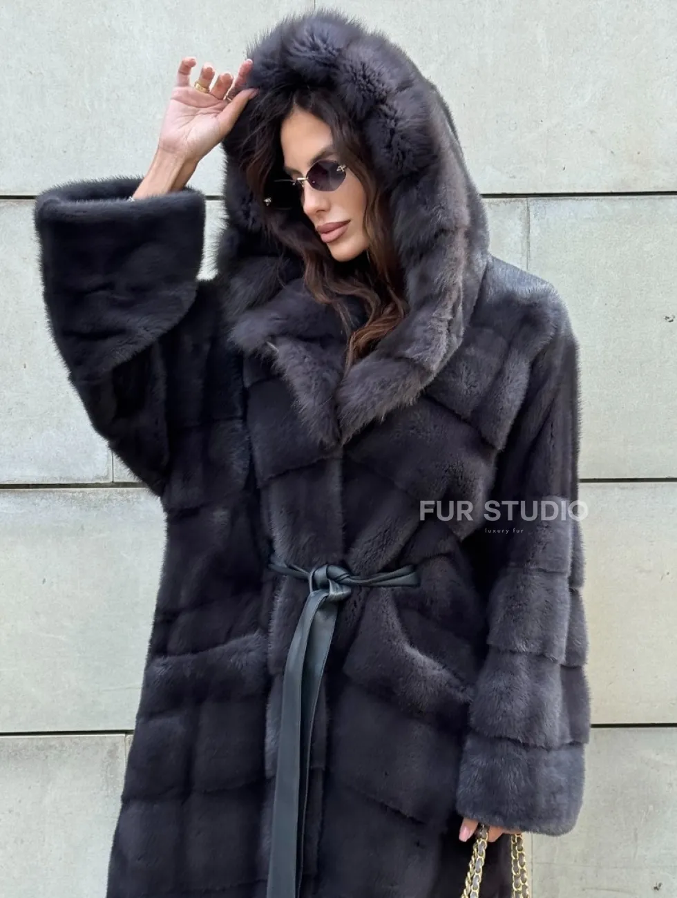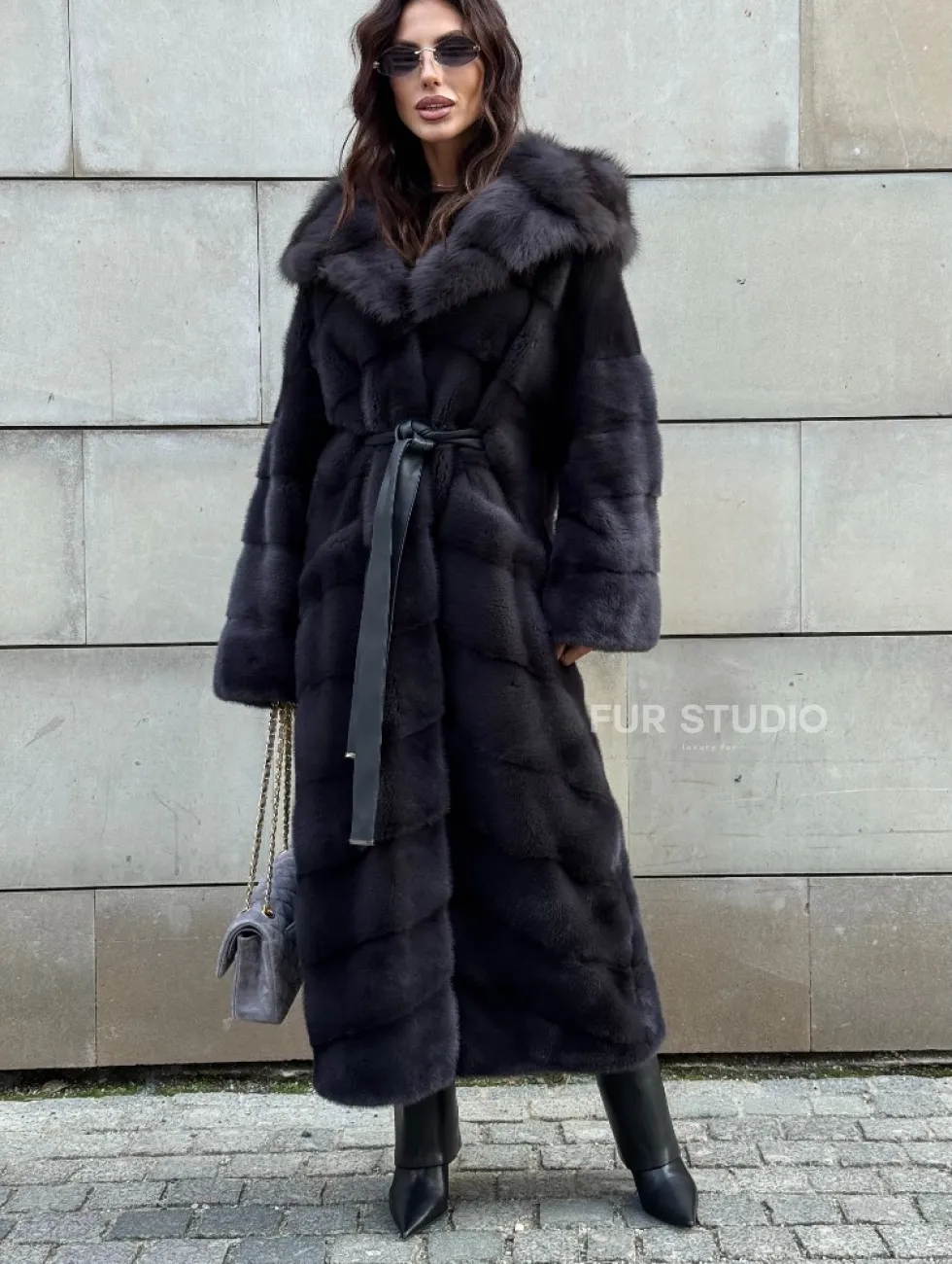 Норковая шуба в цвете графит с капюшоном из куницы доступна для покупки в нашем шоуруме Furs Studio в Москве. У нас так же есть доставка во все города России. Добавьте немного роскоши в свой гардероб с этой шубой, которая будет служить вам многие годы.