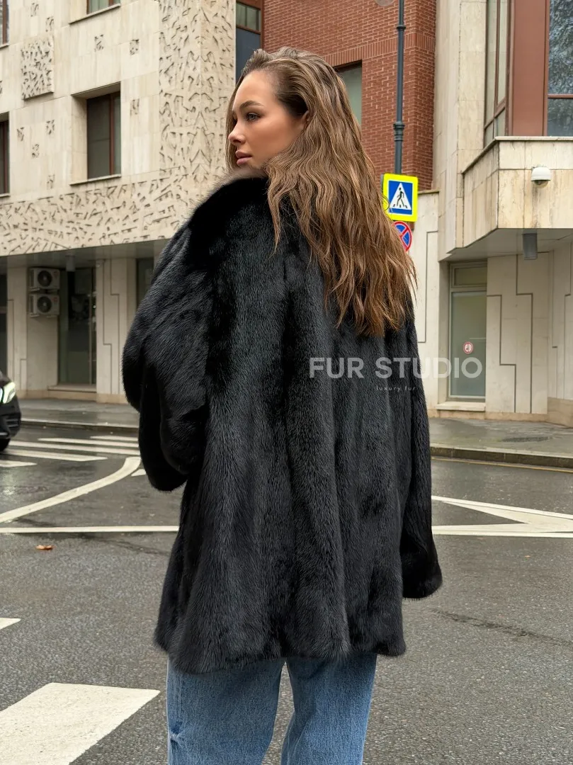 Мех данной шубы аукционная норка, цвет черный. Предлагается в размерах от 46 до 60. Длина модели 75-80 см, что выгодно подчеркивает фигуру девушек. Эта модель идеально подойдет для девушек и женщин, предпочитающих роскошные натуральные меха.