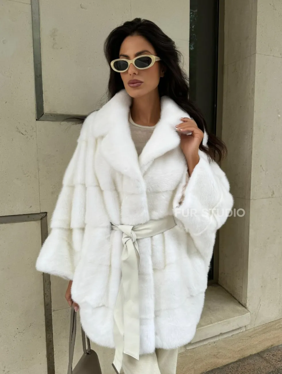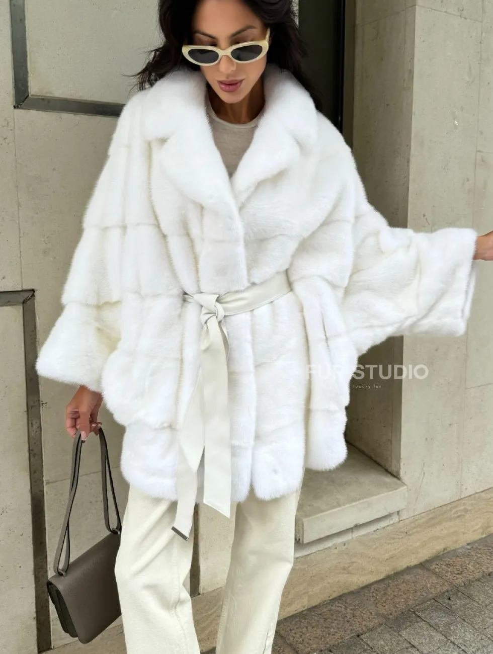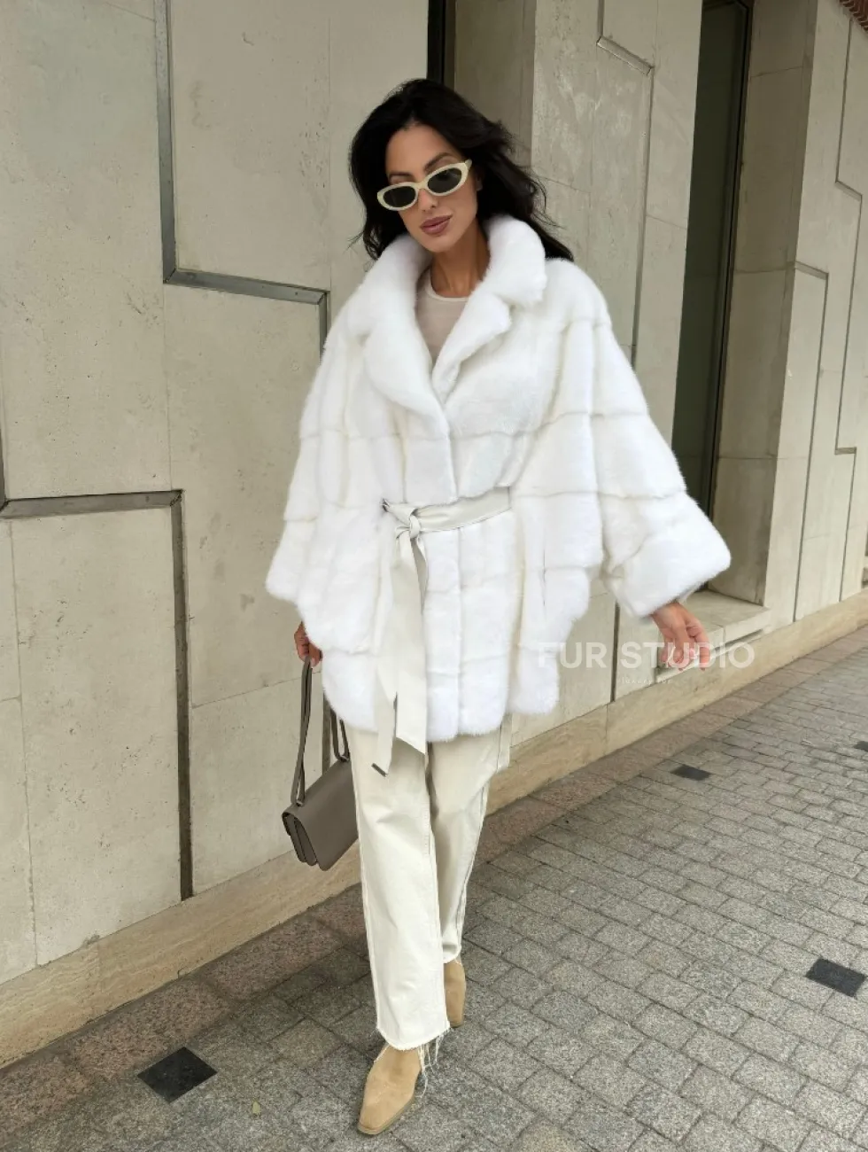 Норковая шубу Saga furs в белом цвете фасон - летучая мышь доступна для покупки в нашем шоуруме Furs Studio в Москве. У нас так же есть доставка во все города России. Добавьте немного роскоши в свой гардероб с этой шубой, которая будет служить вам многие годы.