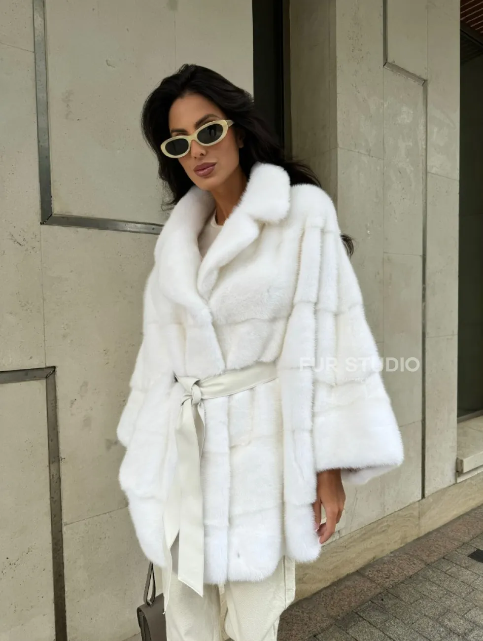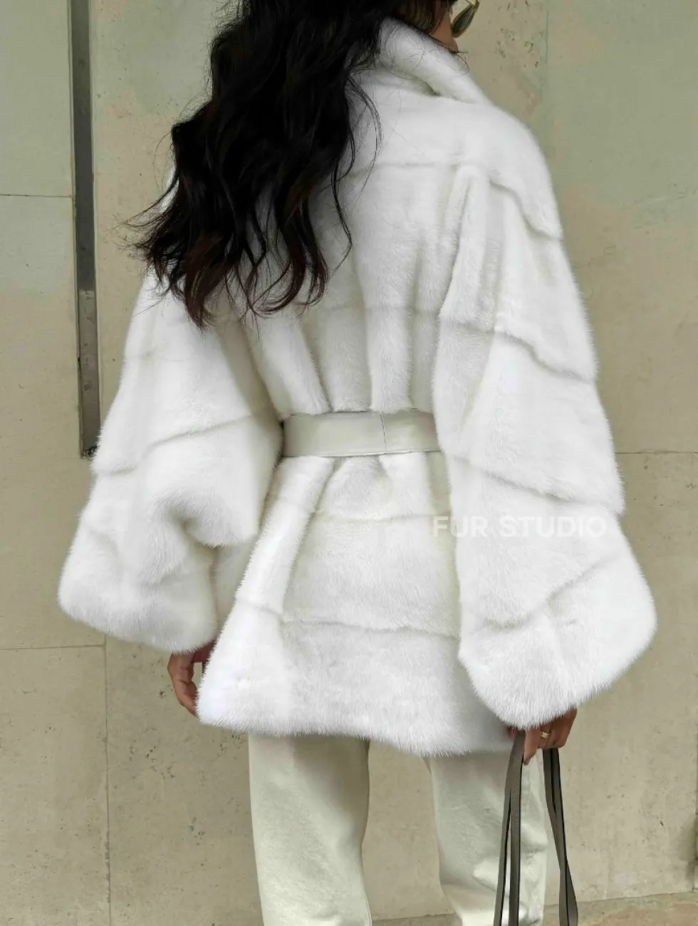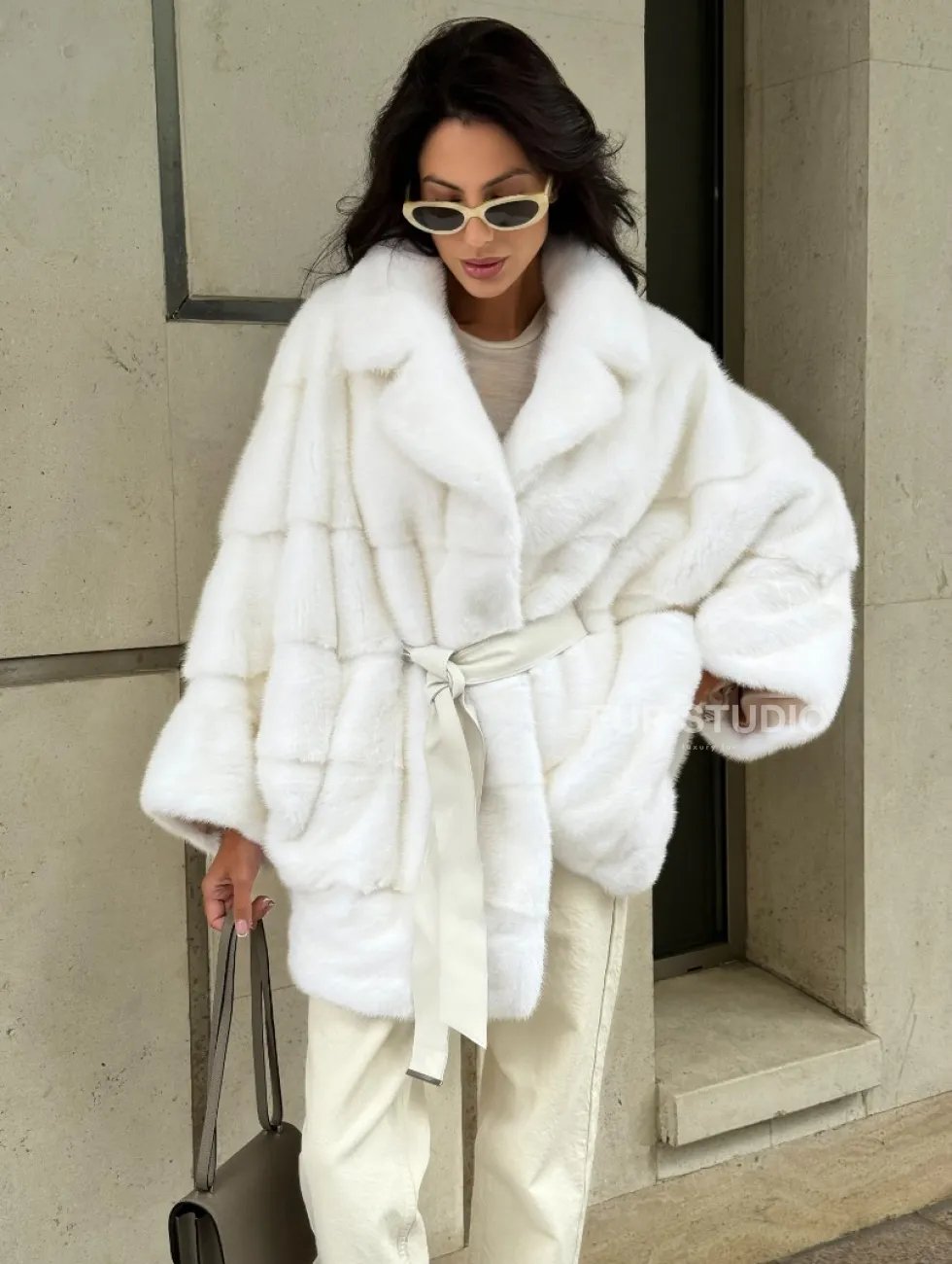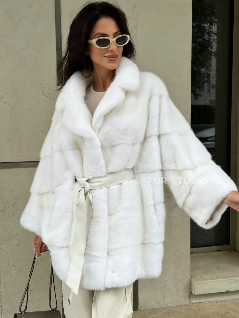 Норковая шубу Saga furs в белом цвете фасон - летучая мышь доступна для покупки в нашем шоуруме Furs Studio в Москве. У нас так же есть доставка во все города России. Добавьте немного роскоши в свой гардероб с этой шубой, которая будет служить вам многие годы.