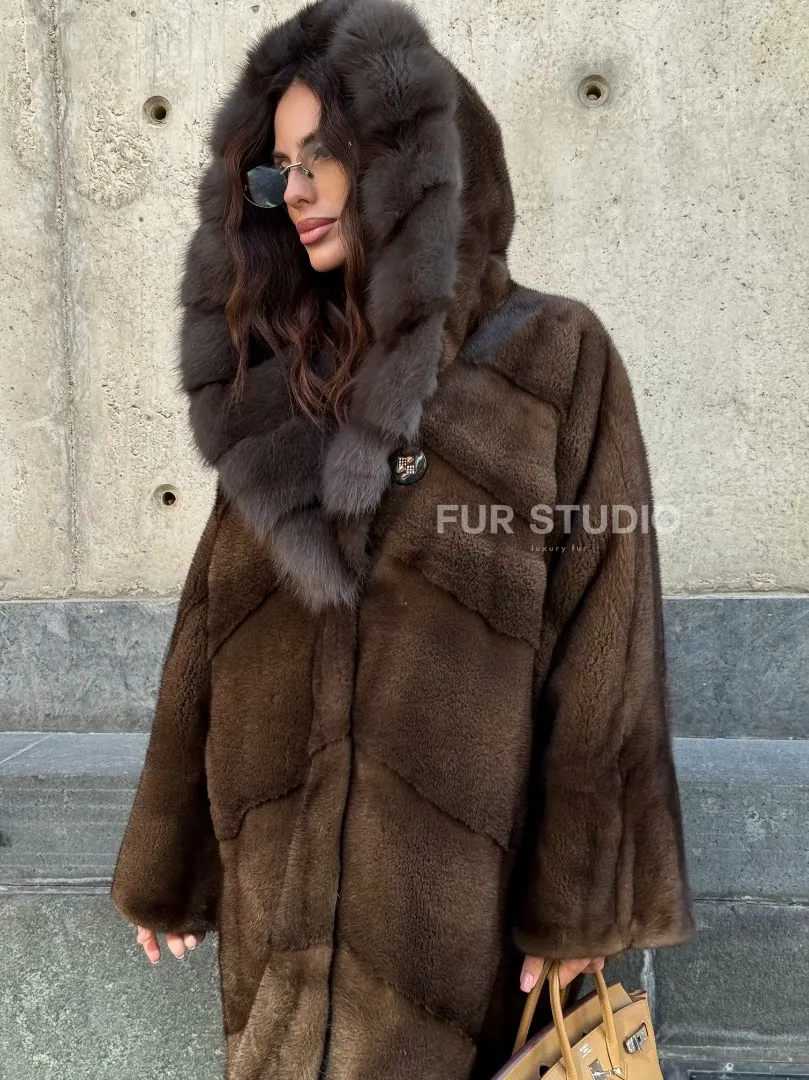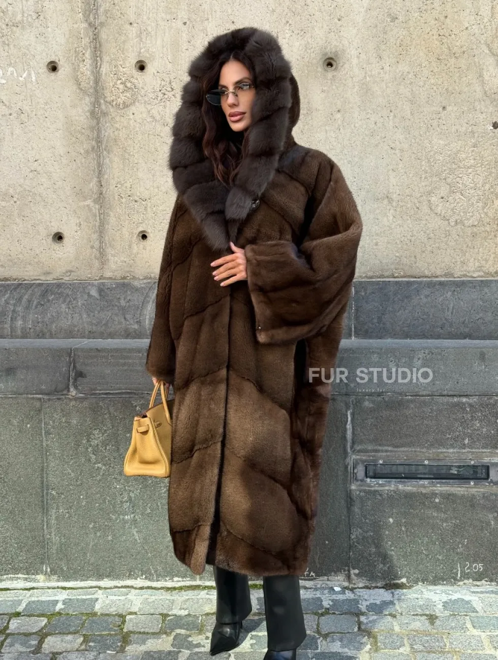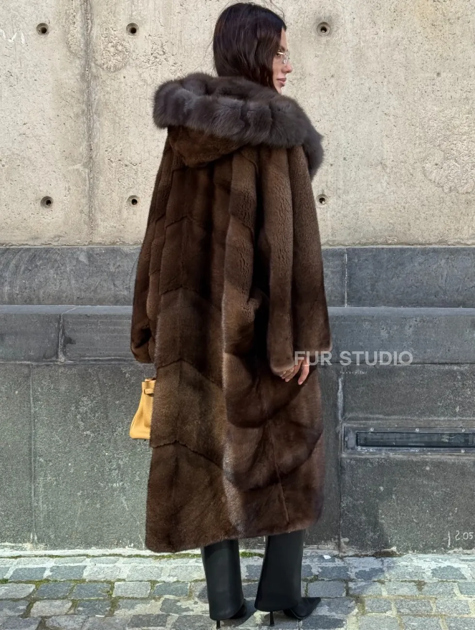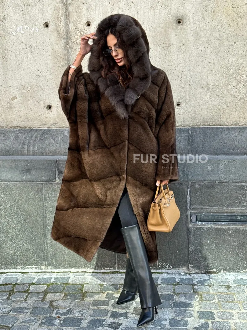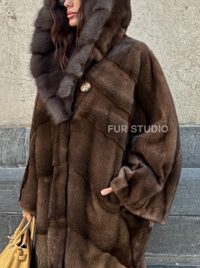 Норковое пальто в стиле "Бохо" с капюшоном из меха куницы доступна для покупки в нашем шоуруме Furs Studio в Москве. У нас так же есть доставка во все города России. Добавьте немного роскоши в свой гардероб с этой шубой, которая будет служить вам многие годы.