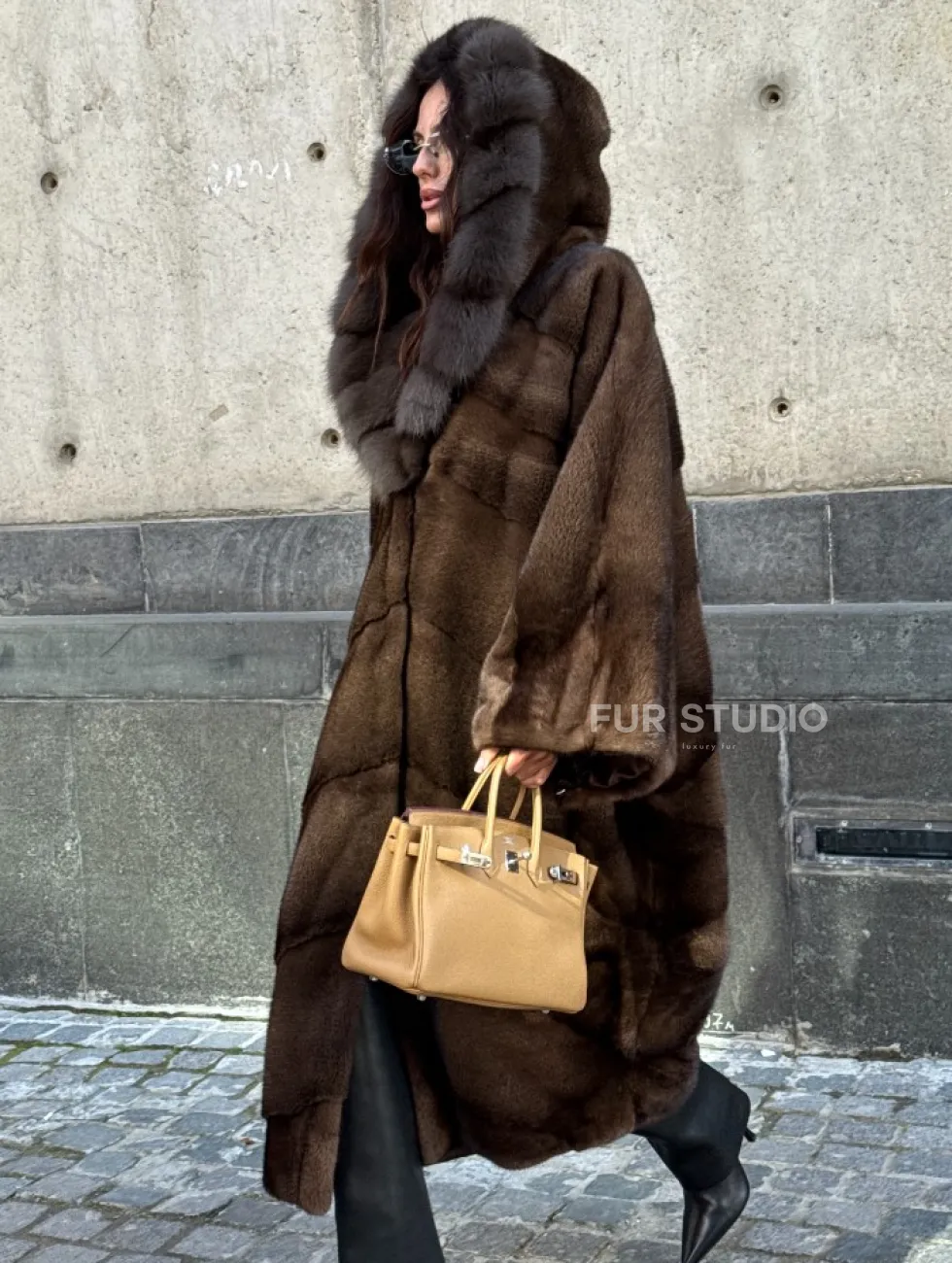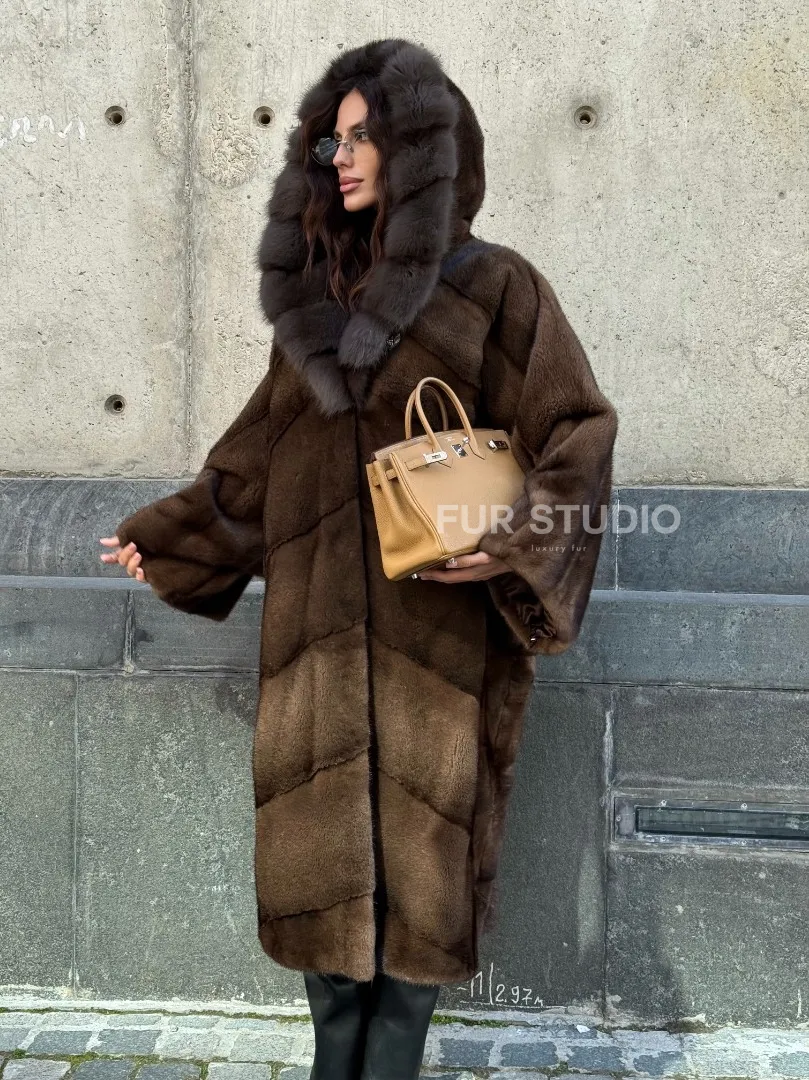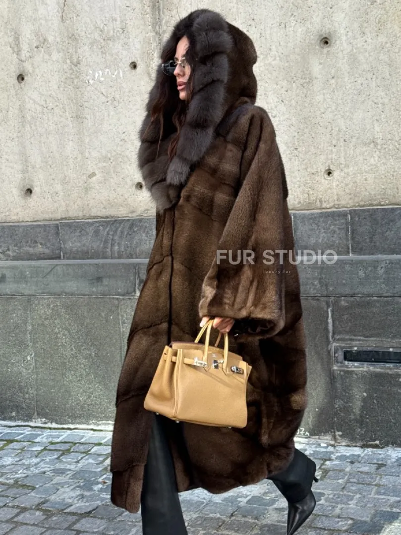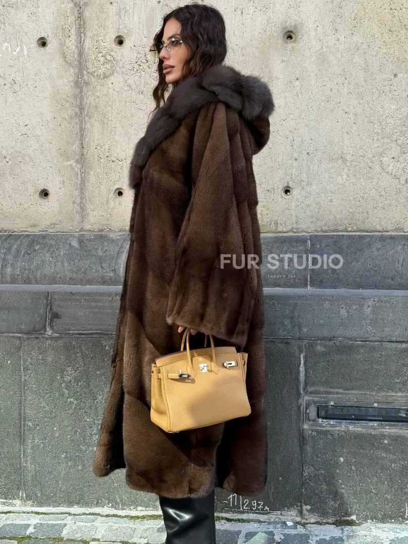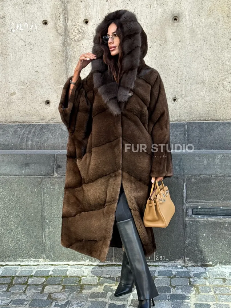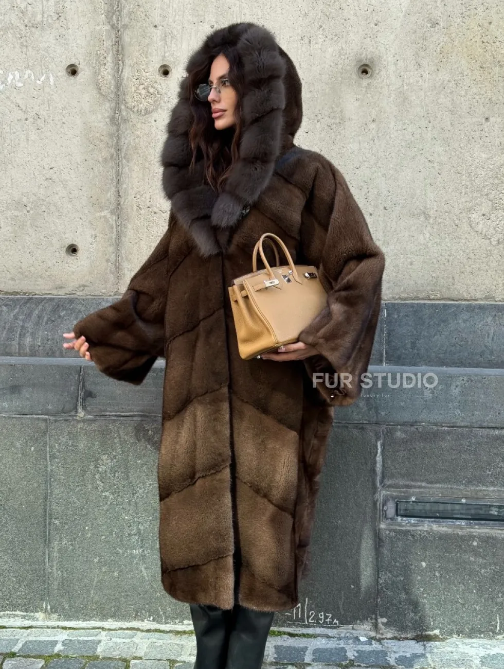 Норковое пальто в стиле "Бохо" с капюшоном из меха куницы доступна для покупки в нашем шоуруме Furs Studio в Москве. У нас так же есть доставка во все города России. Добавьте немного роскоши в свой гардероб с этой шубой, которая будет служить вам многие годы.