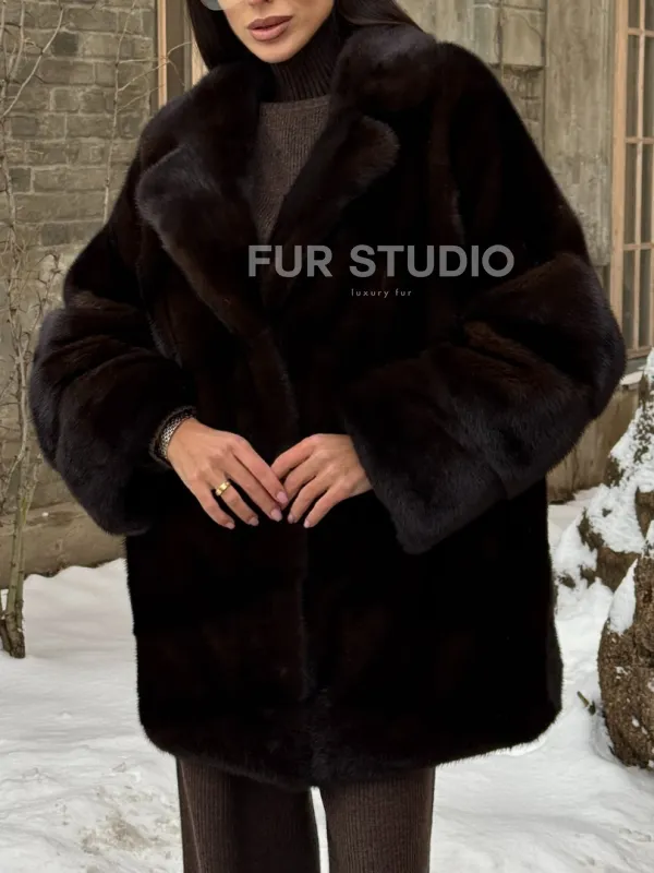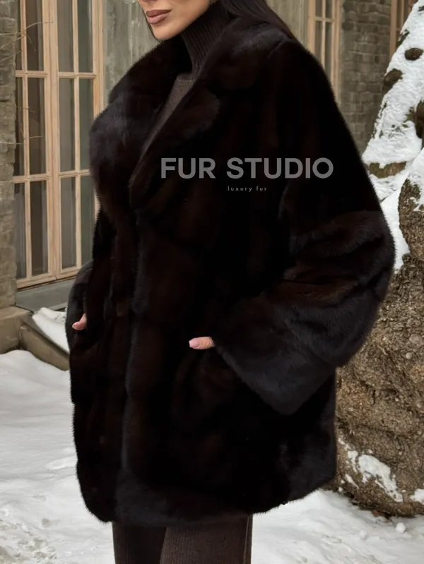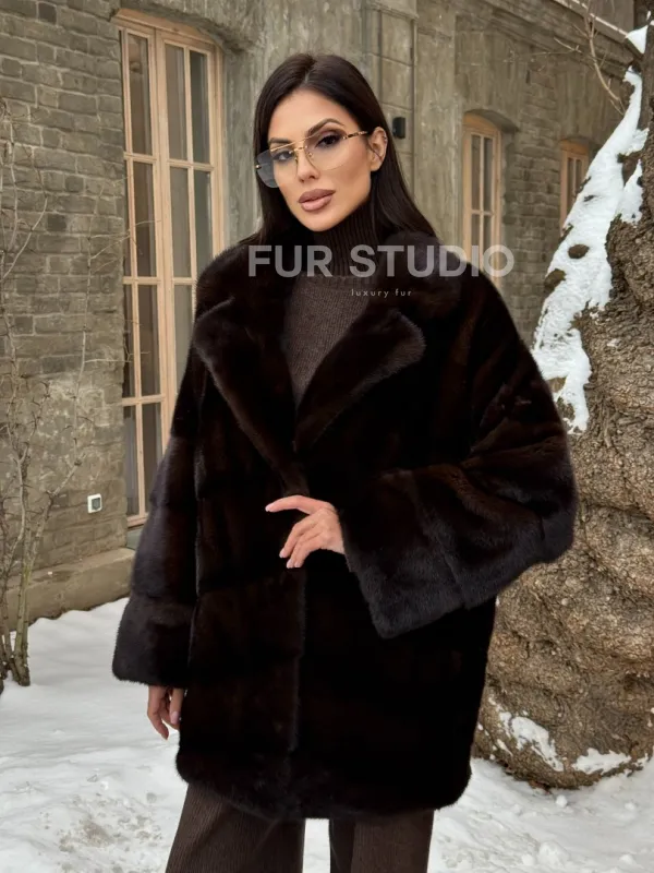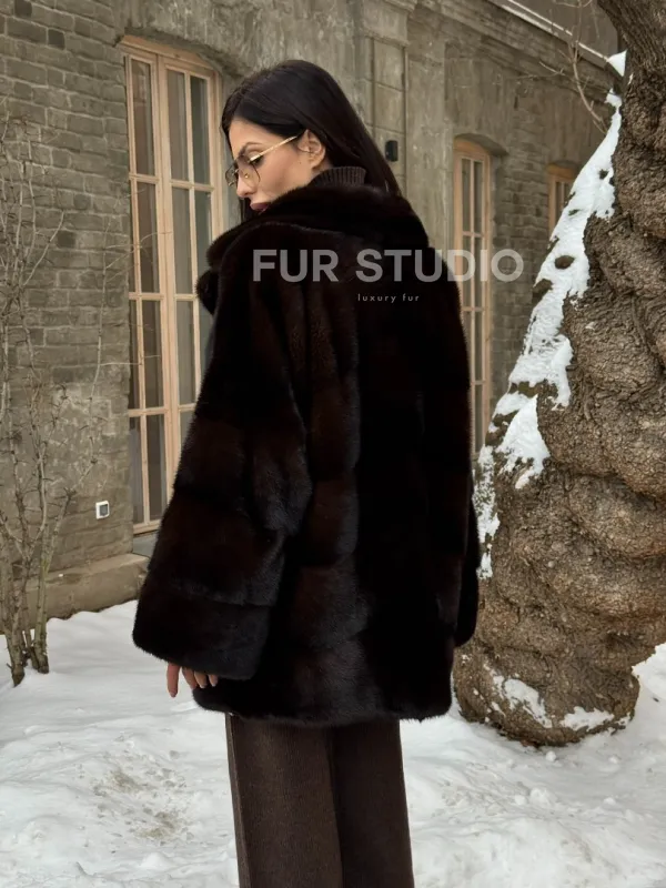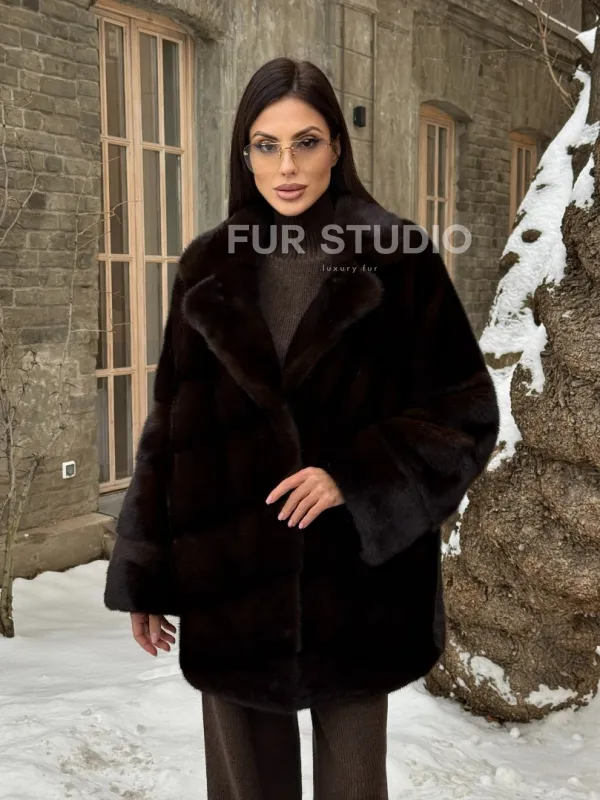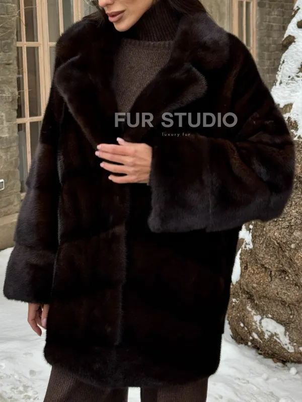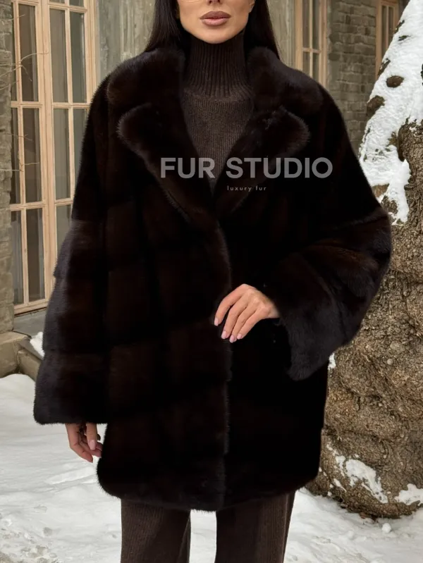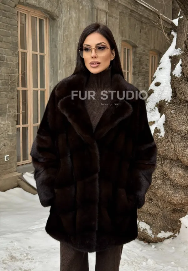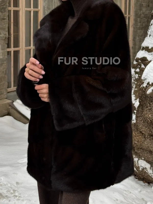 Норковое полупальто автоледи с английским воротником цвет Dark brown доступна для покупки в нашем шоуруме Furs Studio в Москве. У нас так же есть доставка во все города России. Добавьте немного роскоши в свой гардероб с этой шубой, которая будет служить вам многие годы.