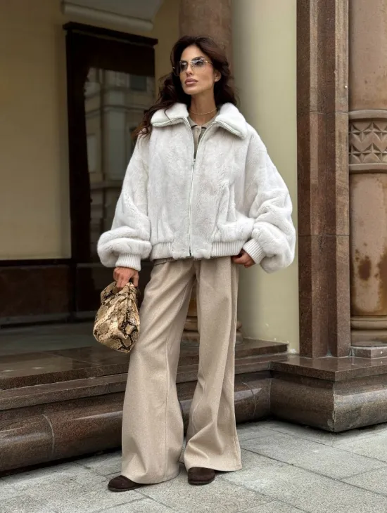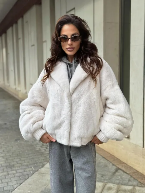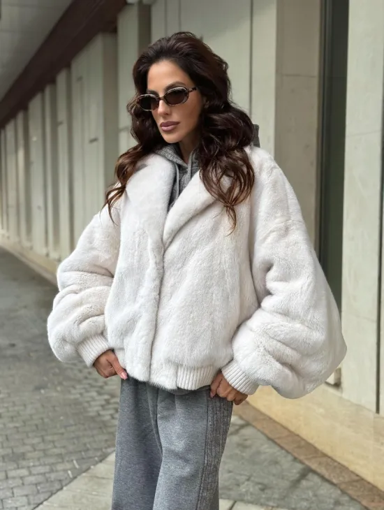 Материал выбранной модели — аукционная норка, доступна в цвете белый. Куртка предлагается в разнообразии размеров, от S до XL, а ее длина составляет 60-65 см, что выигрышно подчеркивает вашу фигуру. Этот вариант идеально подходит для тех, кто ценит роскошь и утонченность натуральных материалов.