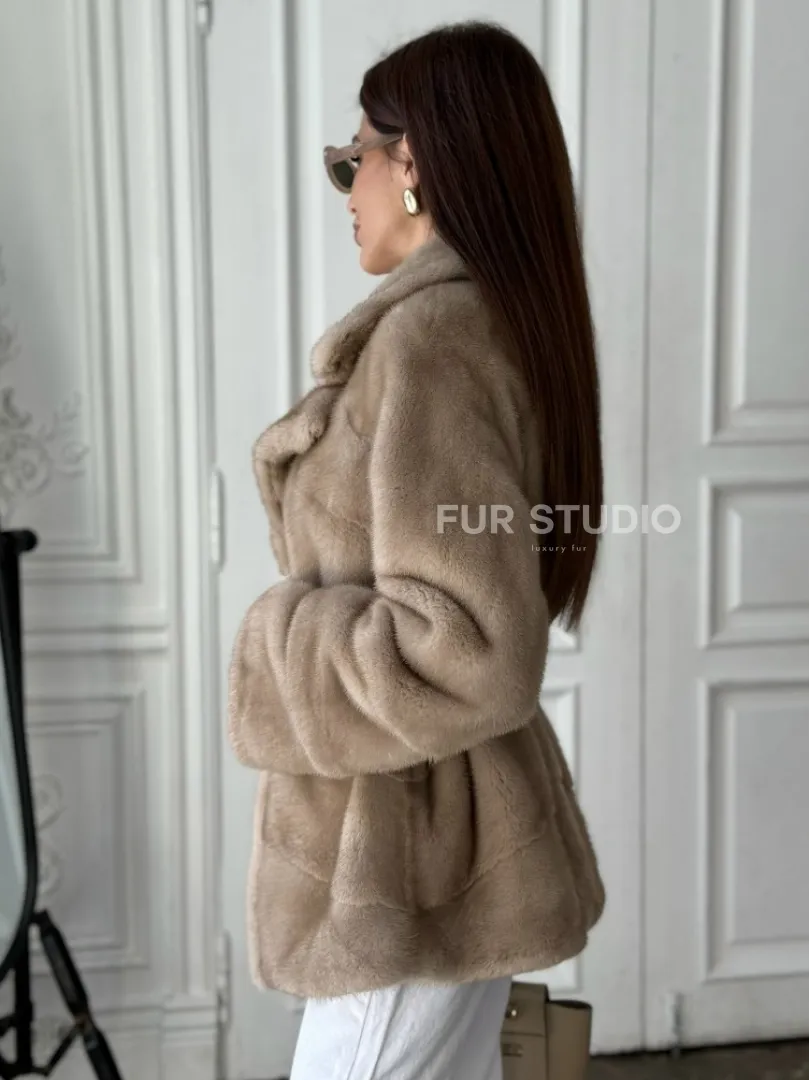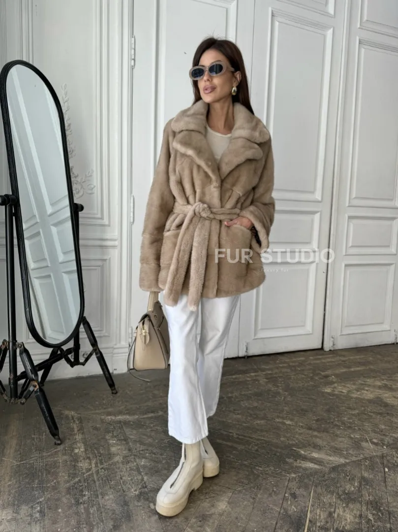 Норковый полушубок английский воротник мех NAFA - цвет пастель доступна для покупки в нашем шоуруме Furs Studio в Москве. У нас так же есть доставка во все города России. Добавьте немного роскоши в свой гардероб с этой шубой, которая будет служить вам многие годы.
