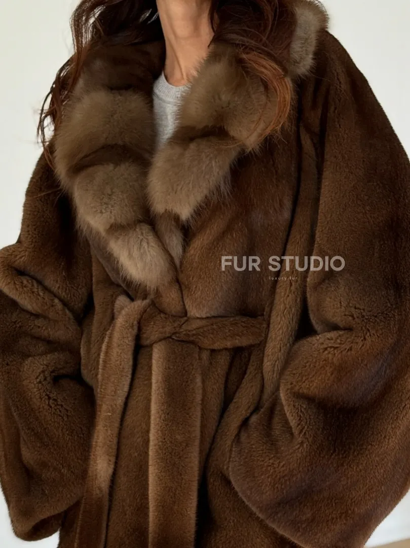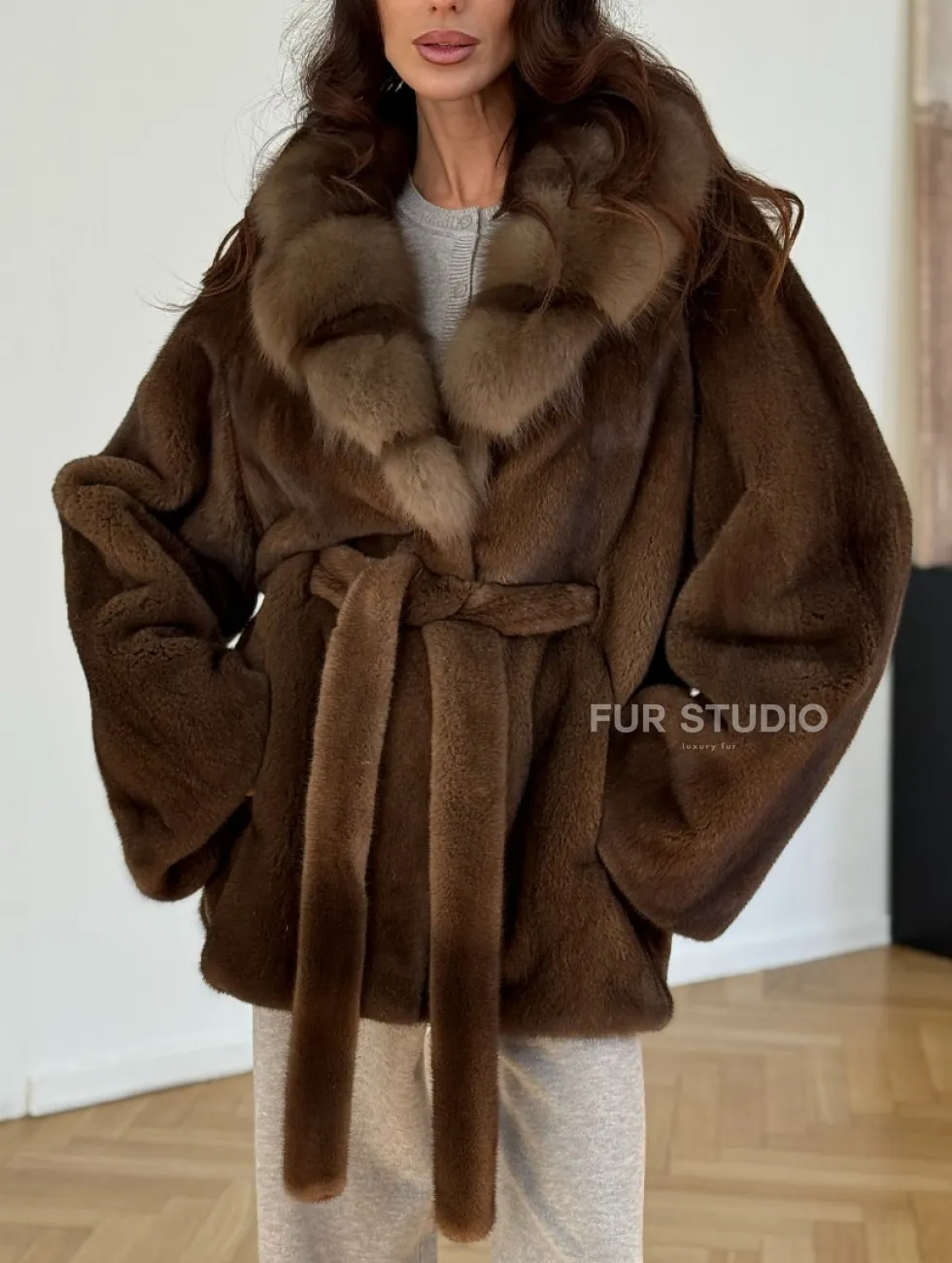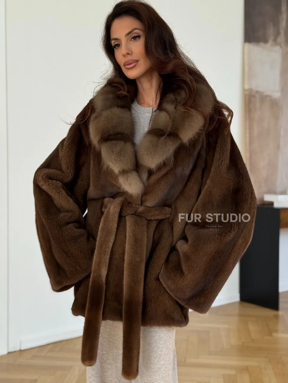 Мех данной шубы аукционная норка , цвет коричневый. Предлагается в размерах от 42 до 50 (oversize). Длина модели 70-75 см, что выгодно подчеркивает фигуру девушек. Эта модель идеально подойдет для девушек и женщин, предпочитающих роскошные натуральные меха.