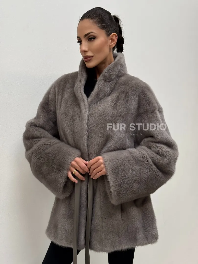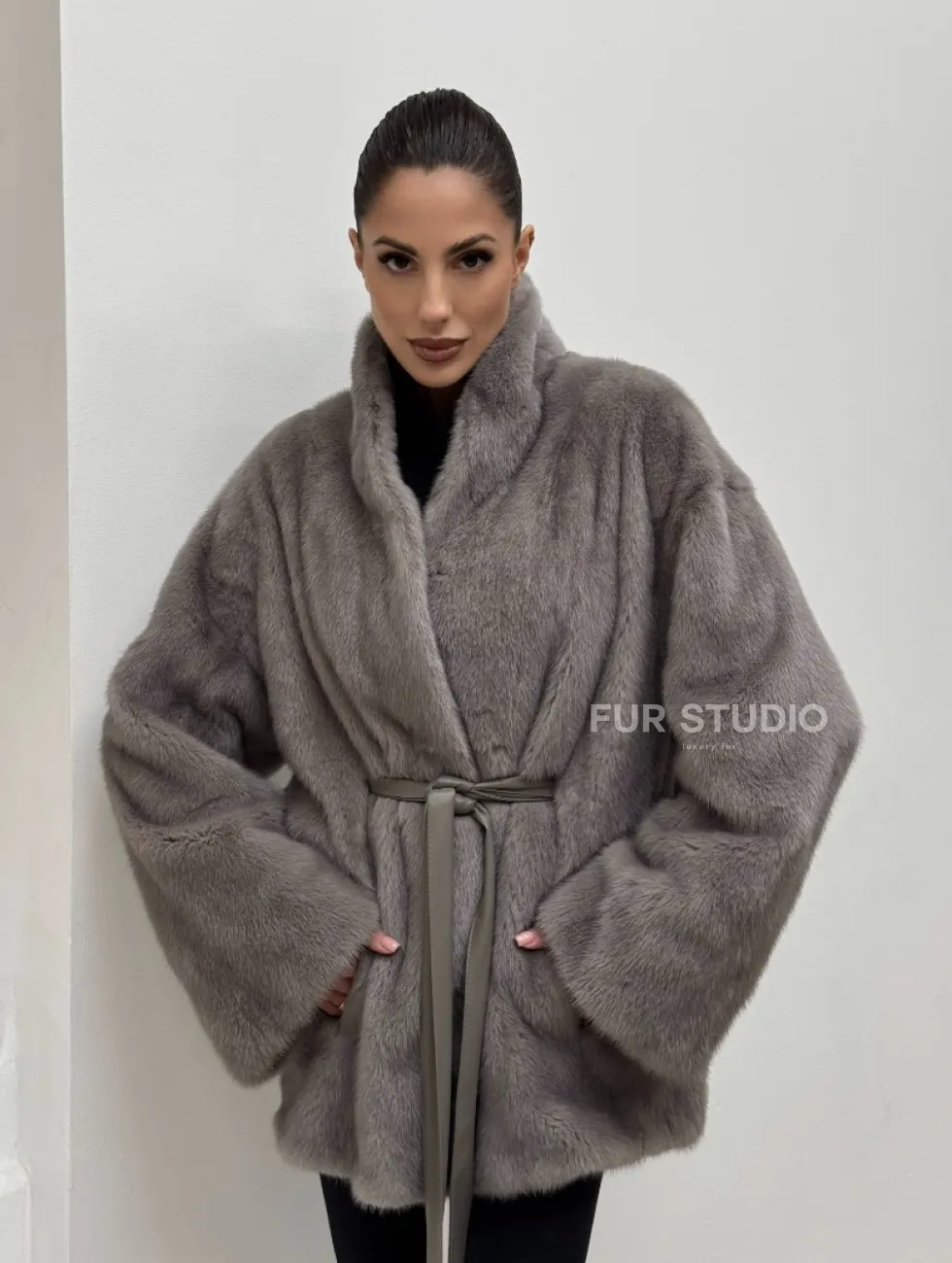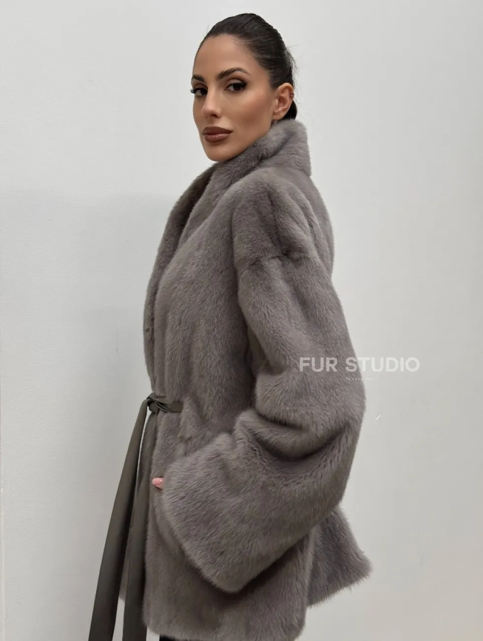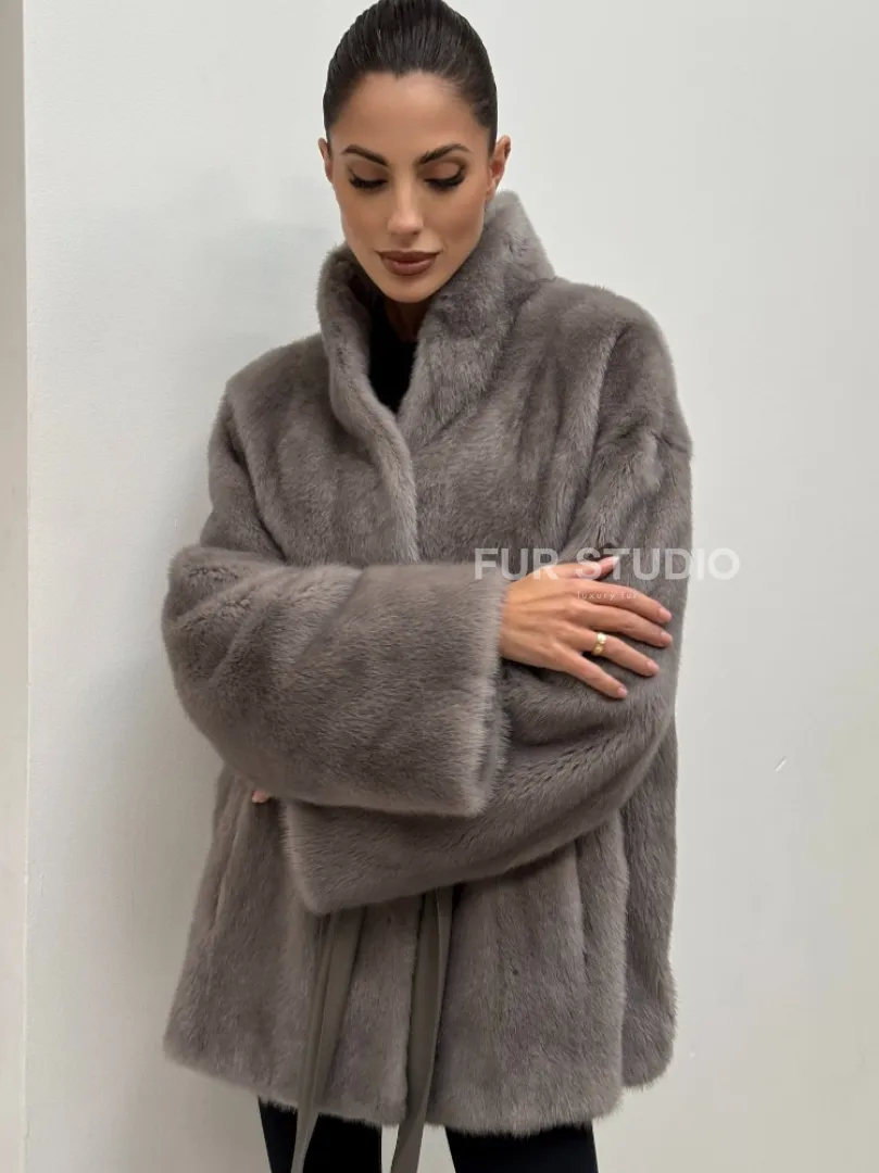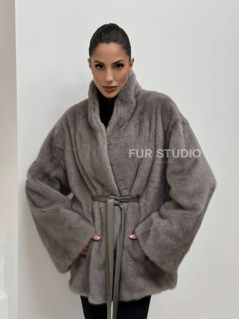 Норковый полушубок кимоно с V-образным воротником в сером цвете доступна для покупки в нашем шоуруме Furs Studio в Москве. У нас так же есть доставка во все города России. Добавьте немного роскоши в свой гардероб с этой шубой, которая будет служить вам многие годы.