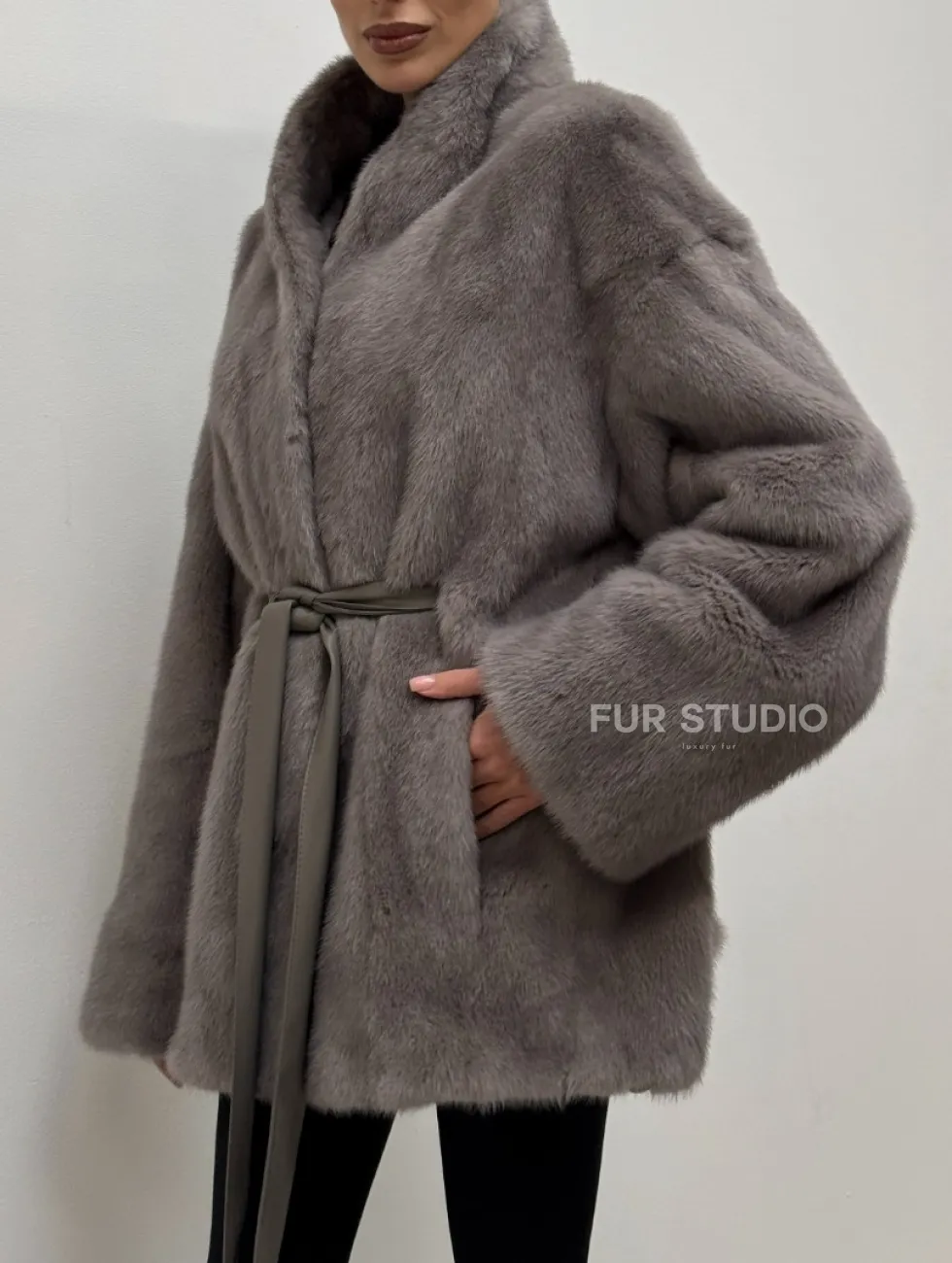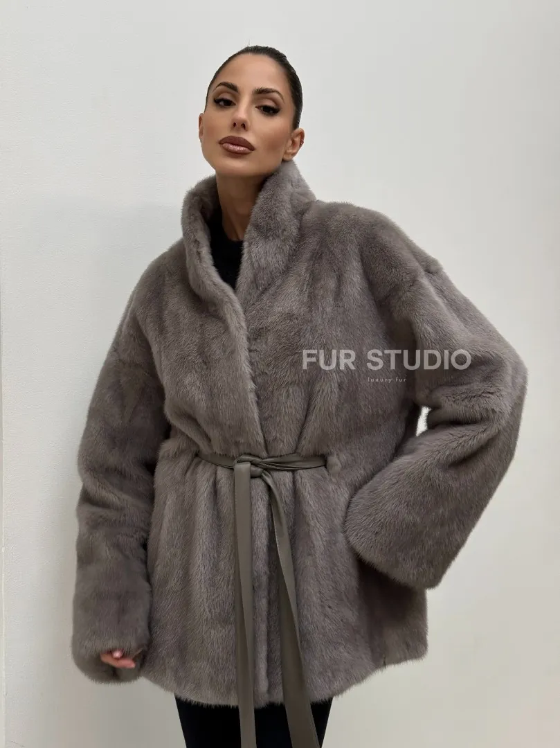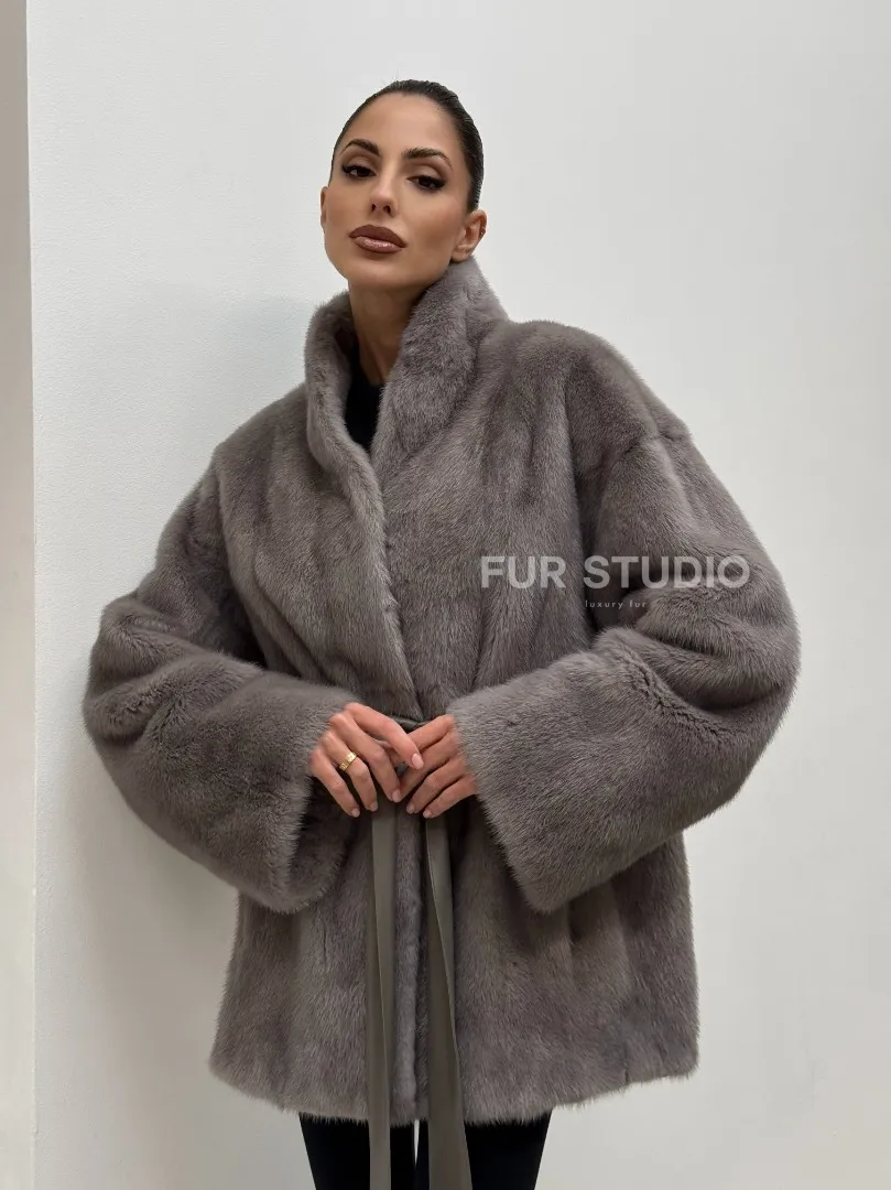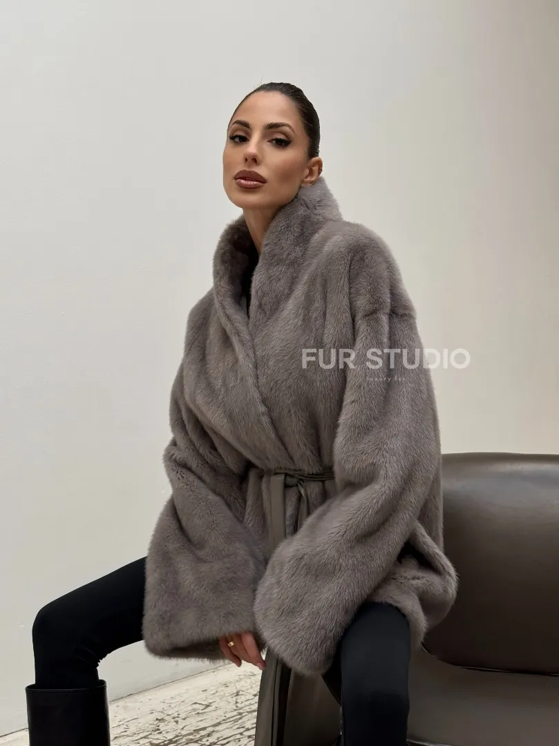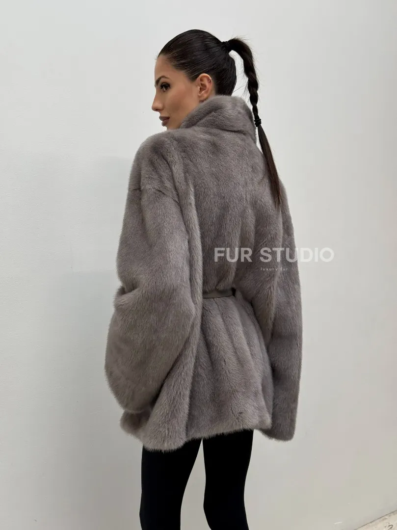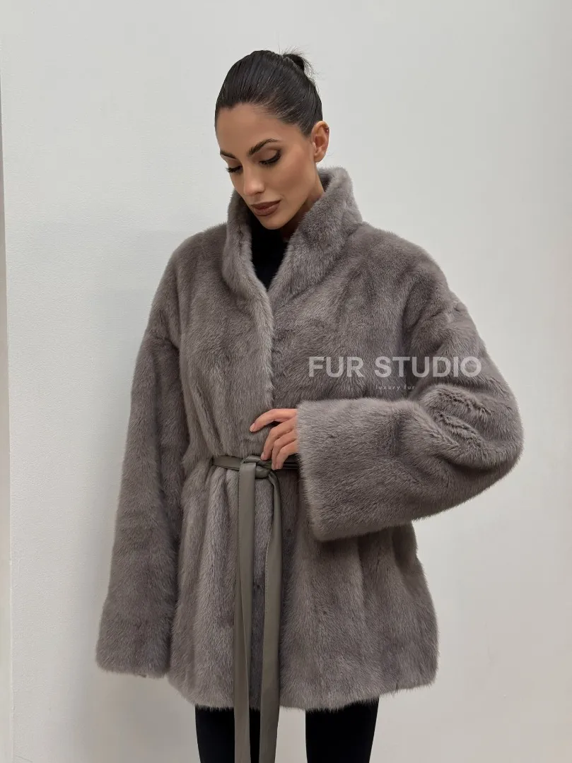 Норковый полушубок кимоно с V-образным воротником в сером цвете доступна для покупки в нашем шоуруме Furs Studio в Москве. У нас так же есть доставка во все города России. Добавьте немного роскоши в свой гардероб с этой шубой, которая будет служить вам многие годы.