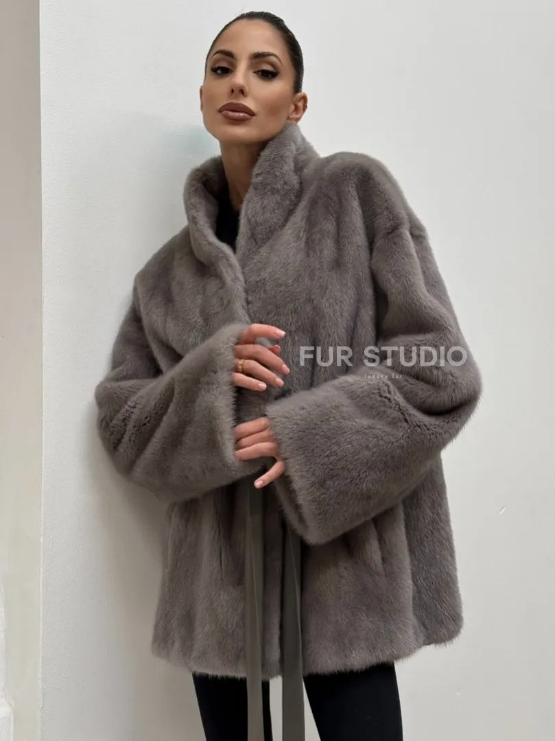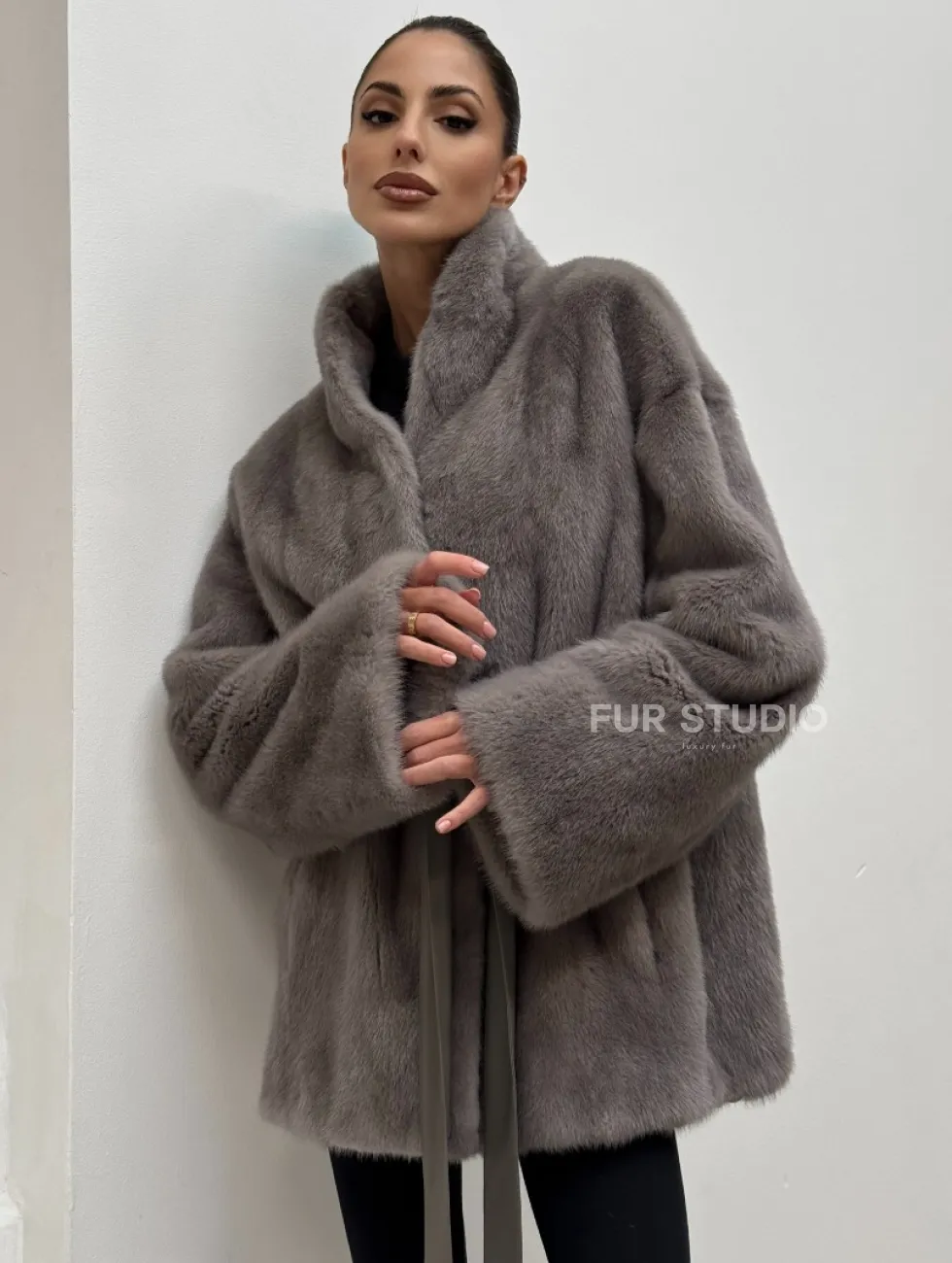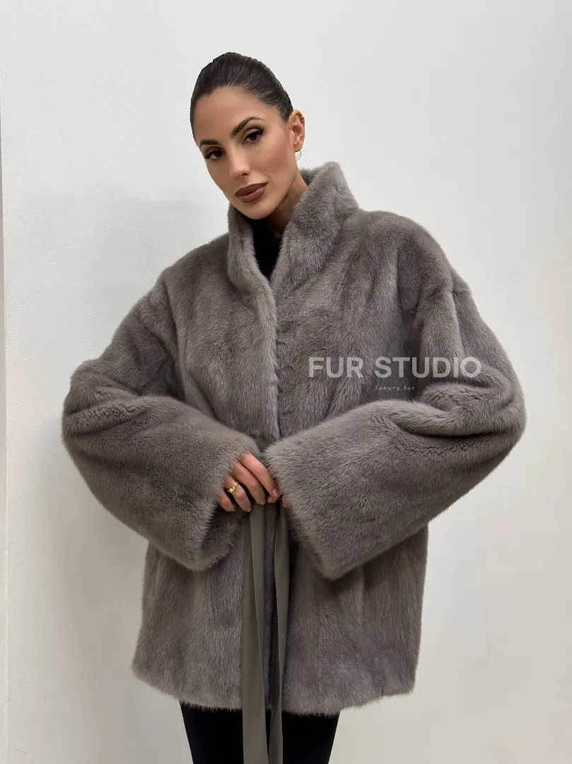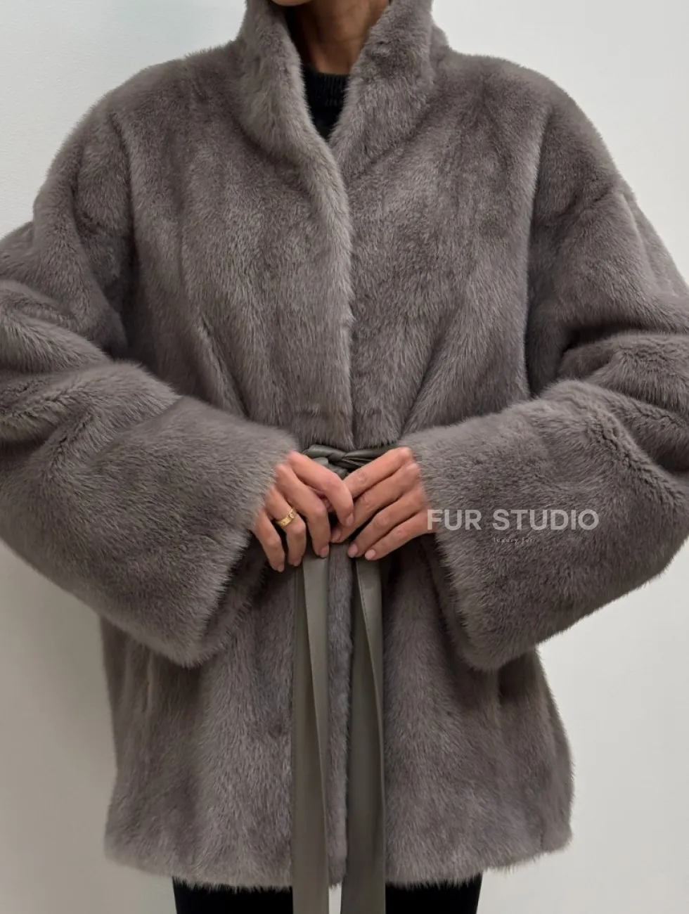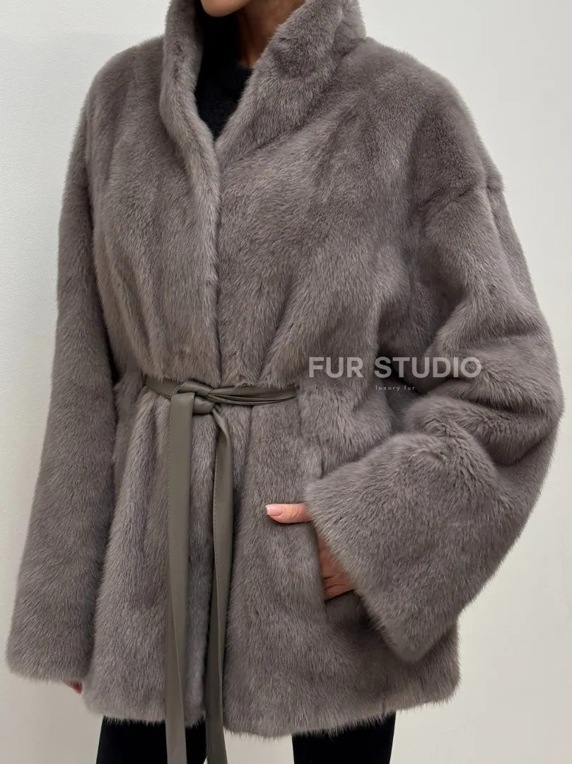Норковый полушубок кимоно с V-образным воротником в сером цвете доступна для покупки в нашем шоуруме Furs Studio в Москве. У нас так же есть доставка во все города России. Добавьте немного роскоши в свой гардероб с этой шубой, которая будет служить вам многие годы.