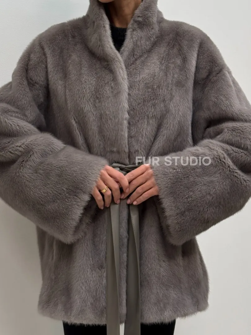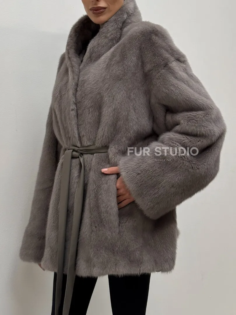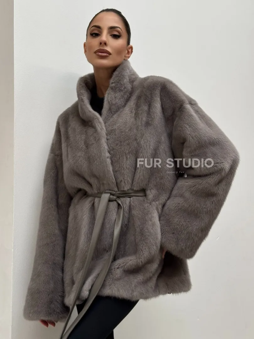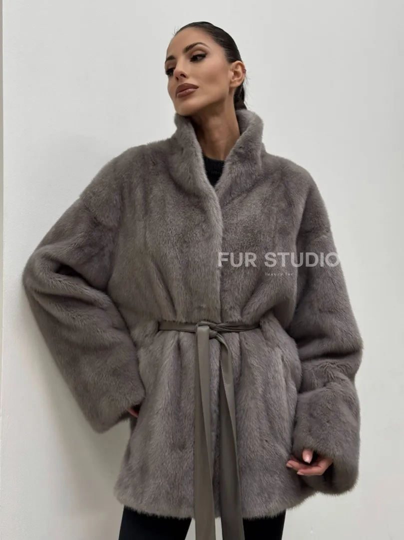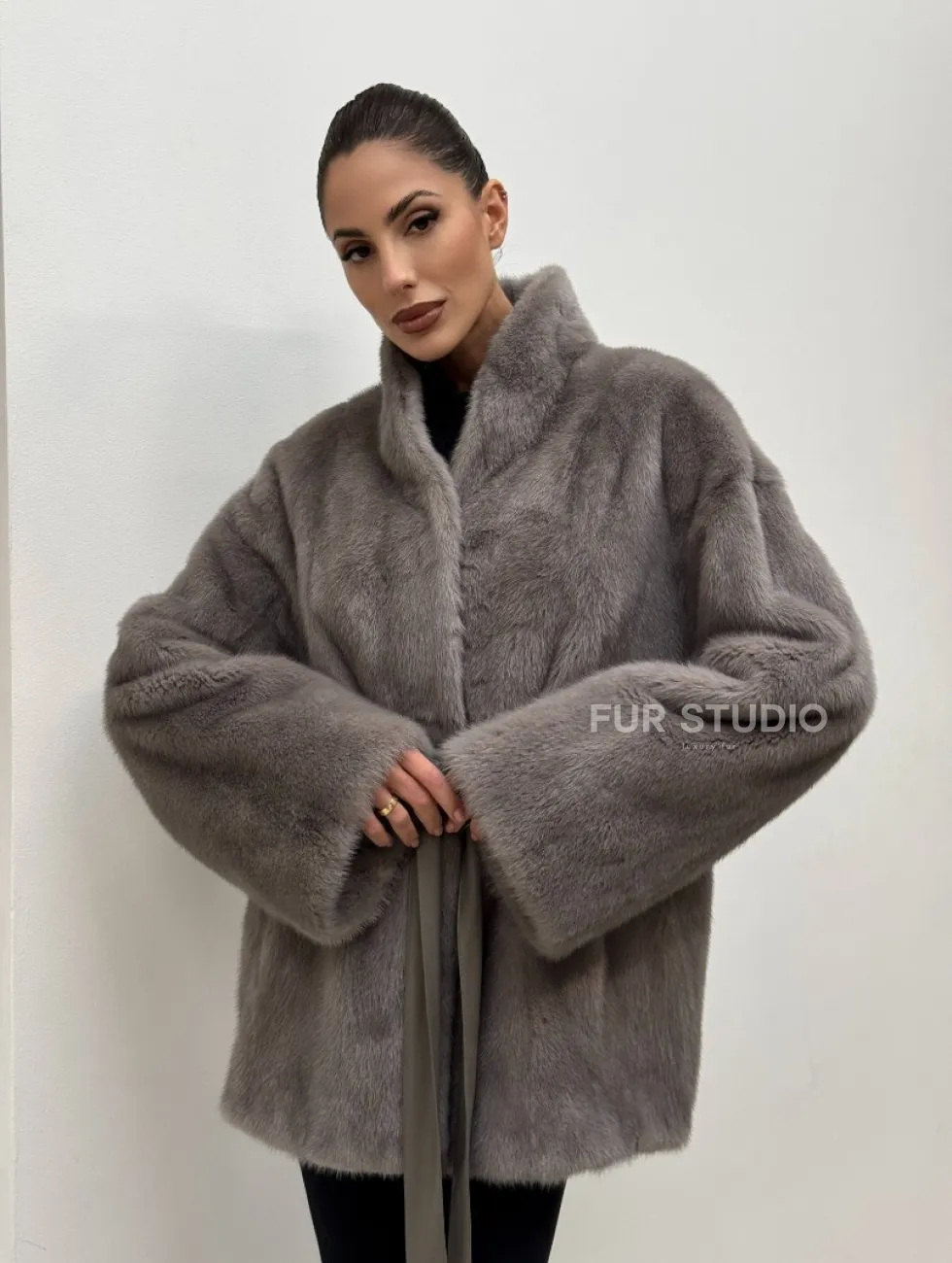 Норковый полушубок кимоно с V-образным воротником в сером цвете доступна для покупки в нашем шоуруме Furs Studio в Москве. У нас так же есть доставка во все города России. Добавьте немного роскоши в свой гардероб с этой шубой, которая будет служить вам многие годы.