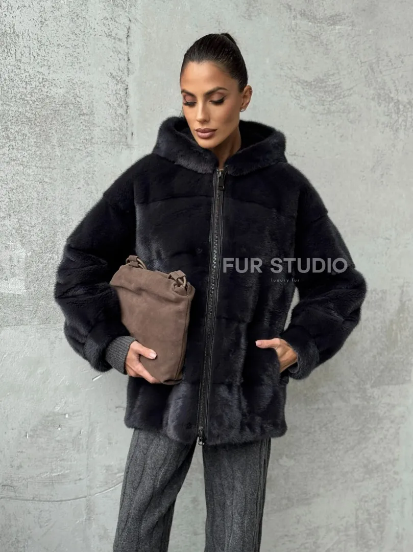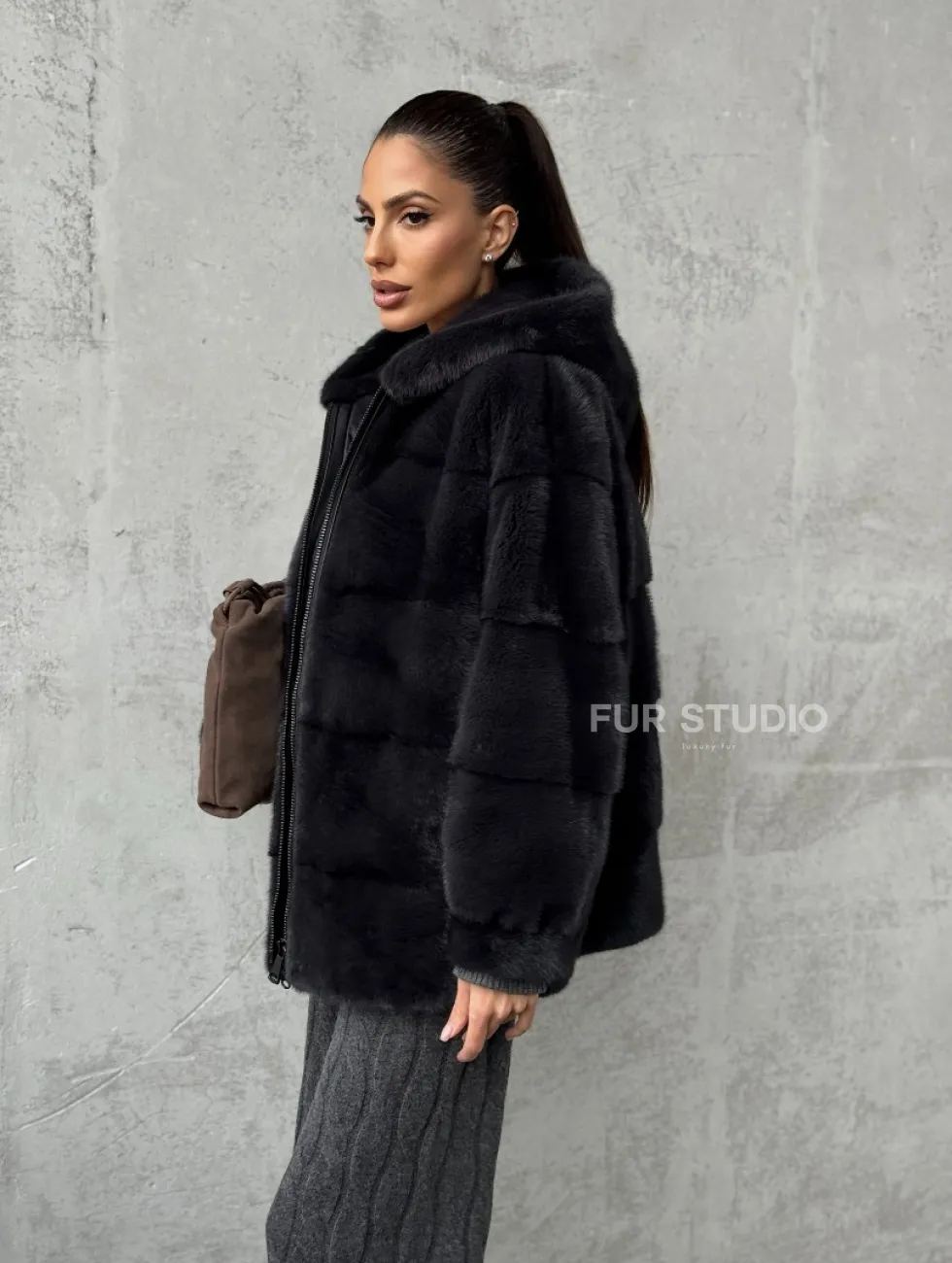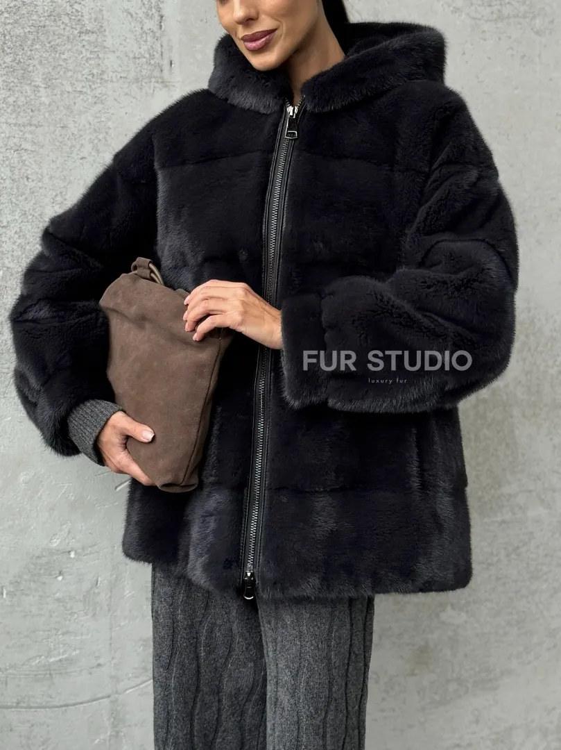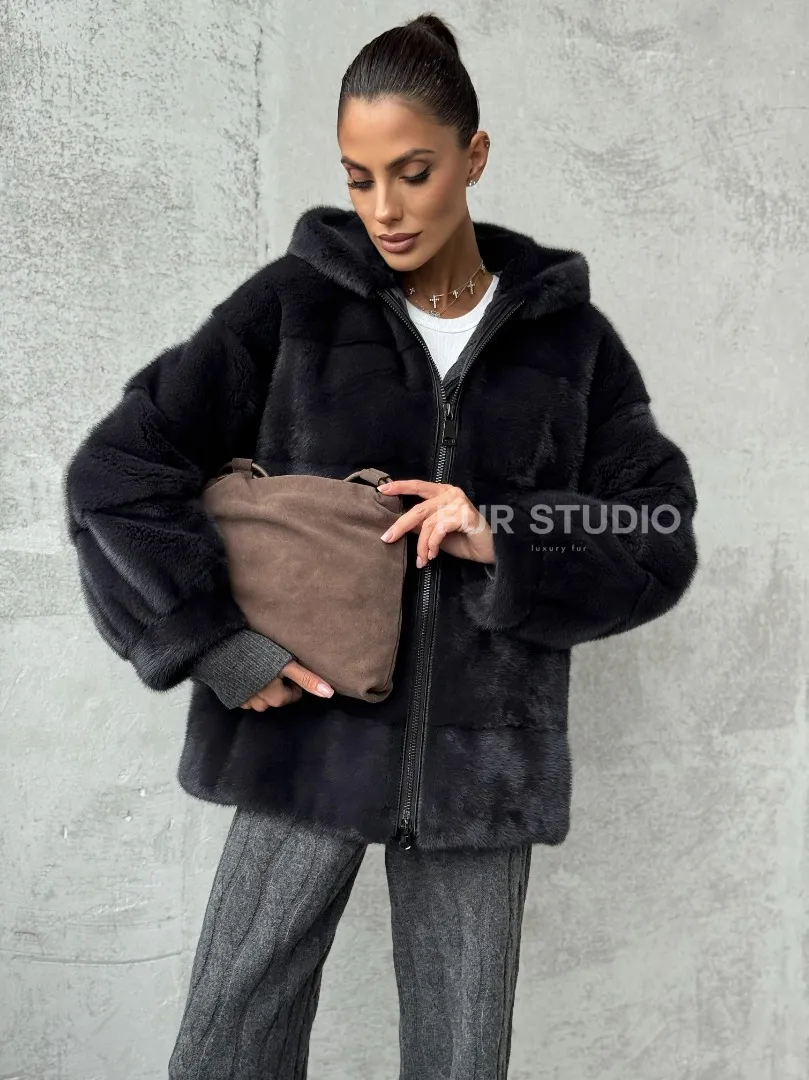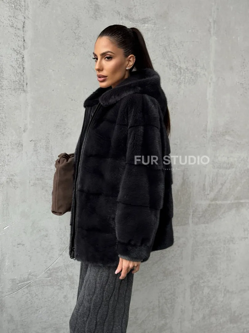Норковый полушубок - куртка из меха норки с капюшоном графит доступна для покупки в нашем магазине Furs Studio в Москве, с возможностью доставки в любой город России. Добавьте немного стиля и элегантности в свой гардероб с этой курткой, которая будет вам служить многие годы, подчеркивая ваш неповторимый стиль.
