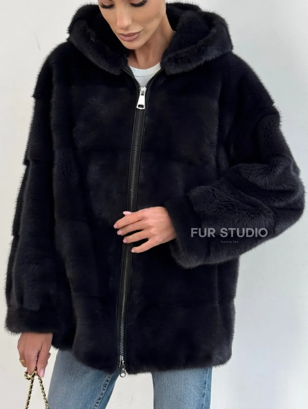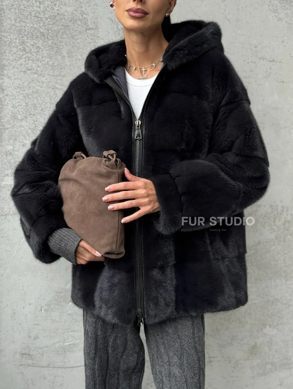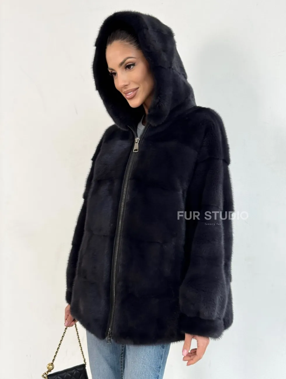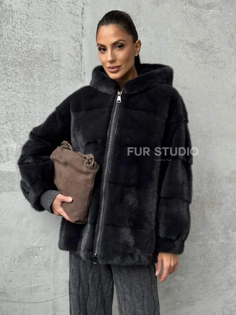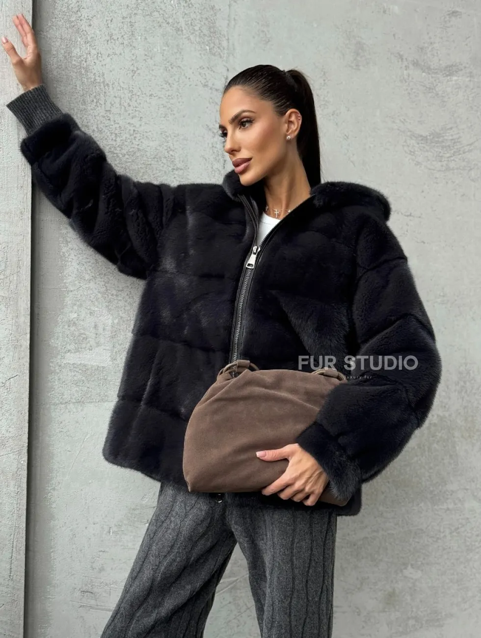 Норковый полушубок - куртка из меха норки с капюшоном графит доступна для покупки в нашем магазине Furs Studio в Москве, с возможностью доставки в любой город России. Добавьте немного стиля и элегантности в свой гардероб с этой курткой, которая будет вам служить многие годы, подчеркивая ваш неповторимый стиль.
