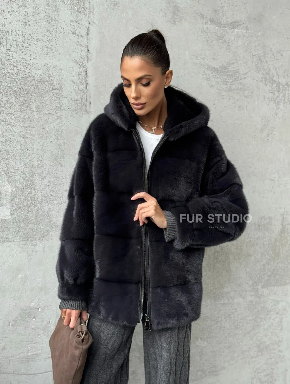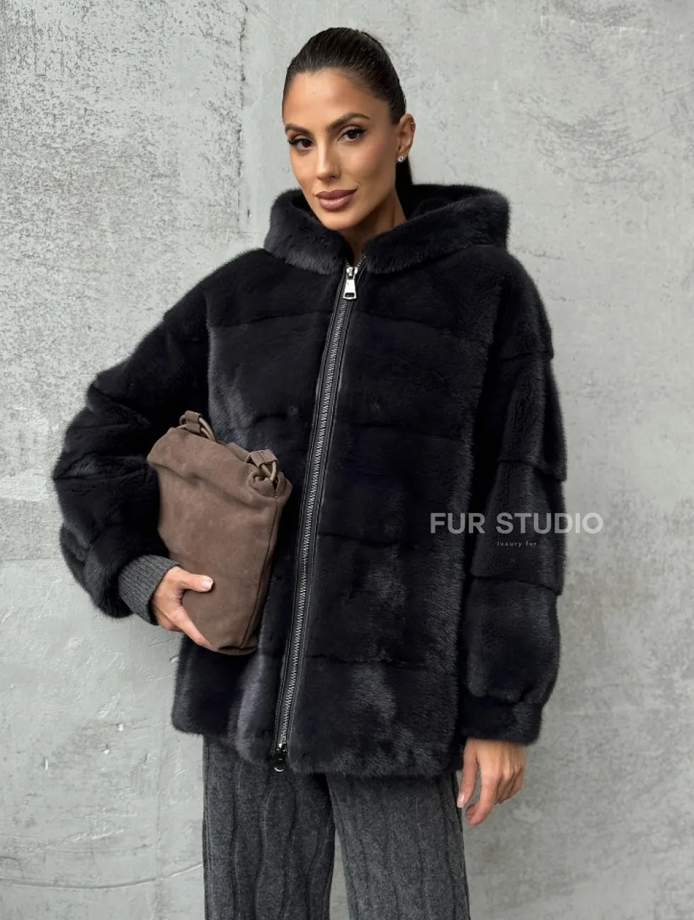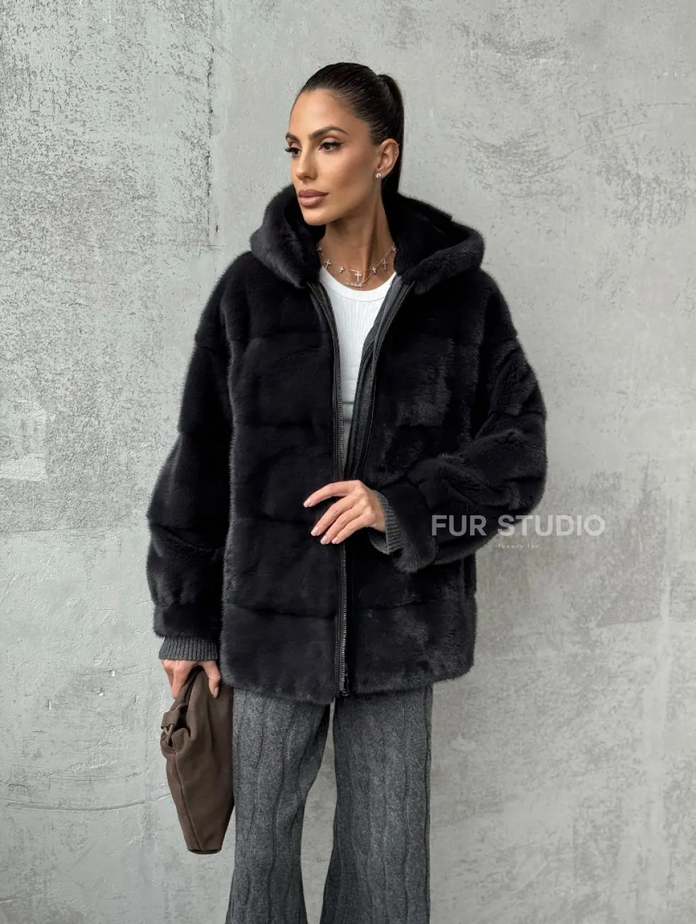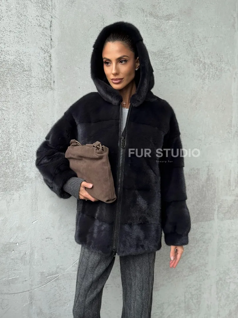Норковый полушубок - куртка из меха норки с капюшоном графит доступна для покупки в нашем магазине Furs Studio в Москве, с возможностью доставки в любой город России. Добавьте немного стиля и элегантности в свой гардероб с этой курткой, которая будет вам служить многие годы, подчеркивая ваш неповторимый стиль.