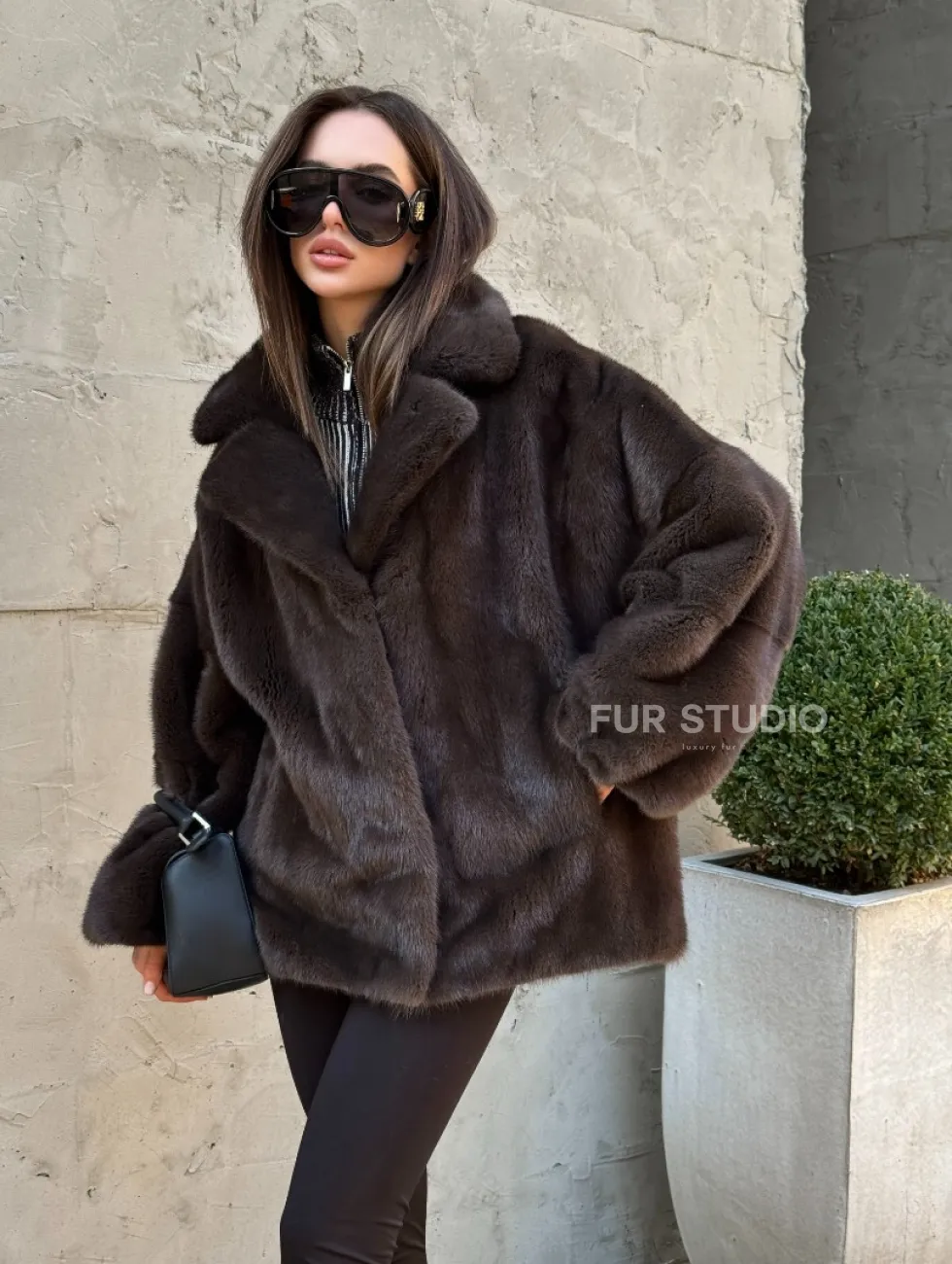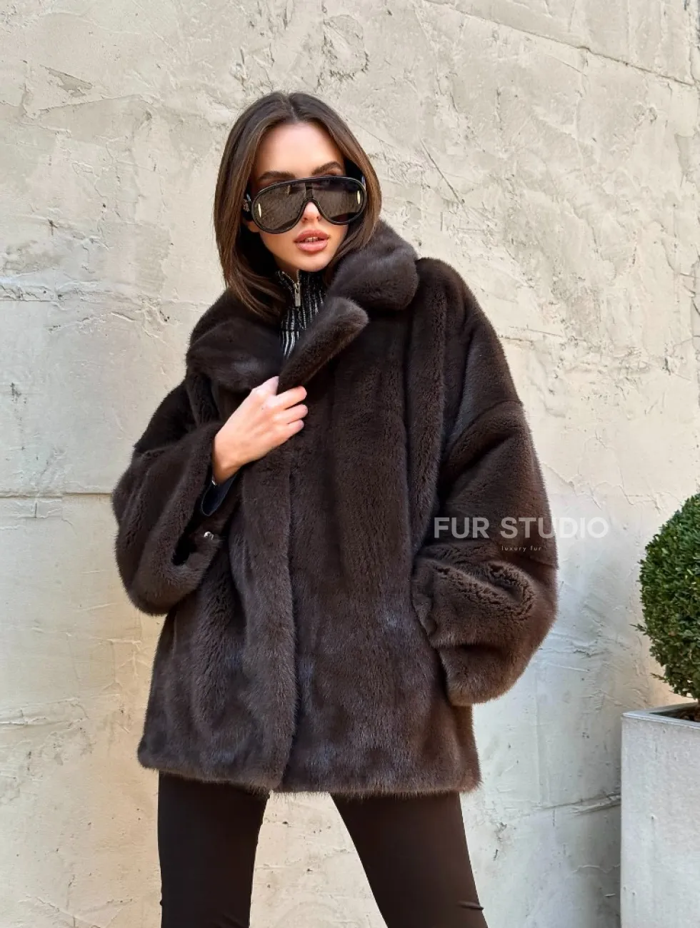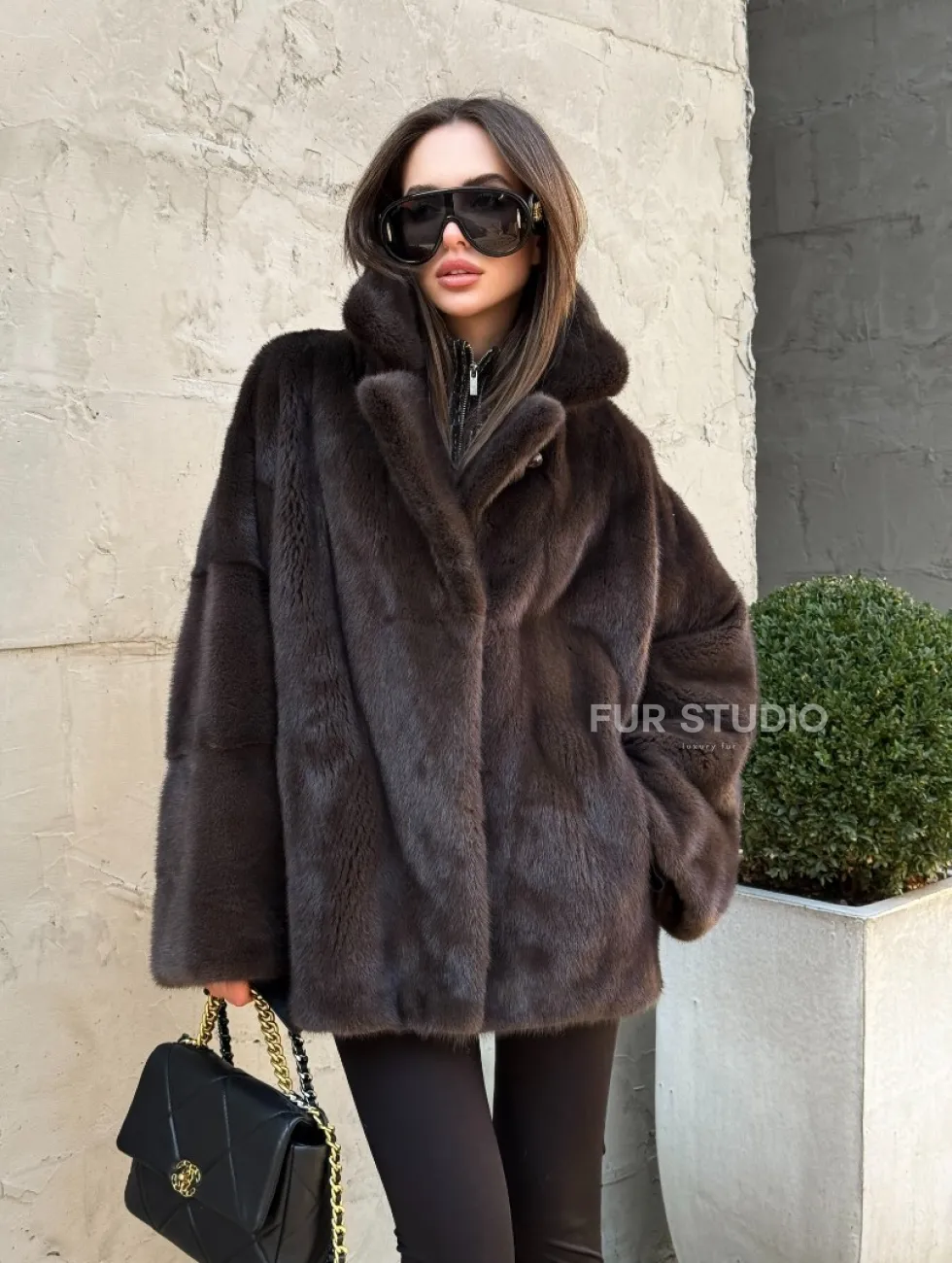 Норковый полушубок оверсайз с английским воротником, цвет "Chocolate" доступна для покупки в нашем шоуруме Furs Studio в Москве. У нас так же есть доставка во все города России. Добавьте немного роскоши в свой гардероб с этой шубой, которая будет служить вам многие годы.