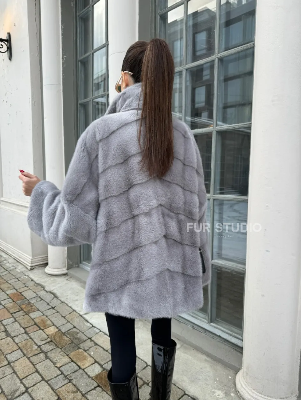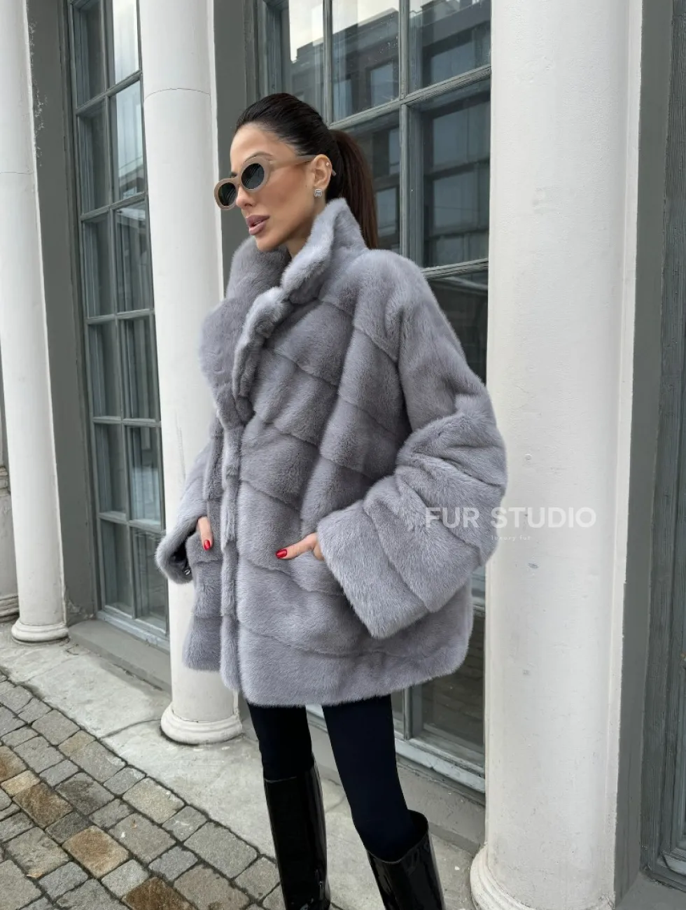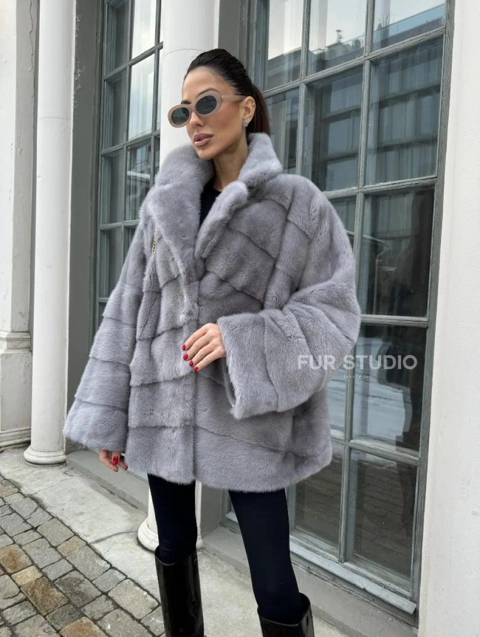 Норковый полушубок паркет английский воротник - цвет серый сапфир доступна для покупки в нашем шоуруме Furs Studio в Москве. У нас так же есть доставка во все города России. Добавьте немного роскоши в свой гардероб с этой шубой, которая будет служить вам многие годы.