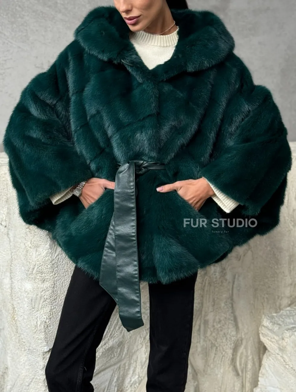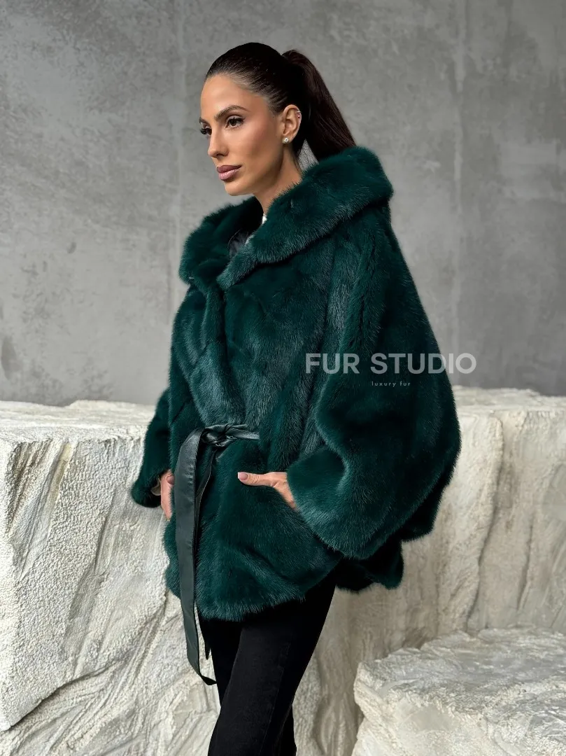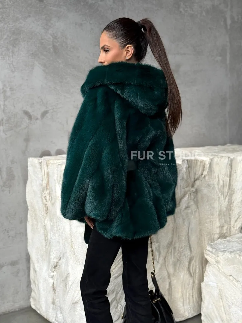 Мех данной шубы аукционная норка , цвет зеленый. Предлагается в размерах от 40 до 50 (oversize). Длина модели 70-75 см , что выгодно подчеркивает фигуру девушек. Эта модель идеально подойдет для девушек и женщин, предпочитающих роскошные натуральные меха.